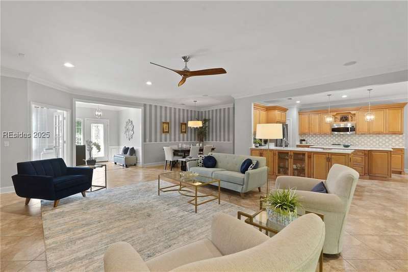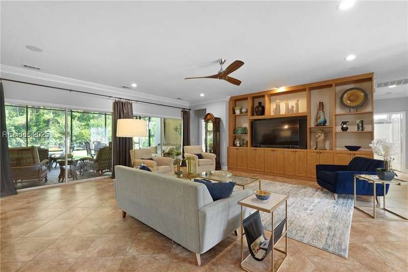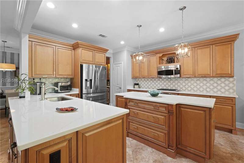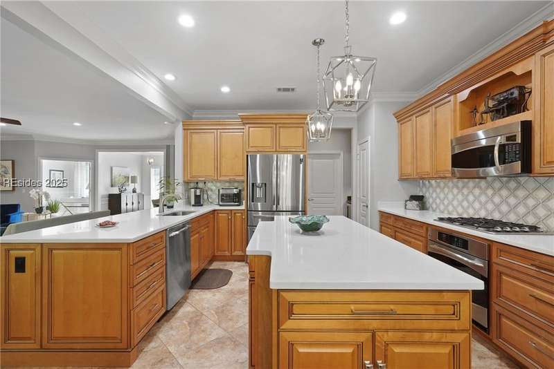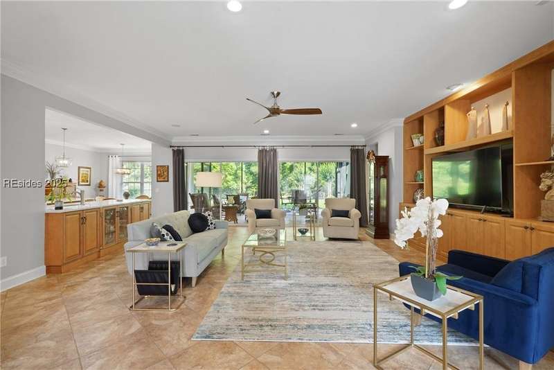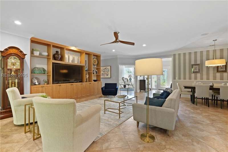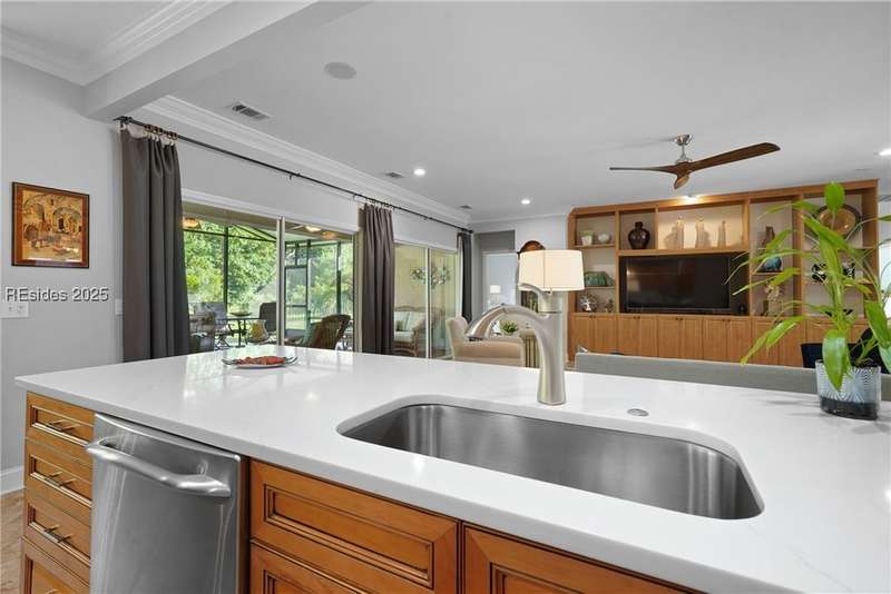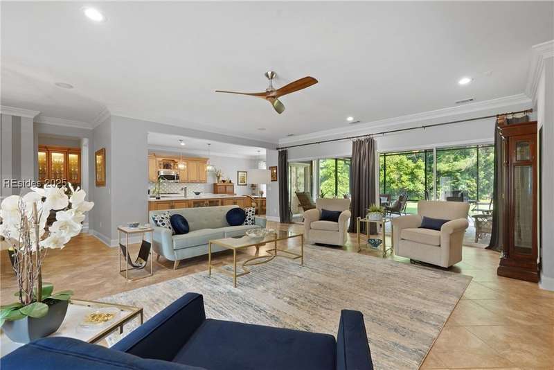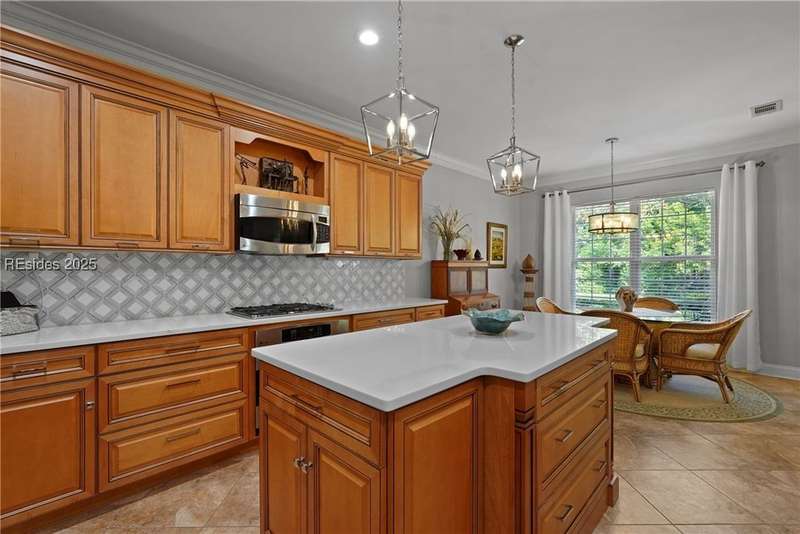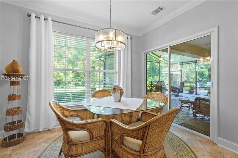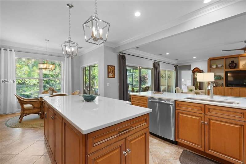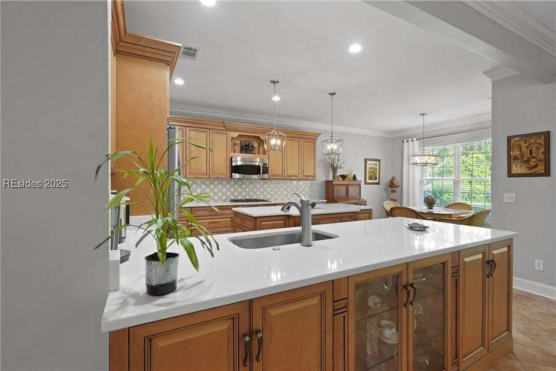 Stunning Dogwood in prime location. Pavered walkway leads to stain glass door and custom tiled foyer. Tile floors in living areas, carpet in bedrooms, smooth ceilings and crown molding. Kitchen boasts new custom cabinets, hardware, quartz countertops, SS appl, tile backsplash, lg center island & breakfast nook. Dining area, dry bar with wine frig, and family room with custom built-ins. Primary suite with tiled, walk-in shower, raised vanities, beautiful lighting. Lg guest room, bath & den with built-ins. Enjoy the oversized screened porch & patio with serene, wooded view. Room for a pool. Extra cabinets in laundry and A/C in garage.