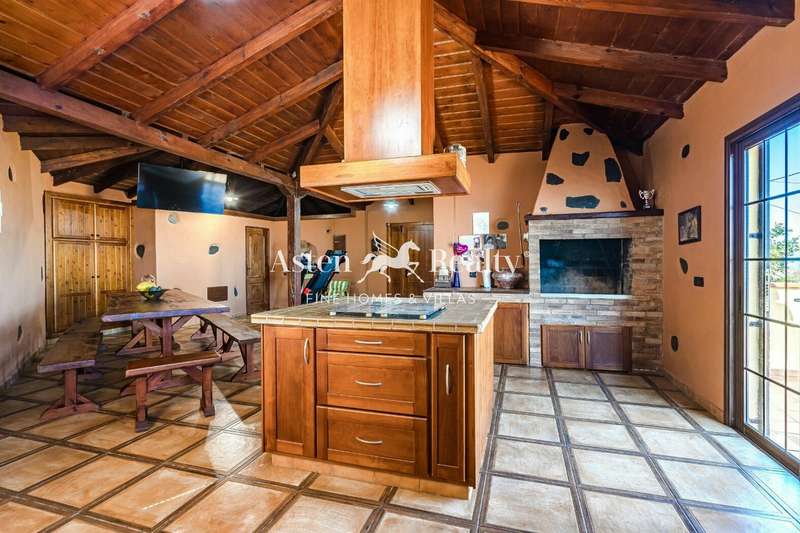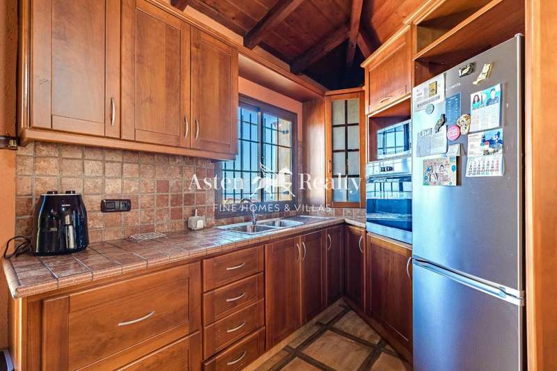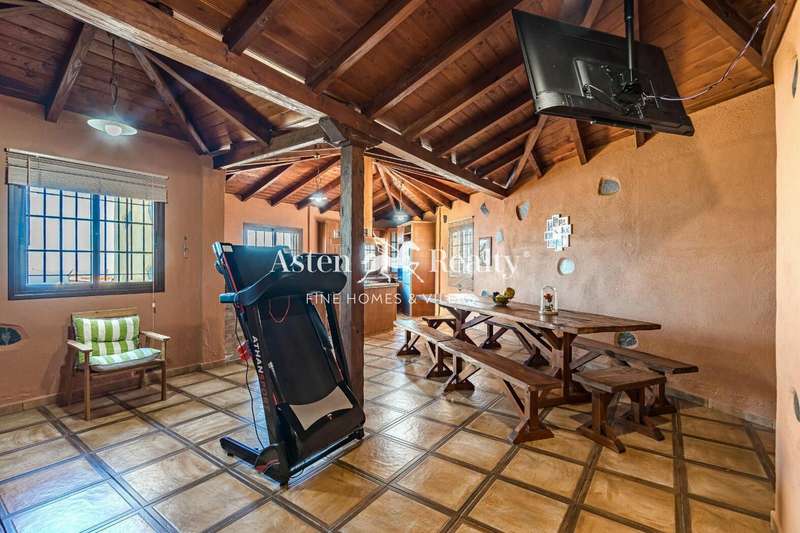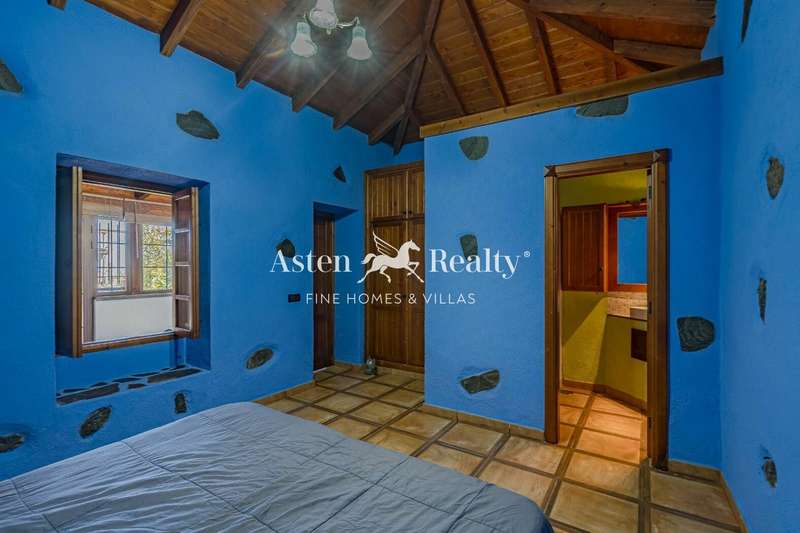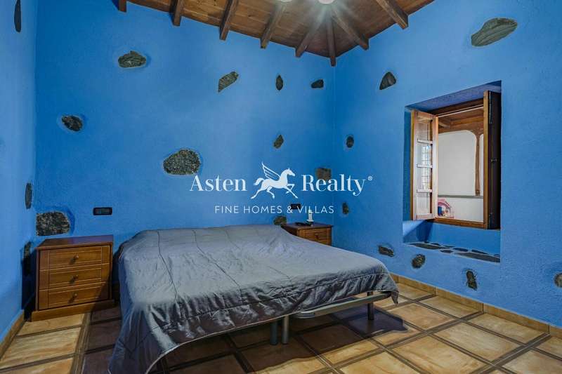 Canary Island country house, renovated in 2010, with high quality rustic style, with 3 bedrooms, 2 bathrooms, a spacious living room with dining room and open kitchen with island in the centre, which leads to the large terrace with great views of the sea and the coast. In the living room there is also a fireplace adapted for cooking.
