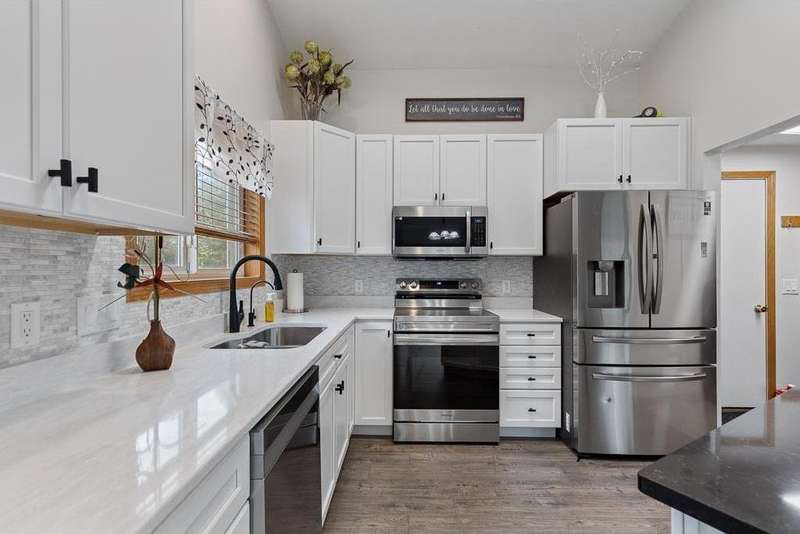 Welcome to a home that immediately feels inviting, surrounded by beautifully maintained landscaping with hedges and bushes that enhance its curb appeal. Step inside to find 5 bedrooms, 3 bathrooms, and a cozy gas fireplace, offering comfort and space for everyone. You will find a newly updated island and cabinetry in your kitchen that aims to please. Downstairs you have a delightful family room that is a quiet escape from hot summer days and brutal winter nights. The peaceful backyard is lined with mature pine trees, creating a private retreat to enjoy year-round. The storage shed provides room for your outdoor essentials, while the attached 2-stall garage with a concrete driveway ensures convenience.