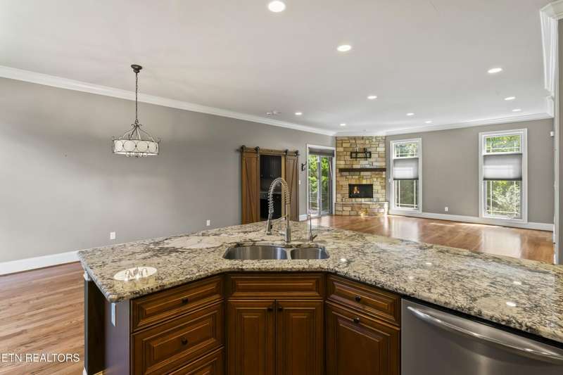 Discover the perfect blend of rustic elegance and modern luxury in this stunning open-concept home, ideally located in the highly desirable Farragut school district. Designed for both intimate family living and seamless entertaining, this 4-bedroom, 2.5-bath residence offers unparalleled craftsmanship and amenities. Cozy up on a cool evening by the gas fireplace in the main living area, or spend game day by the outdoor fireplace on the covered patio. Soaring 10-inch crown moldings add a touch of grandeur and sophistication throughout the home while the unique barnwood features create a warm, inviting atmosphere and add a custom, farmhouse-style aesthetic. When the day is done retreat to your private oasis on the main floor, featuring a luxurious en suite designed for ultimate relaxation and huge walk-in closet customized by California Closets. Upstairs you'll find an airy landing that offers additional space for a reading nook or study area, while a large bonus room provides flexibility for a media room, home gym or playroom. The second floor also includes three additional bedrooms and a full bath, providing ample space for family and guests. Enjoy peace of mind with a sealed crawlspace, ensuring superior energy efficiency and protection. Less than 5 minutes to the interstate, walking distance to the new Publix shopping center and 10 minutes to Turkey Creek's entertainment, shopping and restaurants. This home lets you experience the best of Farragut living in a home that combines exceptional style and everyday comfort.