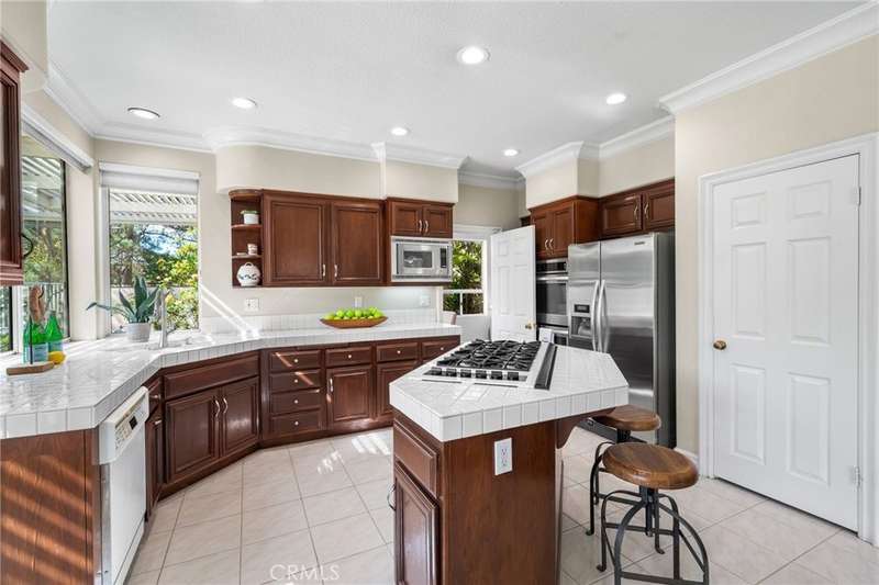 Welcome to nearly 3,000 sq. ft. of versatile living on one of the largest lots in Jasmine Glen, in Anaheim Hills. Backing to a protected nature preserve with sweeping canyon views and no neighbors behind, this home offers rare privacy in a highly desirable neighborhood. The backyard is the true showstopper: a pie-shaped entertainer’s dream with a covered patio, built-in BBQ, lush lawn, rose gardens, lemon trees, and side yard space—all set against tranquil canyon views. It’s the perfect backdrop for gatherings or peaceful evenings outdoors. Step through the double-door entry into soaring ceilings, floor-to-ceiling windows, and a bright, comfortable floor plan. The main level features a spacious living room and dining area—ideal for entertaining—alongside a refreshed kitchen with stainless steel appliances, refinished cabinets, a walk-in pantry, and a breakfast nook that flows into the cozy family room with fireplace. A downstairs bedroom and bath provide a perfect setup for guests, extended family, or a dedicated home office. Upstairs, a versatile loft/bonus room can serve as a fifth bedroom, playroom, or office. Two secondary bedrooms share a convenient Jack-and-Jill bath, while the primary suite impresses with vaulted ceilings, a walk-in closet, and a spa-inspired bath with separate tub, shower, and private toilet room. Built-in storage is also located upstairs for everyday convenience. Additional highlights include a 3-car attached garage with storage, an interior laundry room and a prime location near top-rated schools, shopping, dining, and freeway access. Spacious and private—this Jasmine Glen gem checks all the boxes. Welcome home!