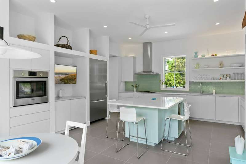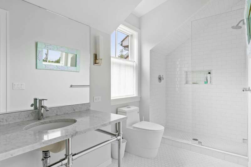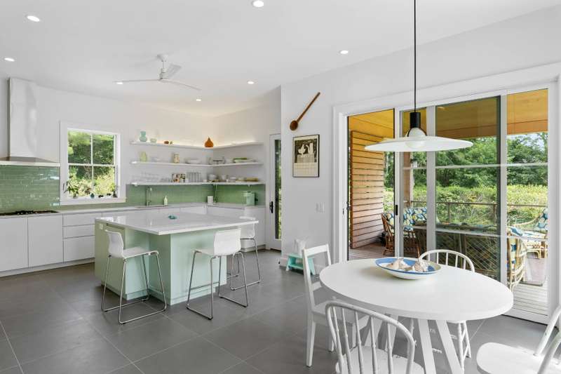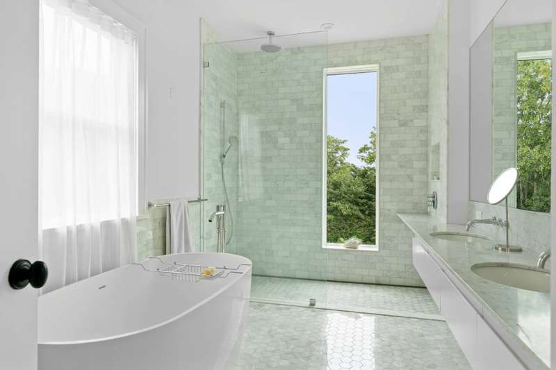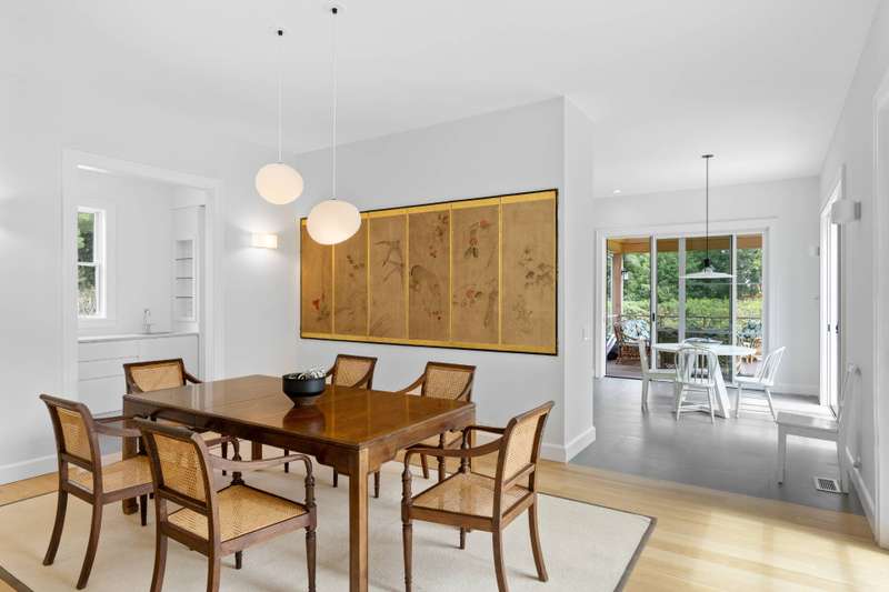 RR# RP251603. Located in Water Mill, South of the Highway, on a coveted, private lane, this luminous, new shingle-style construction features 6 bedrooms, 6.5 baths and 2 fireplaces across 5,400+ sf of living space. A light-filled entry leads to an open, spacious living room in a home featuring modern Asian decor. Five ample sliding glass doors open directly to the bluestone back patio, a heated gunite 20x40 pool, and a beautifully-landscaped backyard. The home also offers 2 primary suites with separate showers and soaking tubs, 4 ensuite bedrooms, including one with its own private entrance and patio. On the second floor, there are a library/meditation room and a private office space. The ground floor includes a recreation room with a ping-pong table and one bay within the 2-car attached garage. Additional amenities include multiple outdoor areas for dining and entertaining, a gas-fired grill, a covered loggia, outdoor shower, and solar panels with backup electric storage. Just a few hundred feet down the road is water access to Hayground Cove and Mecox Bay beyond, perfect for kayaking, canoeing, or paddle boarding.The pristine Flying Point Beach is just a short distance away on the quiet back roads of quaint Water Mill. Listing ID: 903266
