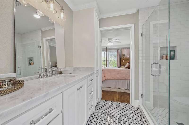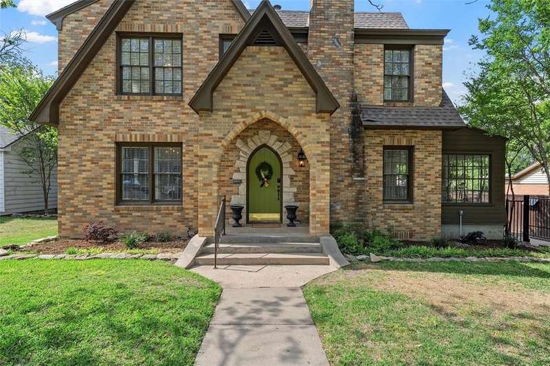 Main House plus GUEST HOUSE! Stunning 4-BR Tudor in coveted Dean Highland with rare separate guest house! Recently updated blending all the charm & character of the original construction with modern luxuries, this 1938 showstopper sits on a tree-covered lot on a gorgeous street in the heart of Waco. You're first welcomed by two stately Pecans and the gothic-arched porch and front door. Upon entry you'll fall in love with the vintage hardwood floors, an open-flow living, dining and kitchen layout, and a breathtaking sunroom bathed in natural light. The kitchen is bright & sunny with gorgeous countertops and backsplash, abundant cabinet storage and a generous pantry. The downstairs bedroom is conveniently located to also serve as an office or play room. The primary suite features a big walk-in closet with built-in dresser and a huge en suite bathroom, with a clawfoot soaking tub, large walk-in shower, dual vanities and tons of counter space and storage. The two additional bedrooms are spacious and share an impressive, remodeled bathroom. The back yard is huge and newly fenced at 8 feet in places, and offers room to play & garden, a greenhouse and storage building. The recently built-out guest house features a full kitchen, full bathroom, dining area and studio-style living and bedroom, and the opportunities here are endless! Short-term rental (STR Type 1), long-term rental, hosting space, home office or extra space for your family! In total the property has 2,788 sqft of conditioned space — 2190 main house, 598 guest house. Off the guest house is a vibey covered patio for an outdoor living area. Light up the firepit, turn on the game and relax under the garden string lights. Automatic iron gate added for secure parking. Schedule your showing today!