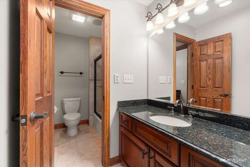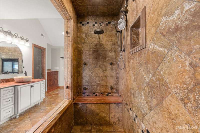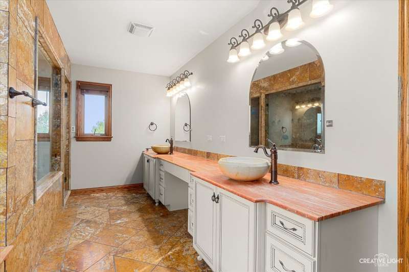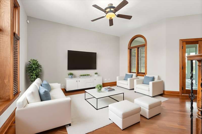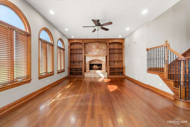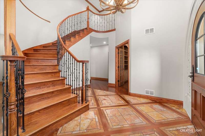 Custom-built Masterpiece! Soaring two-story foyer with a curved staircase. A chef's kitchen with Viking and Monogram appliances. Granite counters throughout. Brazilian cherry wood floors. New carpet. The family room has an elegant fireplace. The first floor offers an office/den with built-in bookcases. There's also a large, three-season room! Oversized Master bedroom with a seating area and a see-through fireplace. A Large jetted tub facing the fireplace. Large walk-in shower with double showerheads. His and hers large walk-in closets. All bedrooms have walk-in closets. Bedrooms 2 and 3 share an attached bath, and Bedroom 4 has its own private bath. The basement boasts a theater room and a recreation room. Basement plumbed for a full bath. Paver brick patio with a seat wall. Stamped concrete walkways. Fully fenced in on two acres with a garden shed. This gorgeous 4 Bedroom, 3.1 Bath is A MUST SEE!!