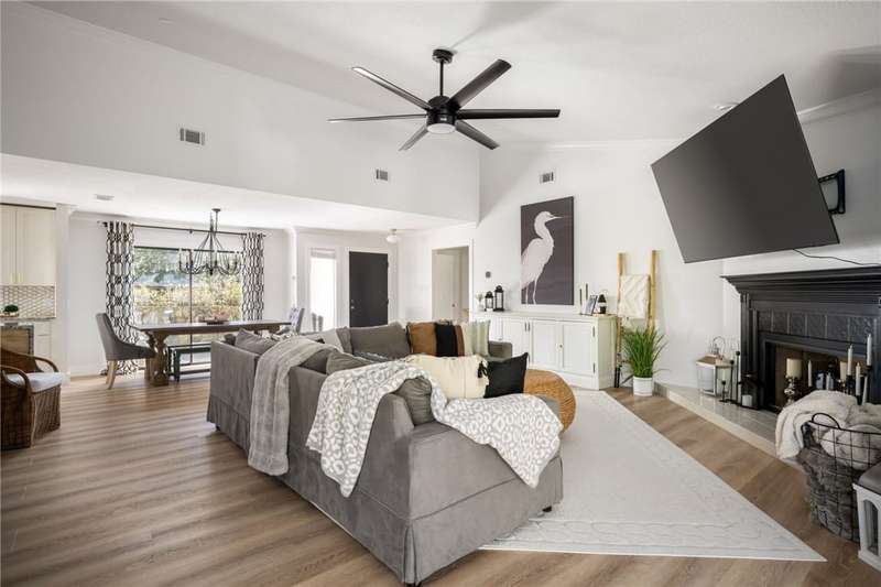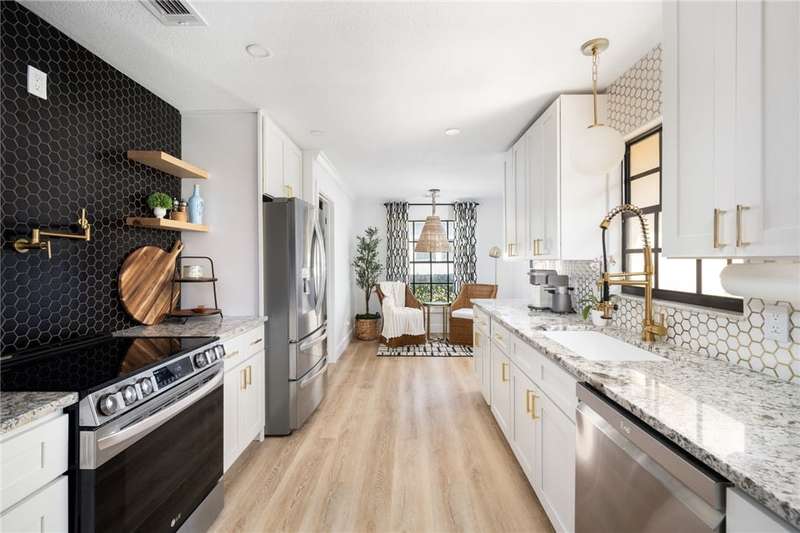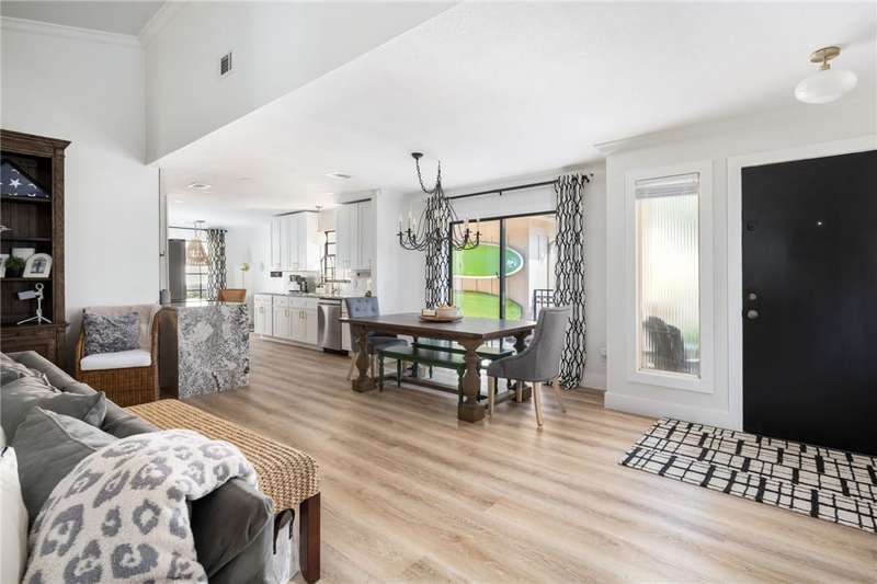 Modern yet timeless Bent Pine Villa offering 3bd/3ba, white oak LVP flooring throughout, stunning kitchen w/ contrasting backsplashes, pot filler + waterfall countertop, separate dining/breakfast nook & tasteful finishes. 2020 roof, E & W patios, epoxy garage flooring + water purification system. Corner lot in private serene setting of Bent Pine ensures peaceful lifestyle, while still being close to all the amenities. Embrace the ultimate Florida lifestyle by joining the club for golf/social membership. Fees:Condo Assoc.($1247.65/qtr) / BP Master HOA ($2338.07/yrly). Sizes approx/subj to err.