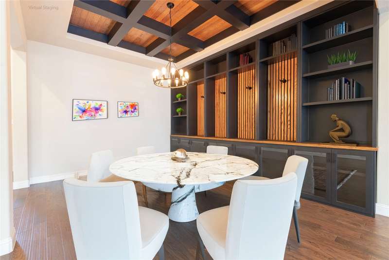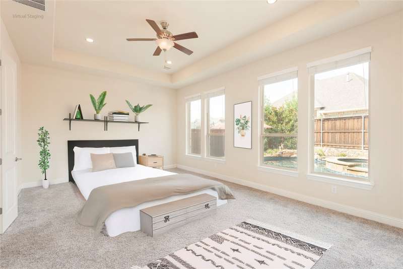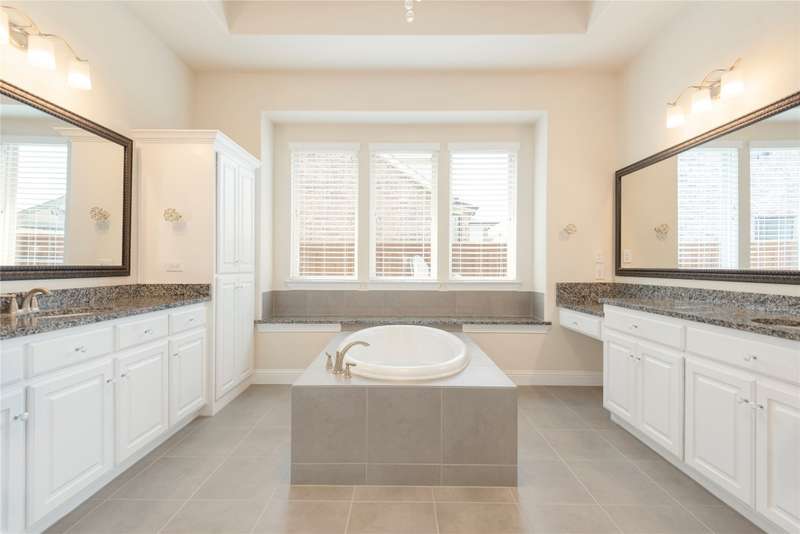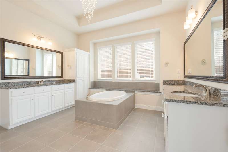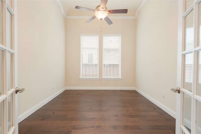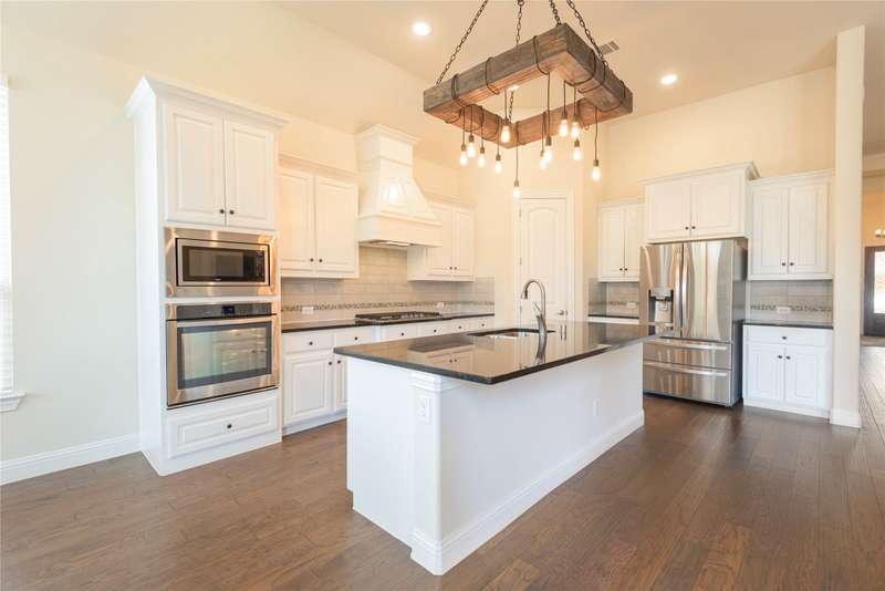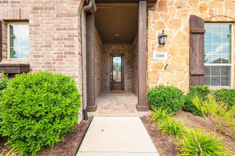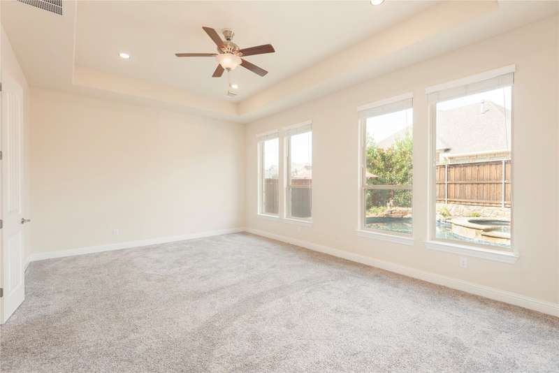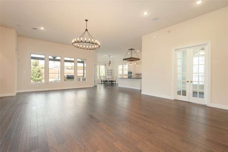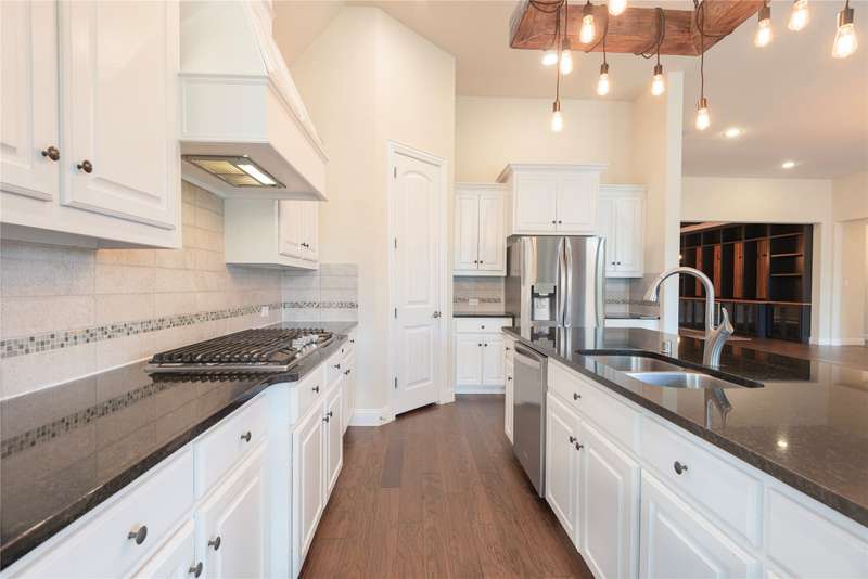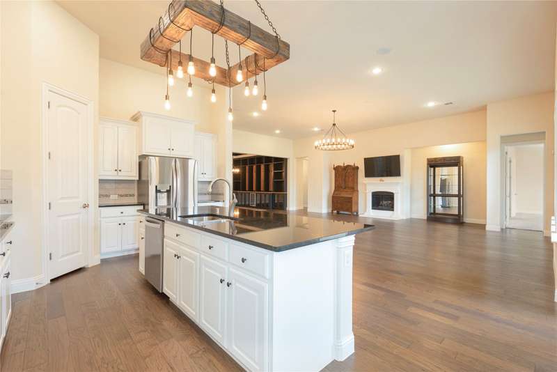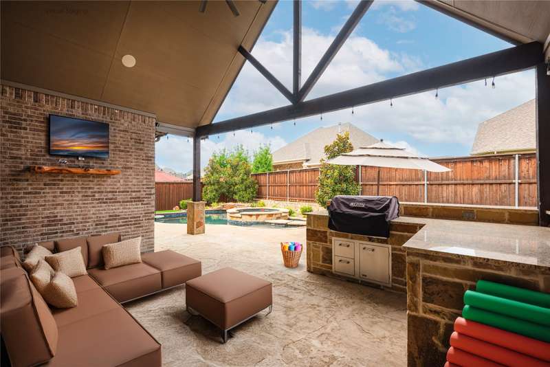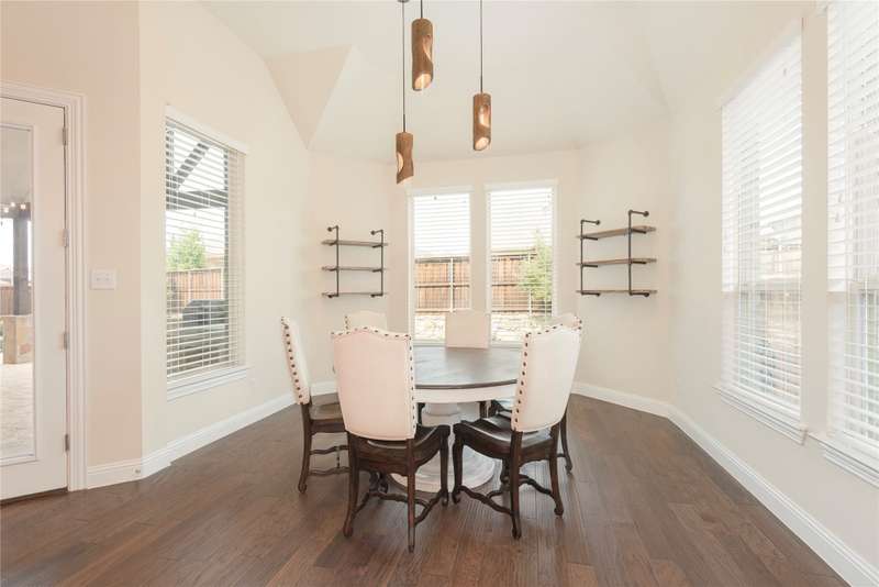 WELCOME HOME to this stunning, sought-after single-story retreat in the vibrant Trinity Falls community. This meticulously maintained home checks all the boxes with luxurious upgrades, smart design, and a private backyard oasis. Step inside to find a grand entry hall leading to the elegant Formal Dining Room, complete with a coffered ceiling, full wall of floor to ceiling lighted built-ins, beverage fridge, gorgeous chandelier, perfect for entertaining in style. Expansive Family Room features a centered gas log fireplace, furniture niche, wall of windows offering panoramic views of your private outdoor entertaining area with built-in BBQ and resort-style pool. Kitchen includes a massive breakfast island, abundance of cabinetry, walk-in pantry, stainless steel refrigerator, gas cooktop all next to the Breakfast Room. Engineered wood flooring flows throughout the main living areas, including the home office, while ceramic tile is thoughtfully placed in all bathrooms and the Utility Room. The Utility Room is both beautiful and functional, offering a full-size stackable washer and dryer, porcelain farmhouse sink, folding or craft table, window, and space for a freezer. The 3-car garage is spotless and upgraded with brand-new epoxy flooring, perfect for storage, hobbies, or simply protecting your vehicles in style. Outside, enjoy your own outdoor paradise featuring a covered patio, built-in grill, lush turf, and a sparkling pool with water feature and umbrella table. Cathedral patio with ceiling fan just perfect outdoor entertaining. Trinity Falls is a 2,000-acre master-planned community offering an exceptional lifestyle with 2 community pools, 2 clubhouses, a fitness center, Dog park, splash pads & multiple playgrounds, Fishing lakes & natural open space parks, Winding hike and bike trails, Disc golf course & outdoor amphitheater. Frazier Elementary School is located within the community. You'll be just minutes from the new H-E-B, and convenient access to US Hwy 380.