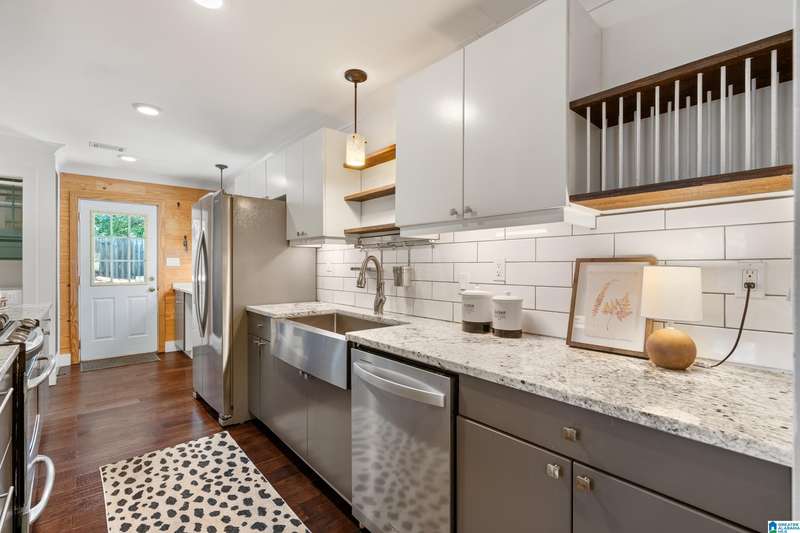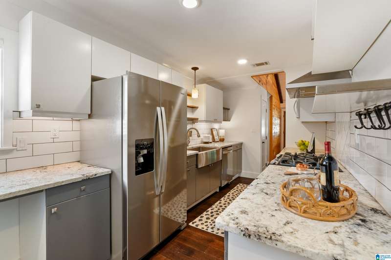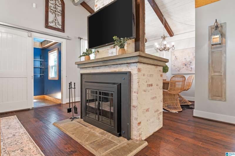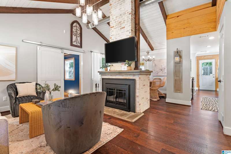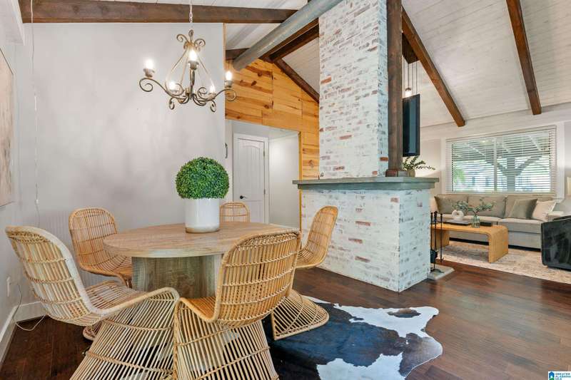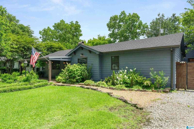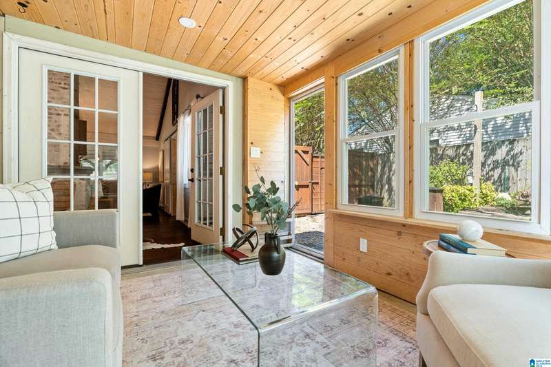 Welcome to 607 Strathmore Rd, a beautifully renovated home filled with charm and modern comfort. Step inside to whitewashed T&G cathedral ceilings with exposed beams, hickory floors, and a stunning fireplace anchoring the living space. The dining area opens to a sunroom overlooking the gardens. The galley kitchen features granite counters, gas range, industrial sink, prep area, and custom drawers. The spacious primary suite offers a spa-like bath with walk-in shower, custom double vanity, and dream closet. Two bedrooms, a full bath, and an office/TV room complete the home. Outside, a 750± sqft garage/carriage house with loft offers endless possibilities. Walk to Saw’s Juke Joint and Slice Pizza, and enjoy being minutes from UAB, St. Vincent’s, and downtown restaurants.