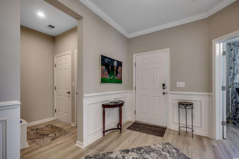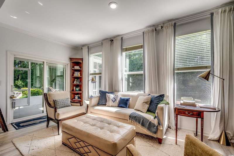***OPEN HOUSE Sunday July 20th 12-3pm*** This spacious home, situated on a meticulously maintained and beautifully landscaped premium lot, features 3 bedrooms and 2.5 baths with numerous upgrades. The floor plan is ideal for everyday life or entertaining, encompassing an open kitchen, formal dining room, flex room, great room, and Carolina room, all designed to achieve perfect flow. The kitchen offers an abundance of upgraded cabinetry, pantry, stainless steel appliances, granite countertops, a large island accommodating four barstools, a breakfast nook, and a dedicated office alcove. The home features a split bedroom plan, with two bedrooms at the front of the house sharing a Jack-and-Jill bath. The primary suite includes a ceiling fan with light, a large walk-in tiled shower, double sink vanity, and a walk-in closet. Lots of storage plus an attached garage with storage above. The flex room at the front of the house and the Carolina room at the back provide ample extra space. Off the Carolina room is a screen porch, accompanied by a paved area on the left and a large patio on the right, complete with a charming pergola. The backyard offers a tranquil oasis with picturesque water views and a secluded private setting, creating a peaceful retreat for relaxation. Each day here provides a unique opportunity to connect with nature and find calmness, ensuring a sense of escape in this peaceful environment. Cameron Village amenities include pool, club house, tennis courts, basketball court and a playground. Located in St James school district and only 6.5 miles to the beach. Schedule your showing today! You won’t be disappointed! Buyer and buyer's agent are responsible for verification of all measurements HOA info and zoning.