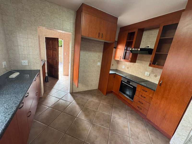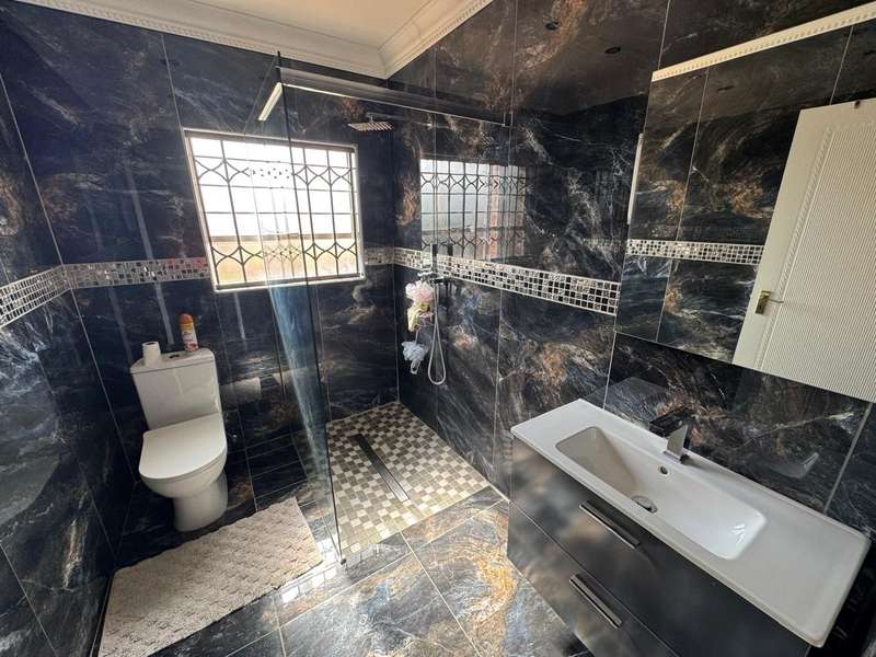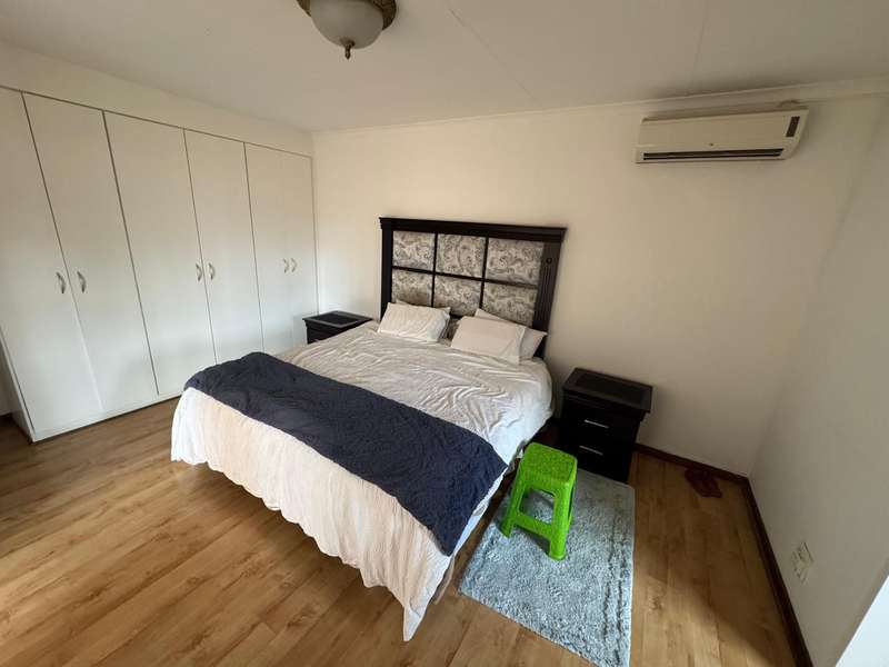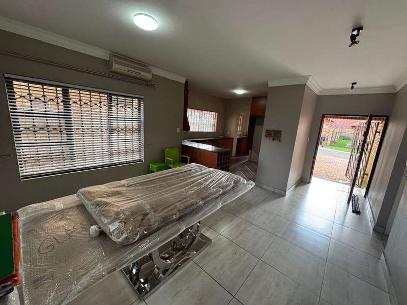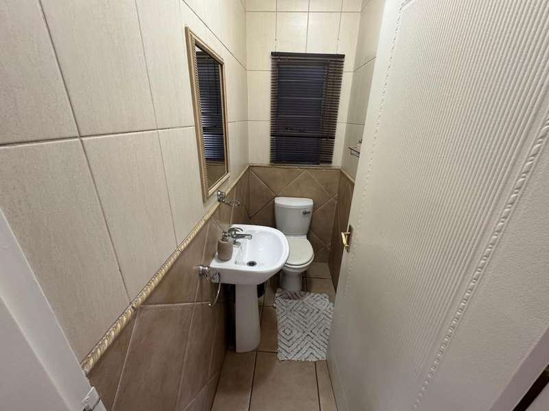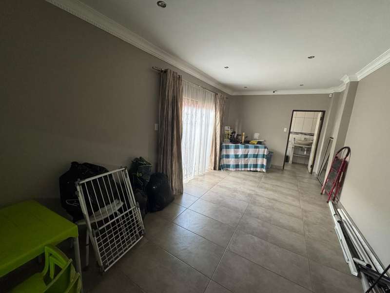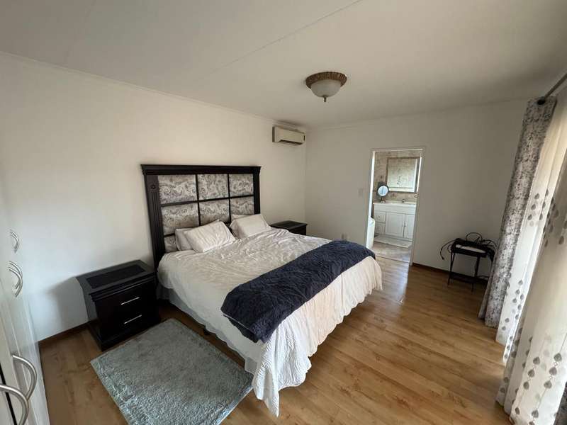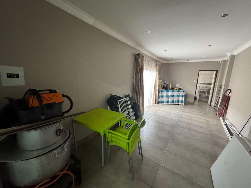 Experience modern elegance in the sought-after Bartlett area, conveniently located near the prestigious Woodlands College. This stylish face-brick home features aluminum windows, double wooden garage doors, and a beautifully paved driveway. Step inside to bright, open-plan living spaces with high-end finishes, including a private lounge, family room, and spacious dining area—all fitted with air conditioning and sleek tiled flooring. The contemporary kitchen boasts granite countertops, ample cupboard space, a scullery, and room for a double-door fridge. Upstairs, you’ll find three generously sized bedrooms with built-in cupboards, including a luxurious main bedroom with laminate flooring, air conditioning, and a private patio. Two modern bathrooms, one en-suite, complete the upper level. Additionally, a self-contained bachelor flat with a bedroom, lounge, and en-suite bathroom provides versatility or rental income potential. Situated in a secure complex, this home offers top-notch safety features, including electric fencing, an alarm system, surveillance cameras, and an inverter for uninterrupted power. Don't miss out—contact us today to schedule a viewing of this exceptional property!