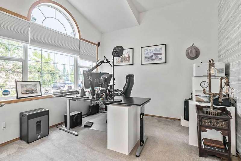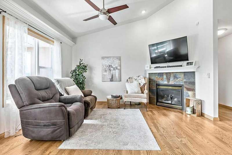 GORGEOUS OVERSIZED LOT BACKING ONTO NATURAL DISTRICT, VAULTED CEILING, open concept plan with 2700SQFT+ of living area, five bedrooms, main floor den, WALK-OUT BASEMENT … truly, this bilevel bungalow checks them all! Step inside (click 3D for virtual walkthrough), and you will fall in love with this home’s warm ambiance and beautiful setting. MAIN LEVEL features stunning open concept kitchen with pantry and island, living room with corner fireplace, dining area overlooking back yard, primary bedroom with ensuite bathroom and walk-in closet, and second bedroom plus full bathroom. ENTRY LEVEL a few steps down features home office to one side. LOWER LEVEL features spacious layout, huge windows that flood this space with natural light, in-floor heating, large recreation room, three more bedrooms and full bathroom. All in, this home offers an impressive 5 bedrooms, 1 den, plus 3 full bathrooms. OVERSIZED (21’3” x 24’0”) DOUBLE GARAGE is insulated, drywalled and heated (gas). THEN THERE IS THIS HOME’S BACK YARD PARADISE … oh my, truly a private oasis within a nature reserve, and nearly double the size of most lots in town. Lot backs onto designated natural area and offers plenty of room and privacy for endless hours of outdoor relaxation and fun in the summer, and room for skating rink in winter. Did we mention AC, solar panels that have essentially eliminated electric bills for sellers, and new hot water tank? If you are looking for a spacious bungalow in perfect serene setting, then this is the one!! RECENT UPDATES: solar panels $26K (2024), new hot water heater $5K (2024), new paint throughout (2025)