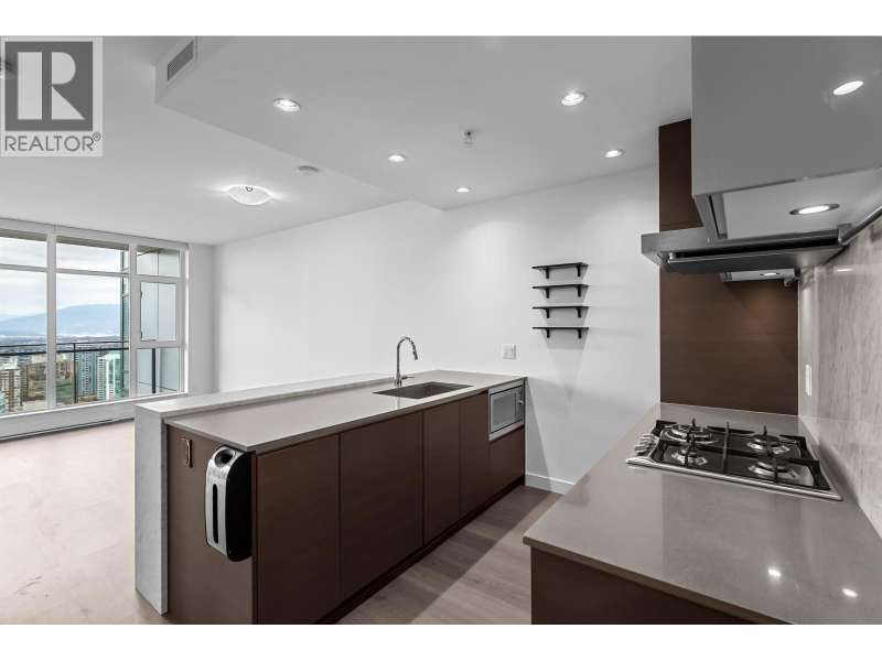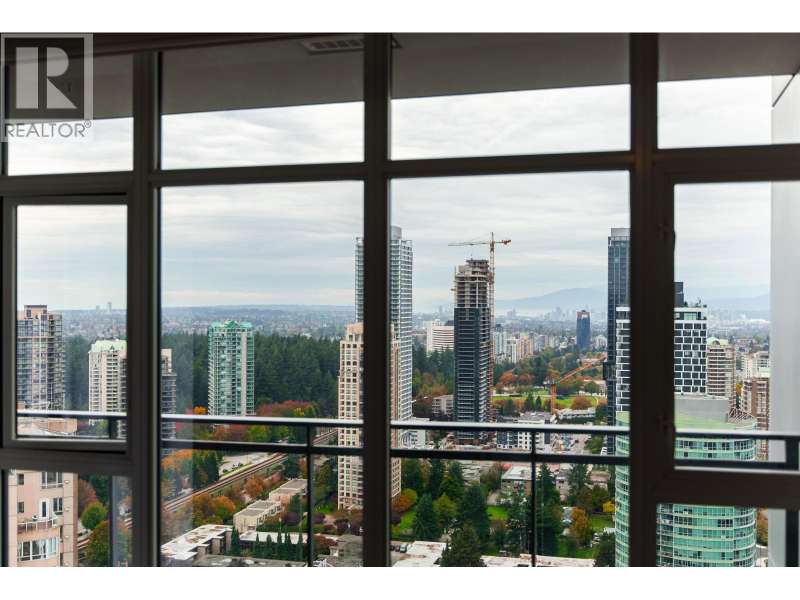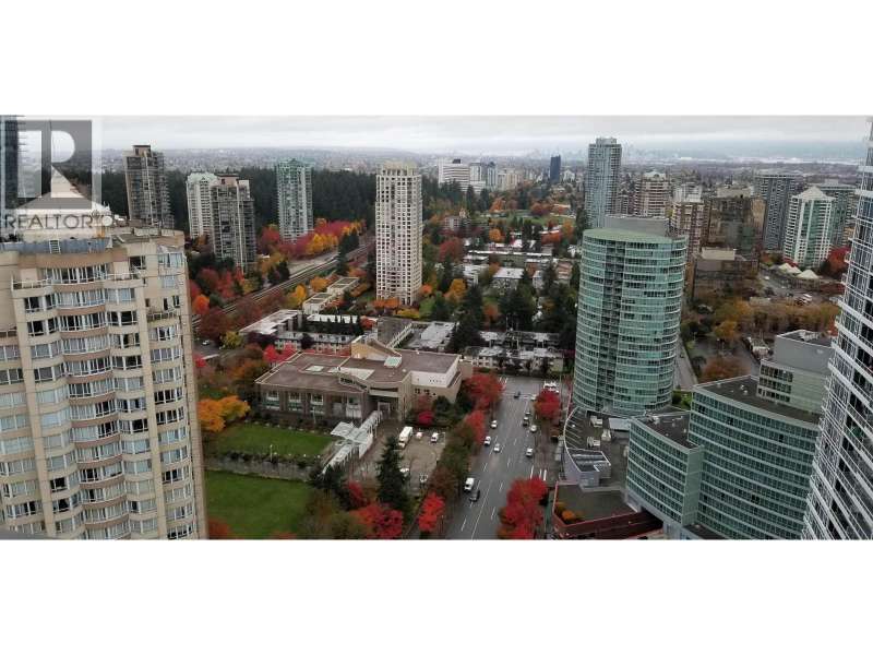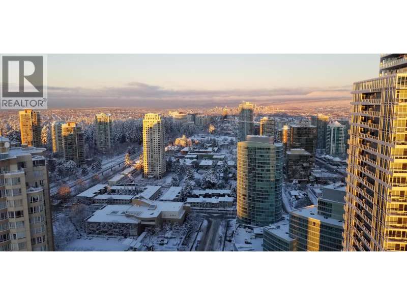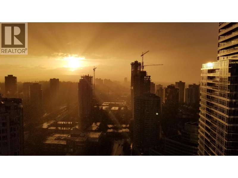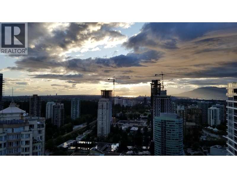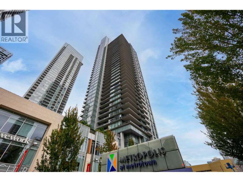 Welcome home to Station Square 3 @ Metrotown! High-floor 1bd + den w/stunning WEST VIEWS of the City, Mountains & Ocean. Open kitchen featuring quartz countertops, marble backsplash, gas cooktop & integrated appliances. Spacious den ideal for office or storage. Large covered balcony perfect for Sunsets & Fireworks. 9-ft ceilings, powered blinds, wide-plank floors & in-suite laundry. 1 EV PARKING & 1 locker. Building offers 24-hr concierge, fitness centre, yoga studio, guest suite, media room, rooftop gardens & BBQ lounge. Steps to Metrotown, Crystal Mall, SkyTrain, restaurants, cafés & Central Park. Call for a private showing or to confirm the Open House Sat/Sun Oct 25/26 2-4PM (id:58403)
