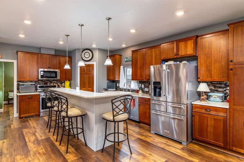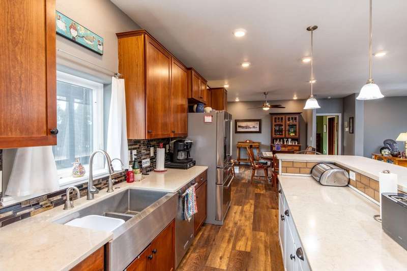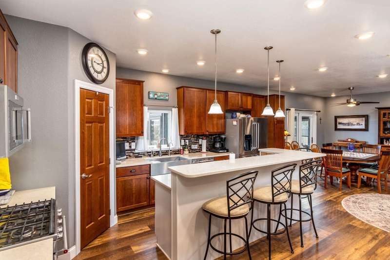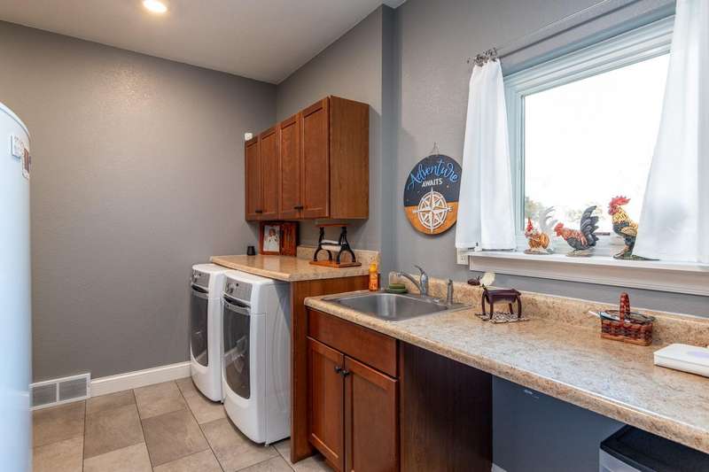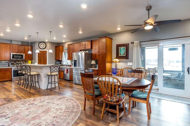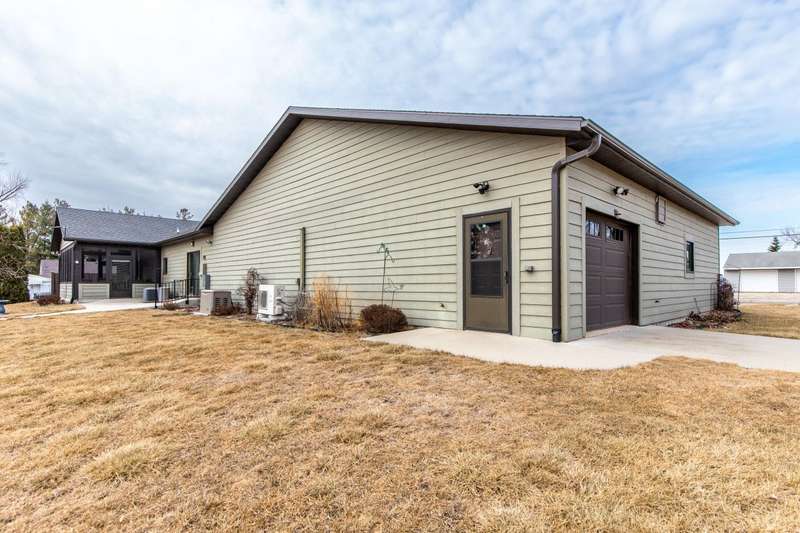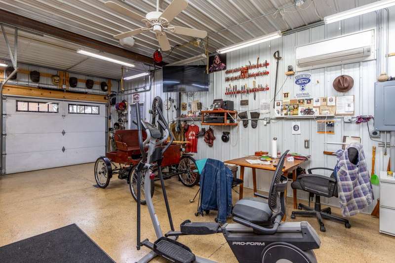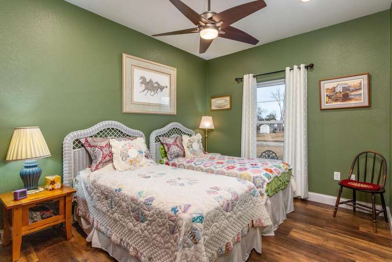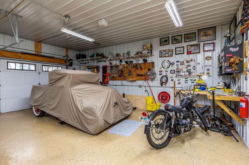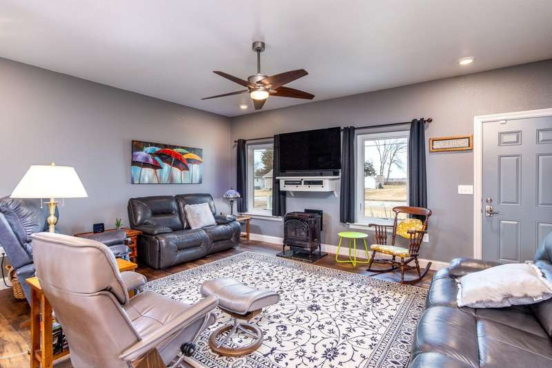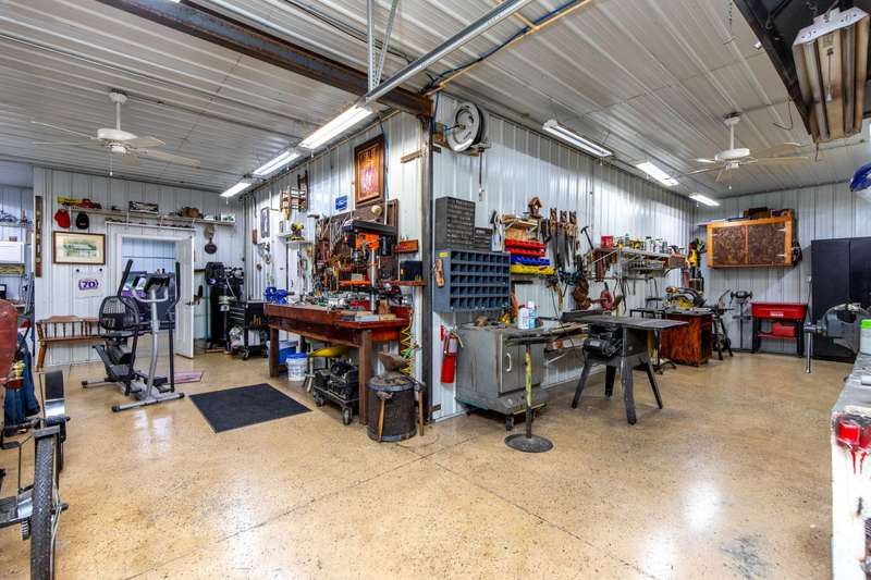 This stunning four-bedroom, four-bath ranch-style home sits on nearly an acre of land just outside of city limits, and is packed with high-end features. Designed with an open floor plan, this home offers seamless flow and functionality. The kitchen is a chef's dream, boasting custom poplar cherry cabinetry, a spacious walk-in pantry, and modern appliances. The master suite is a luxurious retreat with a walk-in closet, an en suite bathroom featuring a soaking tub, dual vanity, and a walk-in shower with a rainfall showerhead.Built for efficiency and durability, the home includes an on-demand water heater and a meticulously constructed basement with poured concrete walls insulated inside and out with Styrofoam blocks for superior energy savings.The attached three-car garage is a dream workspace, featuring heated floors, a mini-split system for heating and air, and a large shop area equipped with a kitchenette and a three-quarter bathroom. The shop is fully equipped with an air compressor, exhaust fan, work benches, and a gun safe.Outside, additional structures provide even more value, including a charming potting shed/she-shed with an attached storage area perfect for toys and tools. Every building on the property is insulated with spray foam for maximum efficiency, and all new Andersen windows ensure comfort and energy savings, and whole-house generator for ultimate convenience. With ample space, thoughtful upgrades, and premium finishes, this home offers the perfect blend of comfort, practicality, and style. Don't miss out on this exceptional property!