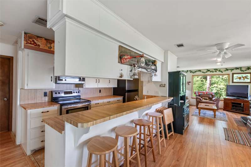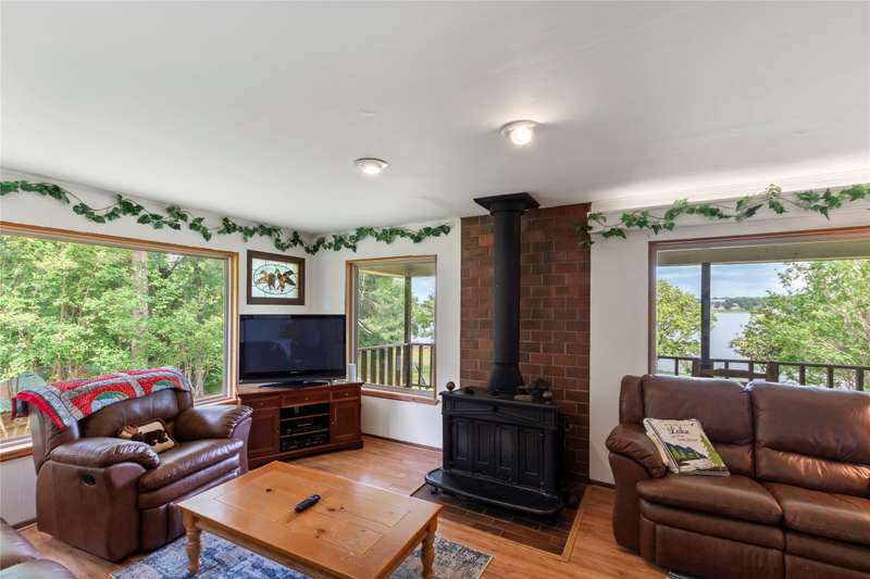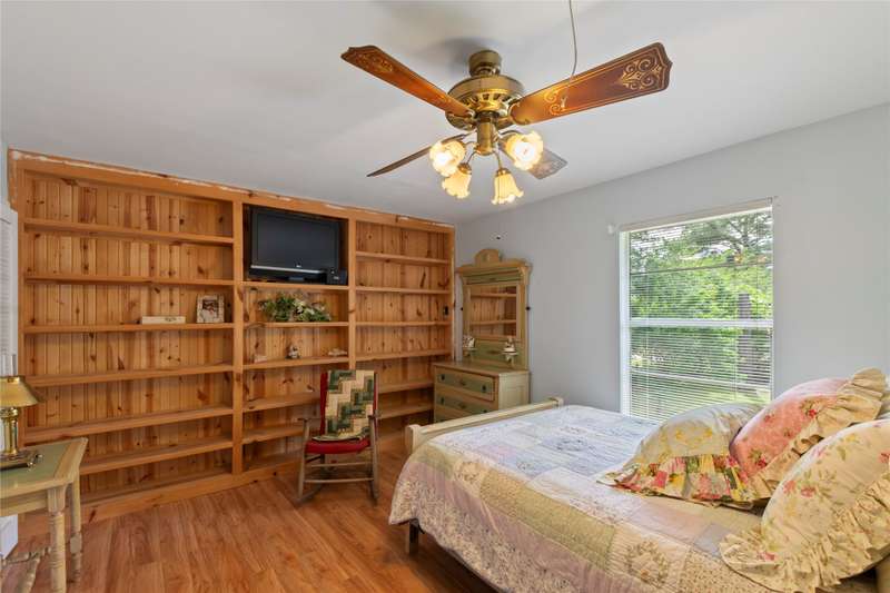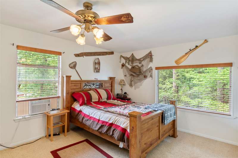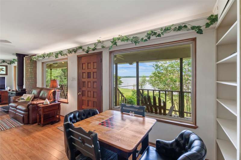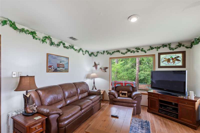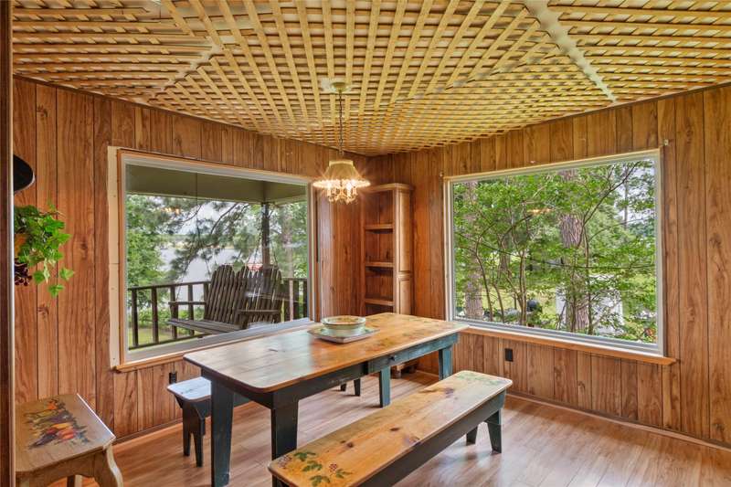 Peaceful, tranquil and picturesque describe this unique waterfront property on almost an acre with approximately 165 ft of natural shoreline and 2 homes! Main home offers 1765 sq ft with 3 bedrooms and 2 baths with large picture windows to enjoy the wonderful waterview. The balcony is perfect for relaxing in a rocking chair or gather around a table or lounge chair under the large covered patio overlooking expansive lawn sprinkled with pine trees with room to roam and play ---you will never want to leave. With remodeling this home can be a great lakeside cabin. The separate adorable 703 sq ft log cabin home offers an open concept studio style living with kitchen, living, dining, sleeping areas with full bath that makes a great guest house or live it while remodeling main home. Log cabin features antique sink faucets, antler chandelier lighting and cozy wood burning stove. Sandy bottom lake great for playing and wading in the water. Boathouse with entrance from 2 sides.