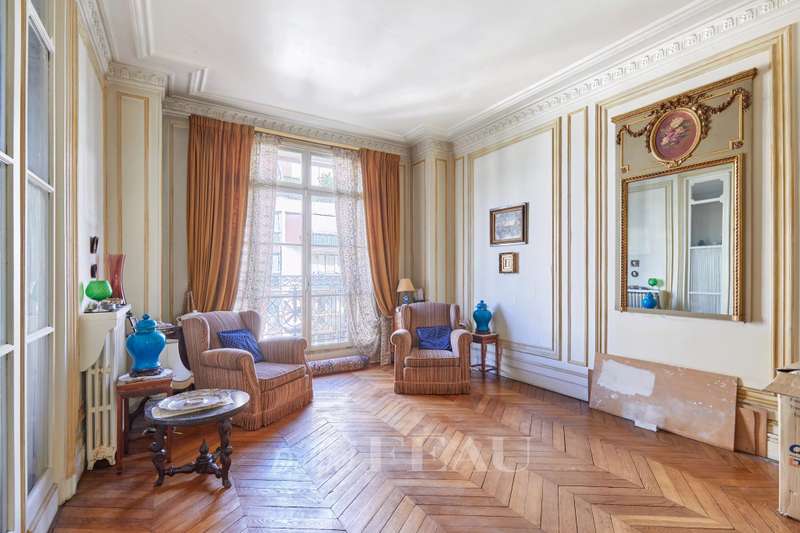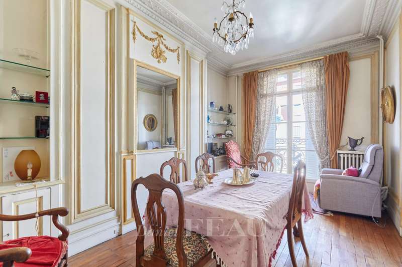 Avenue Mozart. This 127 sqm apartment featuring parquet flooring, fireplaces and high ceilings with mouldings is on the 4th floor of a luxurious early 20th century freestone building in a convenient location near the shops. An entrance hall leads to a double living/reception room, a kitchen with dining facilities, two bedrooms, a bathroom and a shower room. Ample fitted storage space. With a cellar. A maid’s bedroom is part of the sale for a further 93600€.
