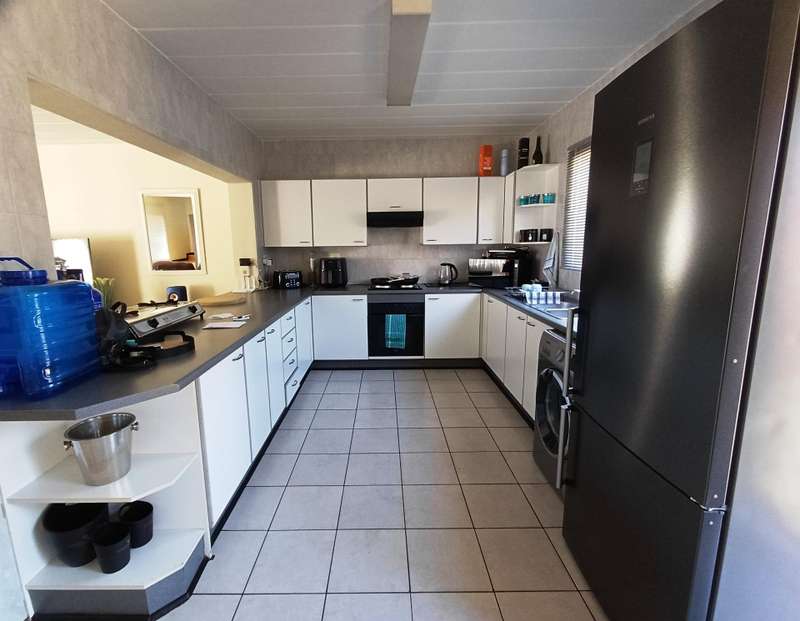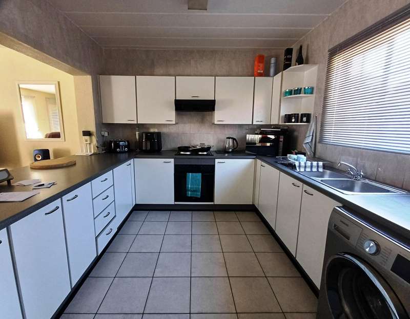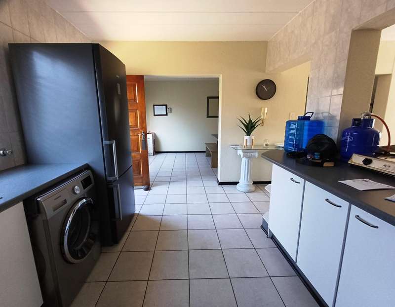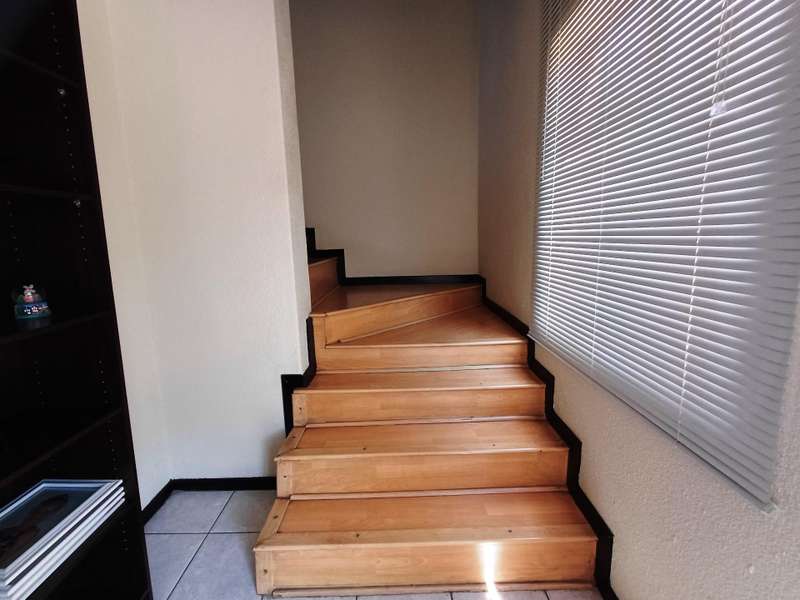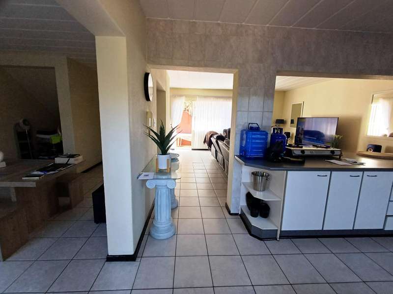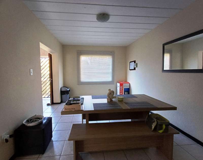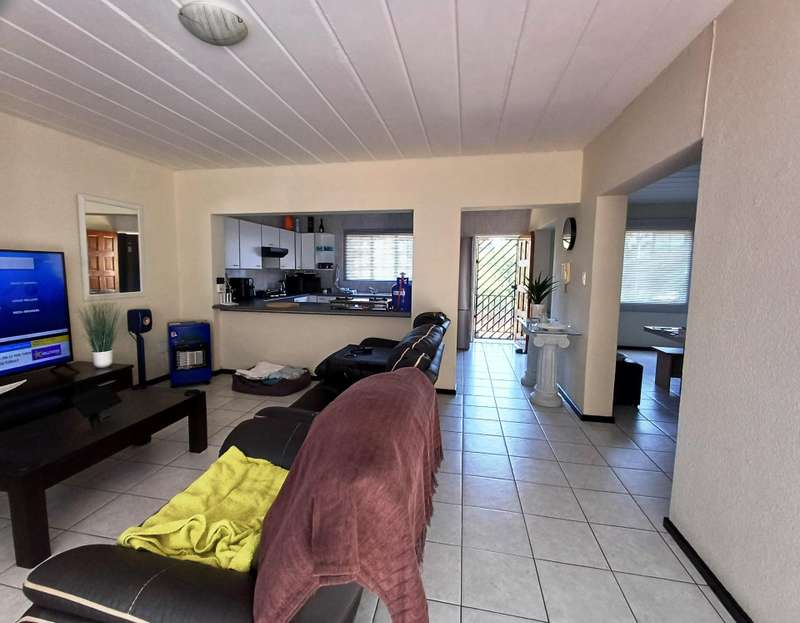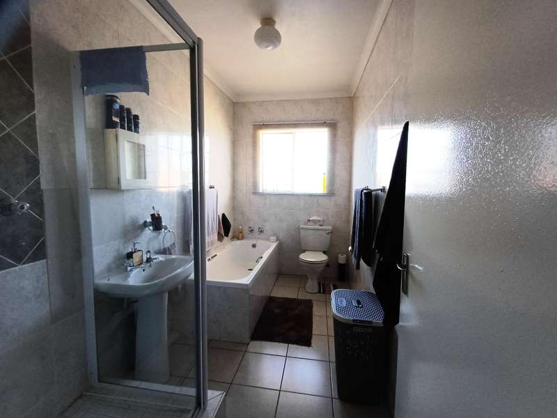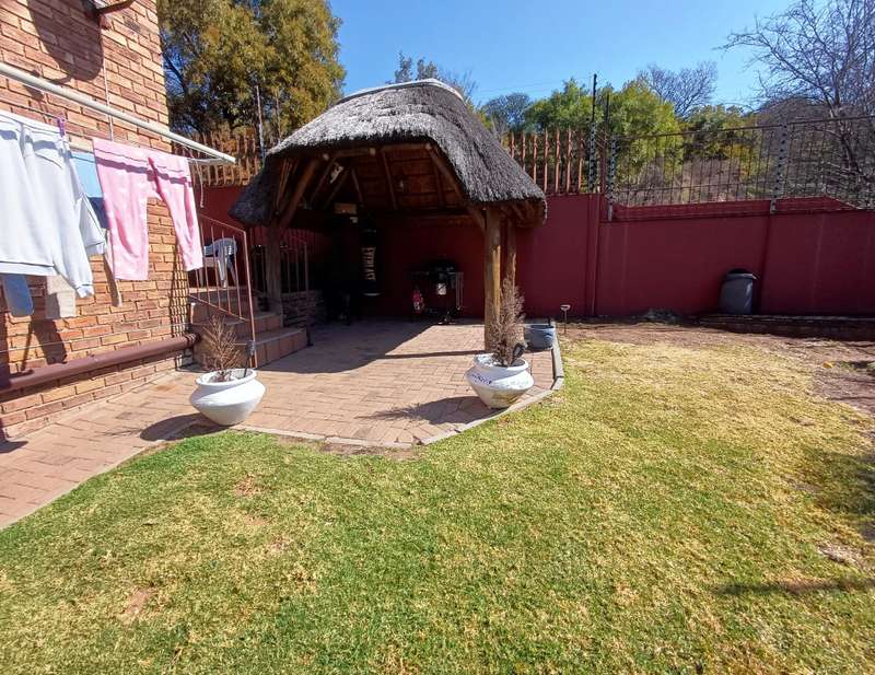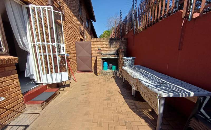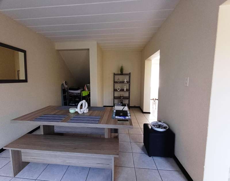 LOVELY DUPLEX WHICH OFFERS: 3 Spacious bedrooms all fitted with cupboards and laminated flooring. Master bedroom has a MES with bath, basin & loo. Second bathroom with large shower, bath, basin & loo Open plan kitchen with loads of cupboards and space for appliances Open plan lounge leading out on to a small private garden with a built-in braai and lapa. Separate dining room Double garages Prepaid electricity meter Auto access entrance gate with electric fencing