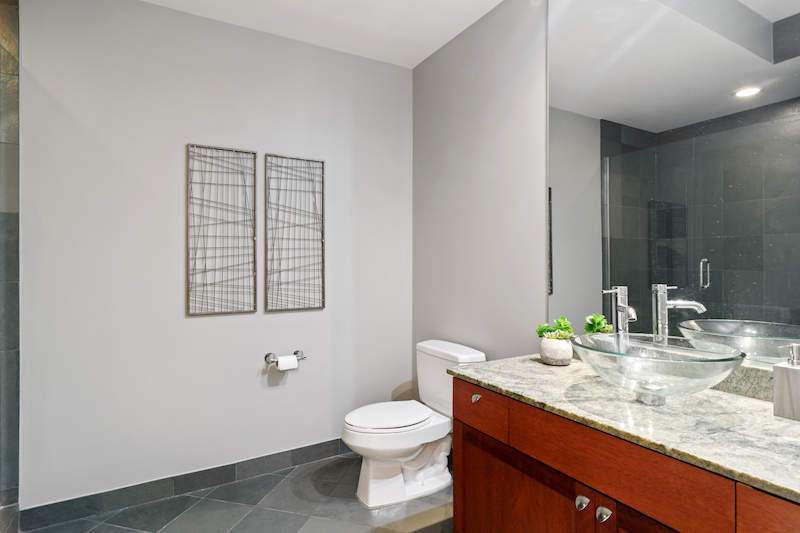 Opportunity to live in this East Village boutique elevator building is rare. This 2 bedroom, 2 bathroom condo is special with an extra wide split layout with beautiful finishes, bright living area plus a covered south facing balcony. The bedrooms are situated on the north side of the building, off street. The sizable open concept living area can accommodate a complete set of living room furniture, separate dining with space for an additional sitting area or home office furniture. PLUS a stainless/granite kitchen w/ 42" cabinets is complete with many cabinets, a trash compactor, and an oversized eat-in island. Top that with a recently remodeled spa master bathroom featuring a separate glass enclosed shower, a soaking tub, a beautiful double sink vanity, and a separate toilet room for privacy. Sprawling hardwood floors throughout; gas fireplace; custom built-in cabinetry; ideal closet configurations; in-unit laundry; attached garage parking; & common rooftop deck w/city views.