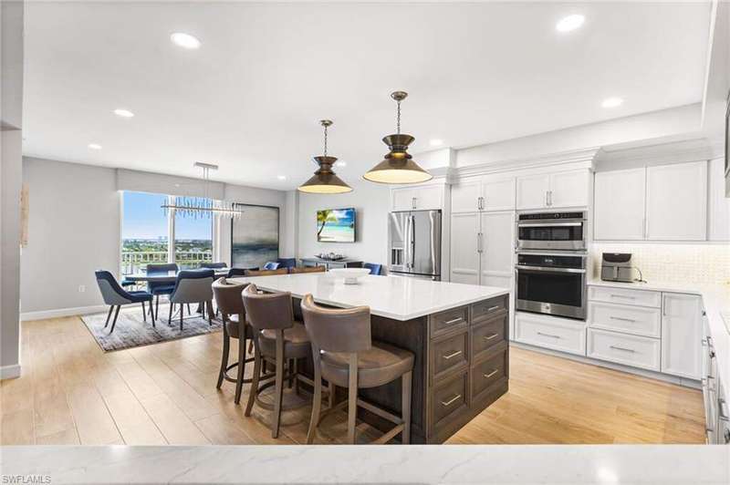 BREATHTAKING VIEWS OF THE RIVER AND DOWNTOWN FORT MYERS ARE YOURS!! RARE OPPORTUNITY - TWO UNDER-BUILDING PARKINGSPACES INCLUDED! Perched on the 9th floor of The Shores III, this rarely available Danbury end-unit offers 3 bedrooms, 3 baths, and 2,660 sq.ft. of refined high-rise living. With two elevators serving the unit and two deeded parking spaces, convenience meets exclusivity. Step inside todiscover panoramic views of the Caloosahatchee River, golf course, lakes, and even Downtown Fort Myers. The wraparound lanai and multipleprivate balconies-one off the guest suite and another off the family/dining room-flood the home with natural light and provide unmatchedoutdoor living space. The remodeled 2022 kitchen is a showpiece, featuring quartz countertops, a massive gathering island, induction cooktop,custom cabinetry with under-cabinet lighting, and sweeping river views. Recent upgrades also include new tile flooring throughout the mainliving areas and fresh interior paint. The oversized primary suite showcases breathtaking river views, a spa-style bath with soaking tub, walk-inshower, and expansive walk-in closet. A second bedroom features its own ensuite bath and balcony, while the third bedroom sits next to a fullbath-perfect for guests or a home office. Additional highlights include: Hurricane roll-down shutters Private storage locker Two deeded under-building parking spots (rarely available!) Shores waterfront pool access LIMITED TIME - Sports Membership Joining Fee Reduced by $32,000!Secure a Gulf Harbour Sports Membership for just $20,000 while this promotion lasts. Private memberships are available for golf, tennis,fitness, and more. Gulf Harbour's 186-slip deep-water marina offers slips for purchase or lease-an ideal complement to this luxury lifestyle. Besure to watch the two videos showcasing the condo and marina!