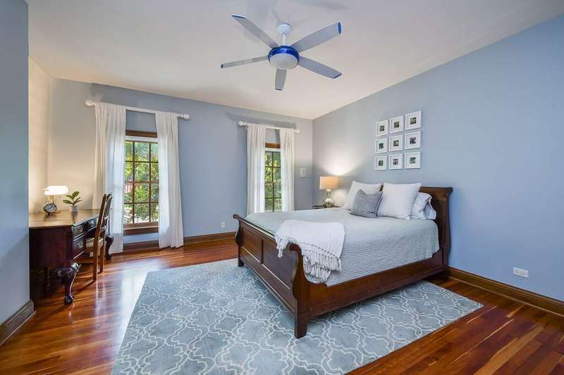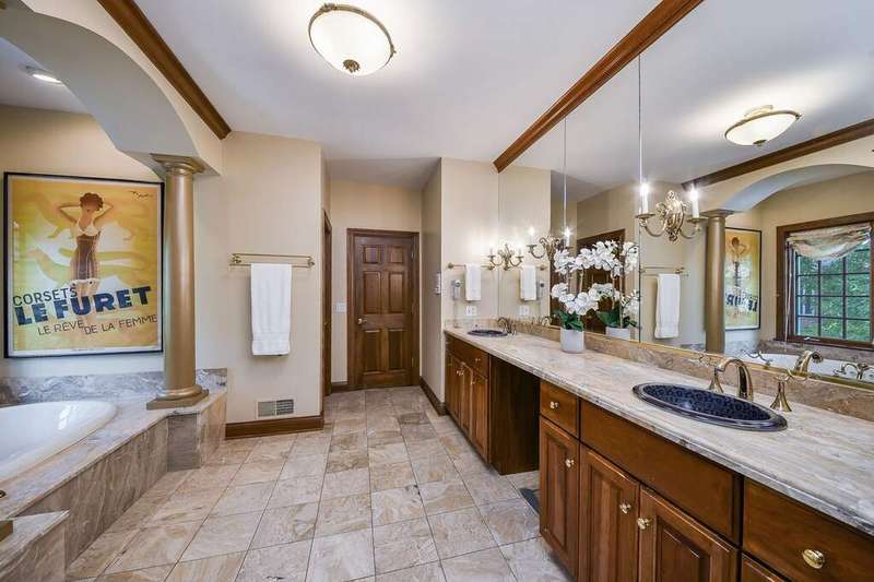 Custom-built with timeless design and a perfect floor plan, this stunning all-brick Georgian-style residence is nestled on a quiet cul-de-sac in the heart of Wheaton. Situated on one of the largest lots in the neighborhood-nearly half an acre (.46 acres)-this home offers serene privacy while nestled in close to Chicago Golf Club. From the moment you enter, you'll be captivated by the architectural elegance and thoughtful layout that make this home ideal for both everyday living and grand-scale entertaining. The dramatic foyer features a soaring ceiling and is flanked by a formal living room and dining room, each with its own gas fireplace and refined ambiance. A richly paneled main floor library with coffered ceilings and built-in bookcases provides an ideal space for working from home or enjoying a quiet retreat. The expansive family room boasts a vaulted ceiling and a striking floor-to-ceiling brick fireplace, flowing seamlessly into the gourmet kitchen. Designed with high-end appliances and ample workspace, the kitchen also features a sunlit sitting area-perfect for morning coffee or unwinding at the end of the day. Just outside, a bluestone patio with built-in grill, burners, and beverage fridge extends your living space, ideal for alfresco dining and entertaining. The beautifully landscaped backyard is a true sanctuary, complete with lush vegetation, a crushed granite walking path, a second bluestone patio, limestone retaining walls, and elegant built-in planters. Upstairs, all bedrooms are generously sized with custom built-in closets. One bedroom features an ensuite bath, while the luxurious primary suite offers two large walk-in closets, an in-room laundry area, and a spa-like marble bathroom with walk-in shower, jetted tub, dual vanities, and a private water closet. The English-style basement offers 2,415 square feet of unfinished space with large windows and plumbing already in place for a full bathroom-providing incredible potential for future customization. A spacious 3-car garage and an expansive driveway offer ample parking for family and guests. Lovingly maintained by the original owners, this remarkable home is now ready for its next chapter. Don't miss this rare opportunity to own a truly exceptional home in one of Wheaton's most sought-after locations.