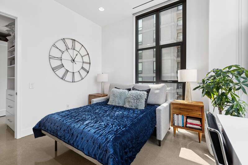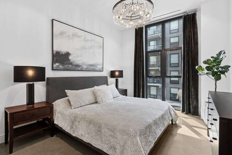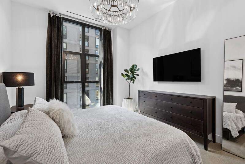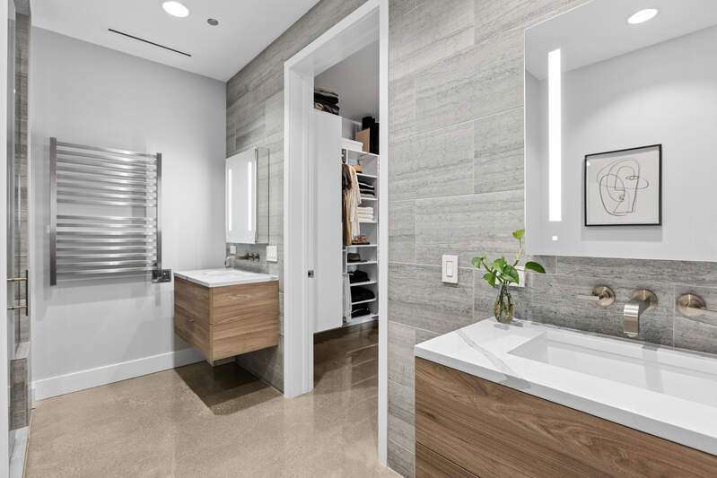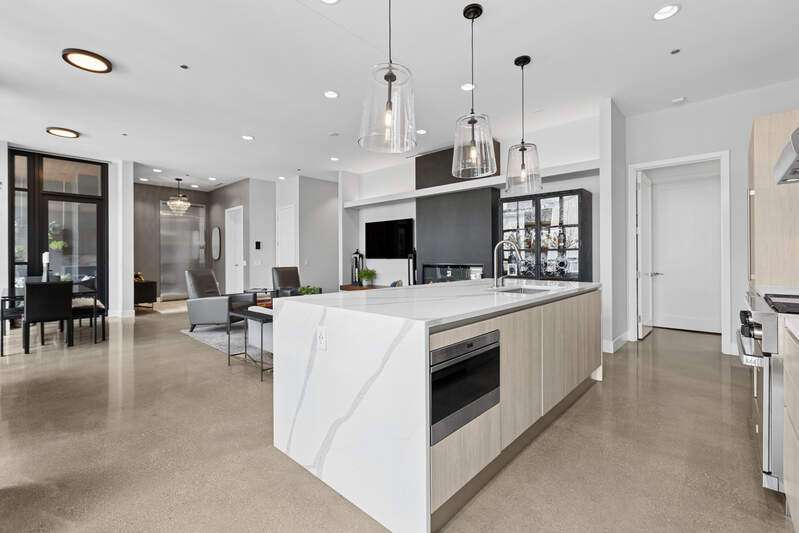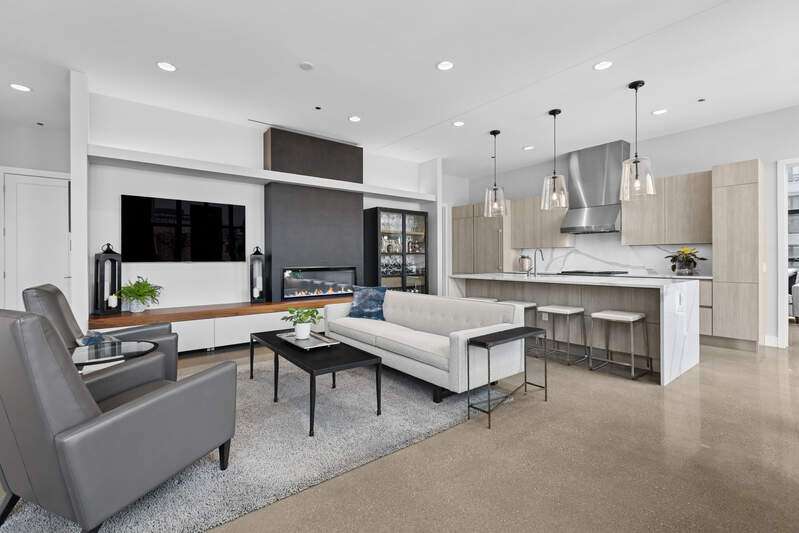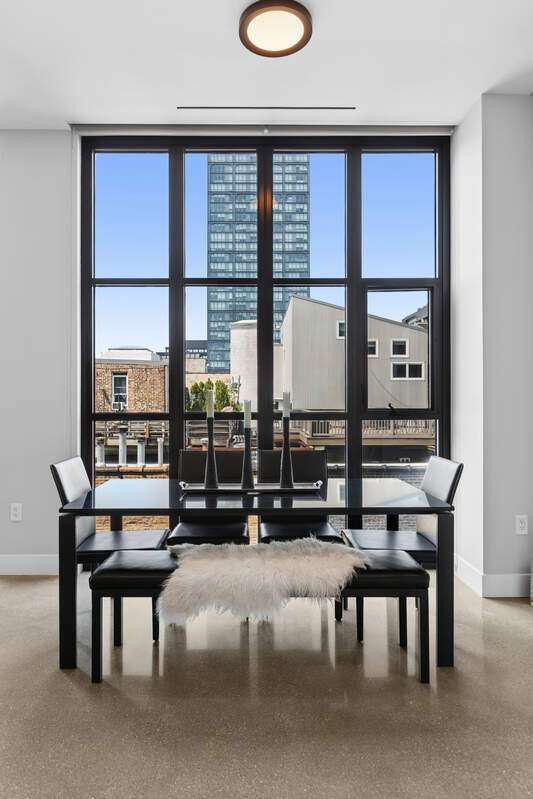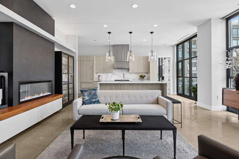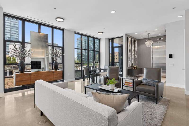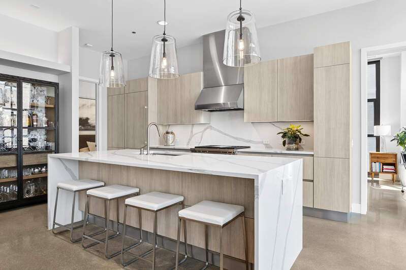 Experience refined, healthy living in this designer 2-Bed, 2.1-Bath residence at 900 West Washington - West Loop's Premier LEED Gold-Certified boutique building. Enter your home directly via a private elevator into a sleek, modern open floor plan with soaring 10'6" ceilings and radiant-heated polished concrete floors throughout. The space is bathed in natural light from floor-to-ceiling, sound-resistant windows and enhanced by upgraded lighting, creating a bright, serene atmosphere ideal for both everyday living and entertaining. At the heart of the home is a true chef's kitchen, outfitted with custom Italian Scavolini cabinetry, a premium Sub-Zero/Wolf appliance package, and a dramatic 10-foot quartz waterfall island with pendant and under-cabinet lighting. Two spacious pantries provide exceptional storage, while coordinating Scavolini media cabinetry in the living area adds both function and design continuity. Anchoring the living room is a custom fireplace wrapped in steel- an elegant, modern statement piece. The expansive living and dining areas open to an outdoor terrace featuring recessed lighting, a gas line for grilling, and views of the dynamic West Loop. The primary suite is a luxurious retreat with a custom walk-in closet and spa-grade en suite bathroom showcasing dual floating Scavolini vanities, integrated sinks, Hansgrohe/Axor waterfall fixtures, a frameless glass shower with Milestone surround and Cosentino tray, heated towel bars, and a LUM-lit Robern mirror. The second bedroom also boasts an en suite bath and custom closet. Additional highlights include an upgraded laundry room with full-size LG washer/dryer and built-in storage solutions. This is green living at its finest with MERV-13 filtration-delivering hospital-grade air quality, 75% green roof, energy-efficient features, radiant heated sidewalks, and parking available for electric cars. A garage parking spot ($50k) with capabilities for a 2-car lift complete this rare offering. This architecturally significant building features just 22 residences and is located in the heart of the vibrant West Loop-just steps from Fulton Market, Michelin-starred restaurants, designer boutiques, SoHo House, and Mary Bartelme Park.