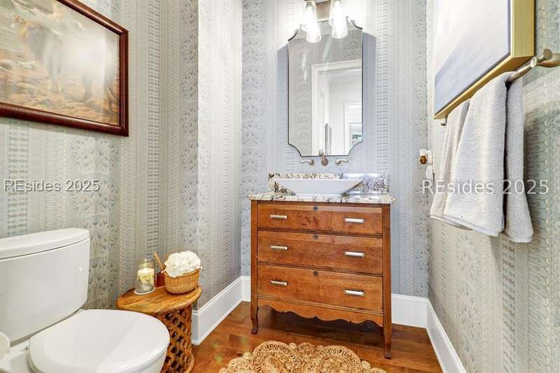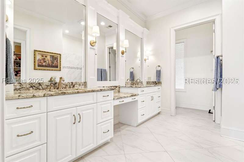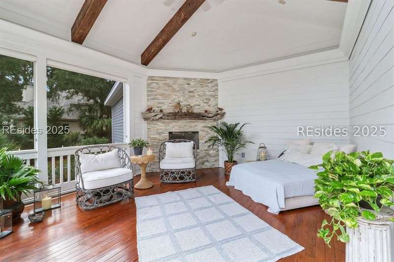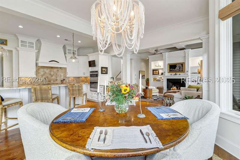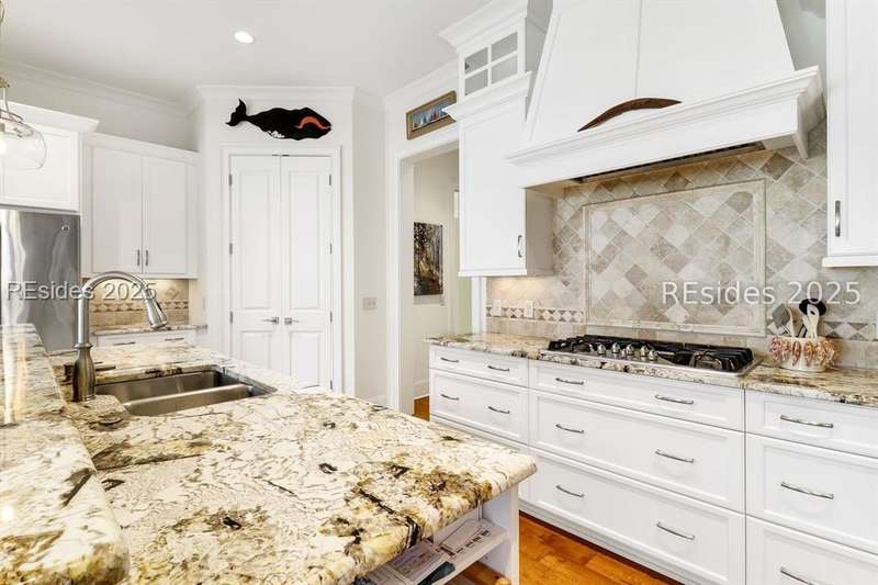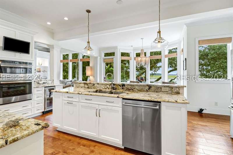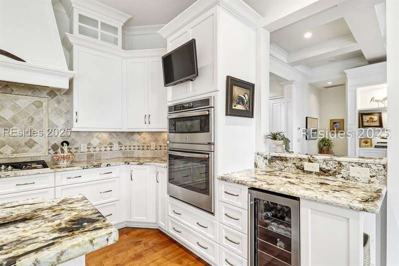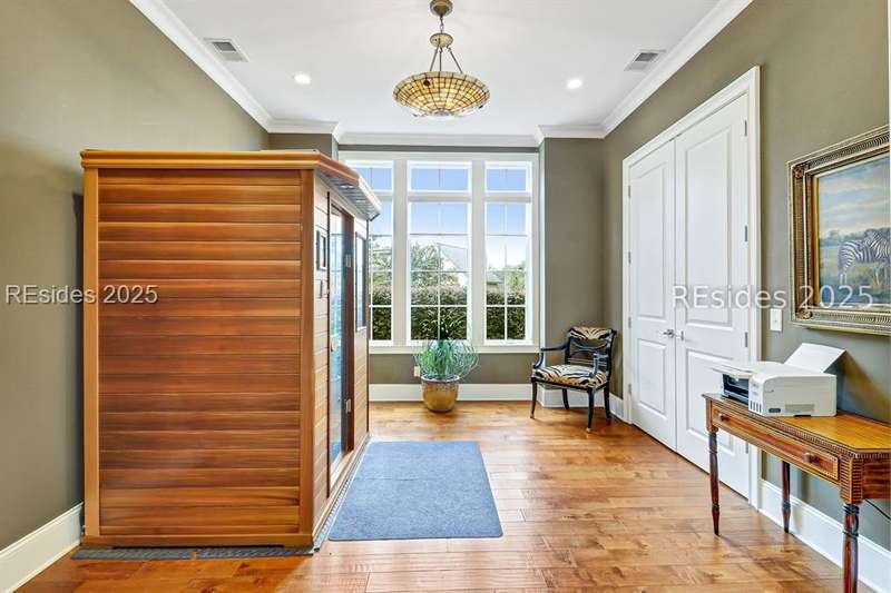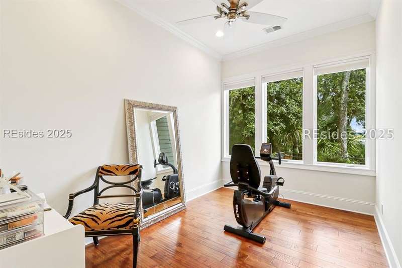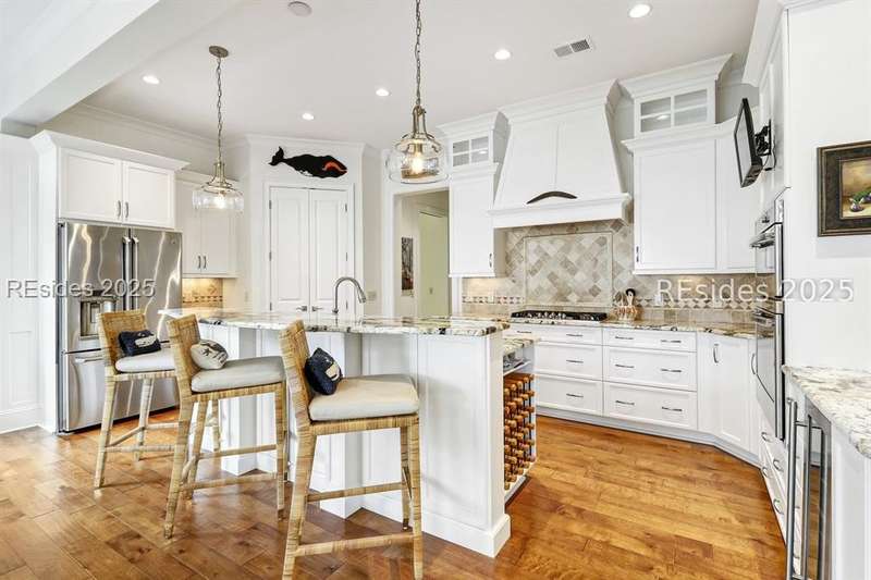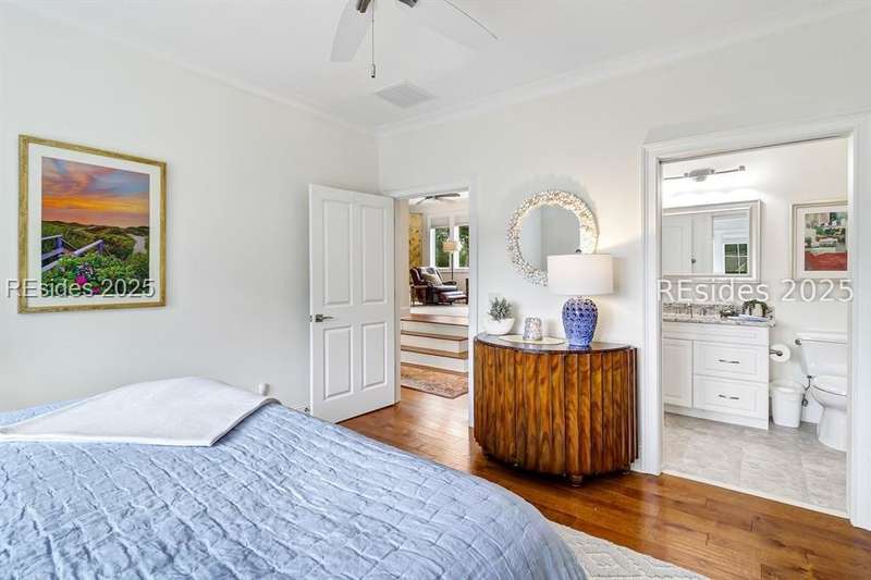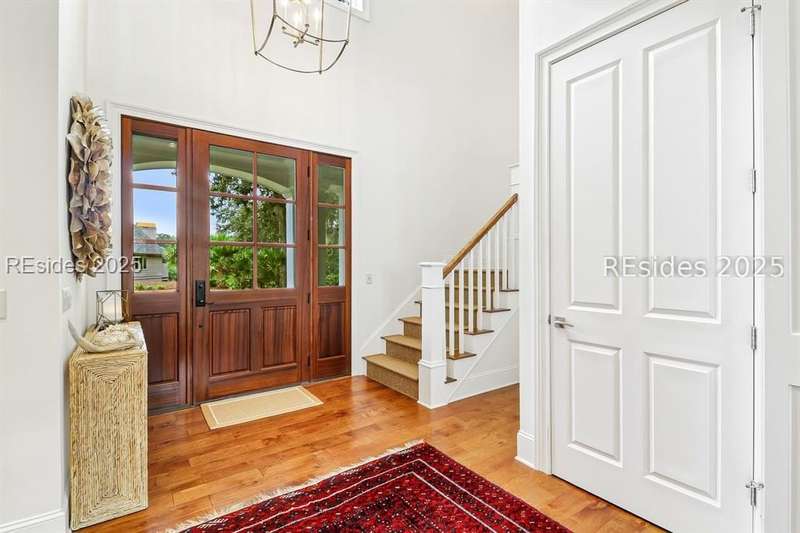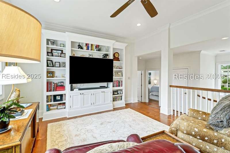RARE OPPORTUNITY! Experience miles of panoramic tidal marsh & deepwater views with this 2015 built residence by renowned custom home builder in private, amenity rich Moss Creek. Interior features/recent improvements include wood flooring, 10-20 vaulted/tray/coffered ceilings, 8 interior doors, millwork & extensive built-ins by master craftsmen, granite counters, designer curated fixtures/hardware/lighting/window treatments, 2 gas fireplaces, walls of windows (w/transom windows) to view, stainless steel appliance package, spray foam insulation, imressive storage space including walk-in attic, closets & garage w/extensive built-ins. Very livable floor plan offers island kitchen open to dining & great room, walk-in pantry, much desired screened porch, bonus/media rm, office/den (4th BR), powder rm, laundry/mud room, ample/well-appointed guest BR suites & expansive/private primary suite with updated 5 Star bath, large walk in closet + multi-purpose flex room. Exterior offers attractive/durable Hardie board siding, charming covered front porch, all new front yard & plantings, extensive rear decking & brick paver walkway, must have fenced dog run, low voltage path & uplighting, majestic live oaks & pebbled walkway to secluded marsh front firepit. All sited on high elevation, quiet/private, end of cul de sac lot with Blue Heron Sanctuary to front and preferred southeastern exposure to rear offering excellent natural light, picturesque sunrises, and stunning, shaded late afternoon/evenings great for relaxing and entertaining friends and family. This is the home you've been dreaming about...