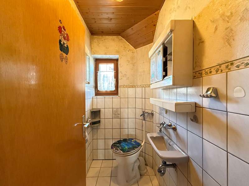 The property, built in 1965, is situated in an attractive location on the outskirts of the village and offers you the opportunity to realize your individual living concept through comprehensive renovation. The two-family house offers a total living space of approx. 209.53 m² on a cozy plot of approx. 612 m². The house is ideal for families or investors who want two separate residential units. With a total of 7.5 rooms, including 4 bedrooms, it offers plenty of space for different living situations. The well thought-out room layout opens up a wide range of possible uses. A particular highlight is the living room extension from 1989, which enlarged the living room and also created a basement area. The large tiled stove in the living and dining room not only creates a cozy atmosphere, but also invites you to linger with a comfortable bench. The tiled stove is conveniently heated with wood from the cellar. In 2004, some new windows were installed to improve living comfort. In 2009, a light-flooded conservatory was added, providing additional living space and a pleasant atmosphere. Heating is currently provided by a combination of electric heating and wood. The property has a covered terrace that invites you to linger outside. A single garage provides parking space for vehicles, and the cellar creates additional storage space. Behind the garage is a practical, brick-built extension, which is accessible from the rear garden. Here you will find plenty of space for firewood or garden tools. Between the garage and the house, behind a wrought-iron door, you will find an additional room that is ideal for parties. In addition, there are two further rooms in the cellar, which have also been used as event areas - one of which has a stylish bar and a light organ for atmospheric evenings. Another plus: the converted attic can be extended into additional living space and used flexibly. This property offers enormous potential for buyers who are willing to invest in a refurbishment and design a home to their liking. The house is also interesting for investors due to the possibility of dividing it into two residential units. Thanks to its location on the outskirts, towns such as Nördlingen, Harburg or Donauwörth can be reached quickly, meaning you benefit from good transport links. Be inspired by the possibilities of this house and arrange a viewing today! Take the opportunity to design your dream home.
