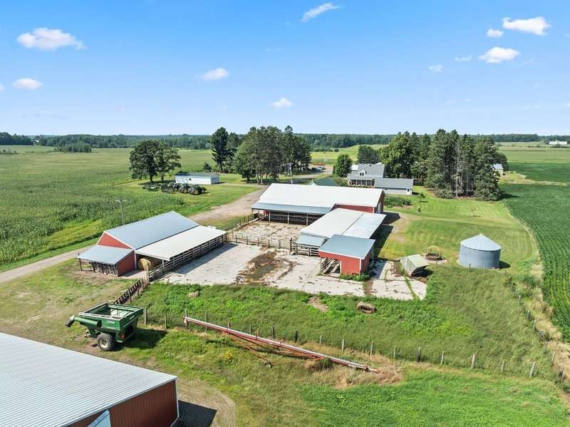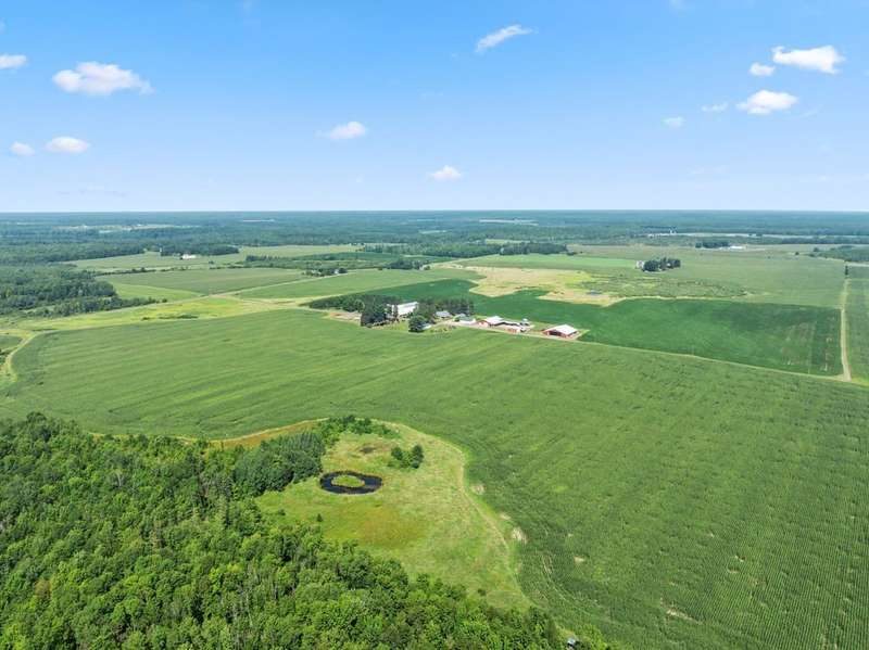 For the first time in over a century, this cherished legacy farm is being offered to a new steward. Spanning 420 acres of productive tillable land, woods, beautifully maintained homestead & outbuildings, this turnkey operation offers a rare opportunity. The welcoming farmhouse features a wrap-around porch for sunrise coffee. Sunroom & living room w/In-floor heat & great views! Main floor laundry. Generations of dedication are evident in the well-kept grounds, raised gardens beds, apple trees, multiple ponds, deer stands, 2 detached garages, workshop, machine shed, hay storage shed, pole building, cow yard w/automatic waterer, granary, multiple new roofs. Income-producing commercial building w/3-phase power, office space, warehouse, cold storage w/loading docks. Located at the end of a road this property offers both seclusion & convenience. Whether you're expanding your agricultural operation, starting a family farm, or seeking a rich hunting and wildlife retreat this property delivers.