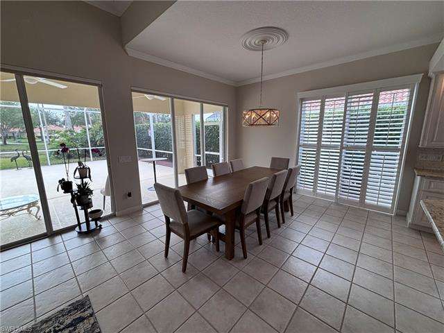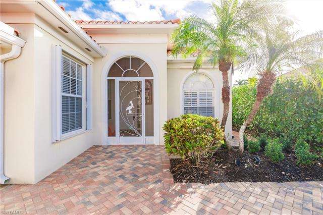 Big lake views with multiple Venetian bridges in sight. Pleasant walk to community amenities. Super clean 3 bedrooms, 2 bathrooms, den or home office, huge screened patio, and 2 car garage. Features include; 2018 roof, long brick paver driveway and sidewalks, screened front entry, modified wall unit, hurricane protection, remodeled guest bathroom, and great interior location within the community. Village Walk is 5 miles from the sugary sands of Vanderbilt Beach and 4 miles to the shopping and dining gem - Mercato! Amenities for everyone, including tennis, pickleball, bocce, gym with lap pool, restaurant with scenic patio on the large lake, 2 heated pools, and so much more! Please note this home is leased through May of 2026 and lease must be honored.
