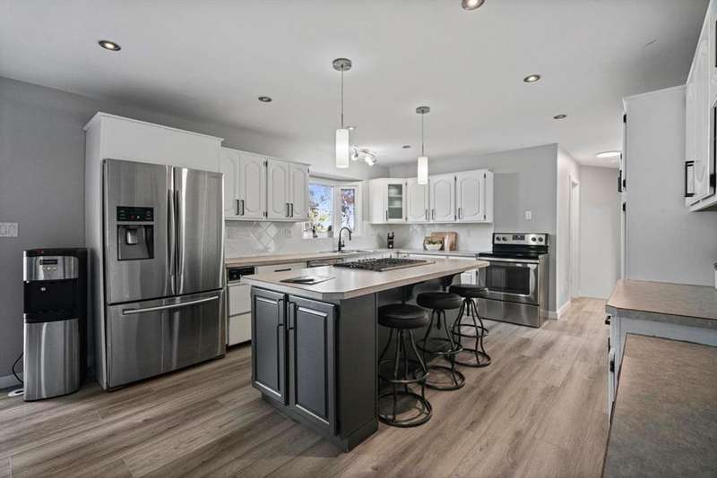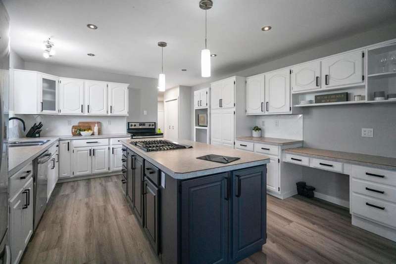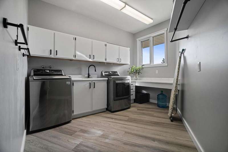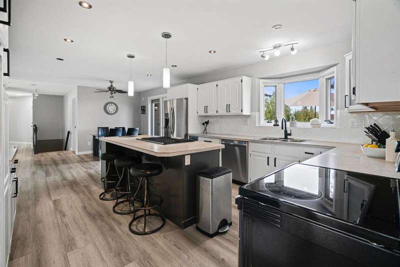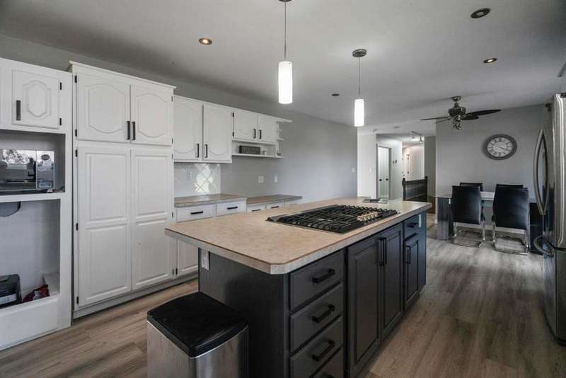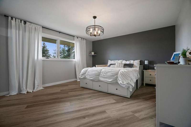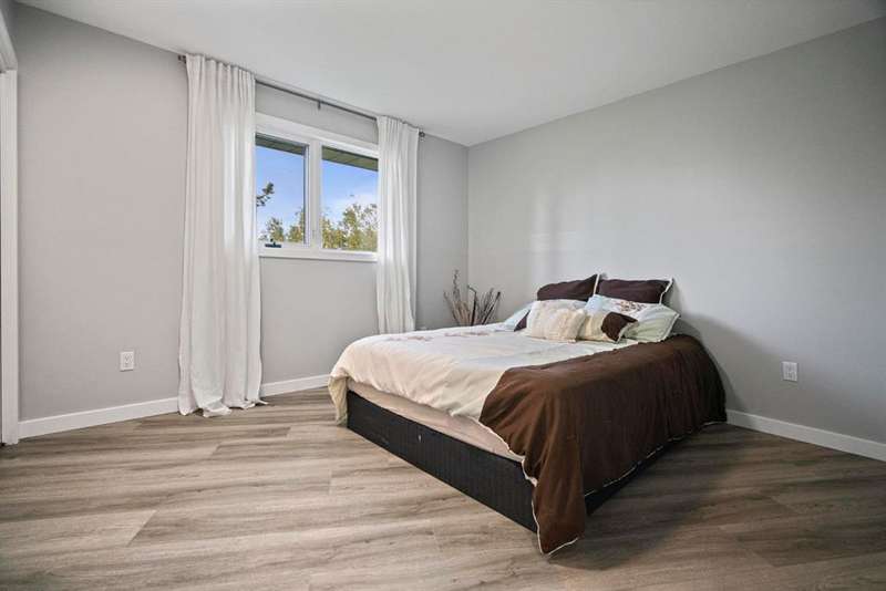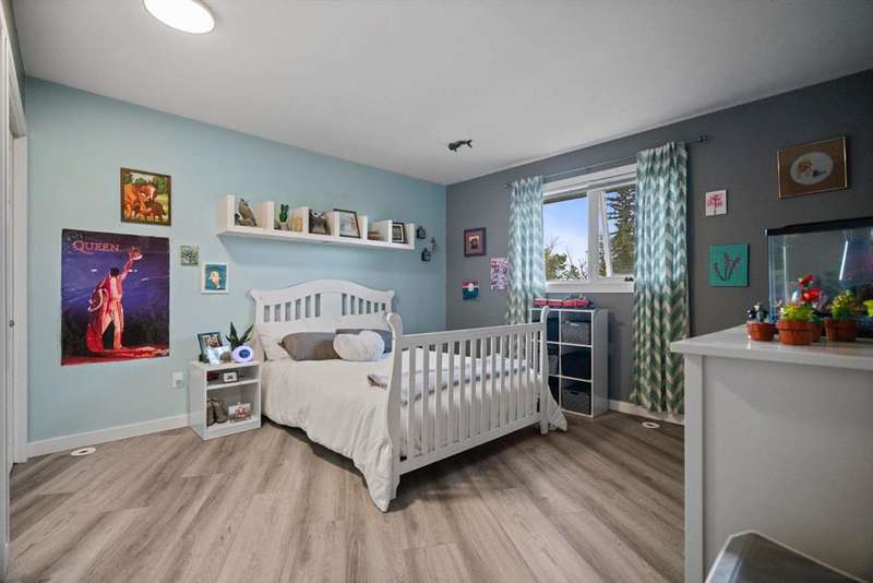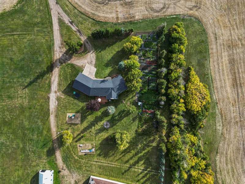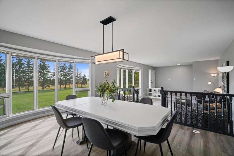 Looking for an acreage only minutes out of town? Here it is! This stunning large bungalow with just over 13 acres of land may be just the property you've been waiting for. From the moment you enter this truly remarkable home you'll notice the bright and spacious floor plan that flows from front to back. The main floor boasts a nice front living room, excellent kitchen/dining space, a formal dining room, 3 bedrooms, main floor laundry room and another rear family room with a beautiful brick fireplace. The primary bedroom has a walk-in closet and 3pc ensuite. The lower level is fully finished and includes a wide-open family and entertainment room, wet bar with fridge and stove, Stunning fireplace with custom cabinetry built-ins, flex room, office space, three more bedrooms, 3pc bathroom with custom tiled shower, an excellent storage space and in-floor heating. Outside is an oasis with rear back deck, wonderful large garden, a quonset that needs work but could make a very usable space and lots of trees, making this acreage truly a must see. Acreages of this size, quality and location to town don't come on the market that often. A one-of-a-kind property at a remarkable price!