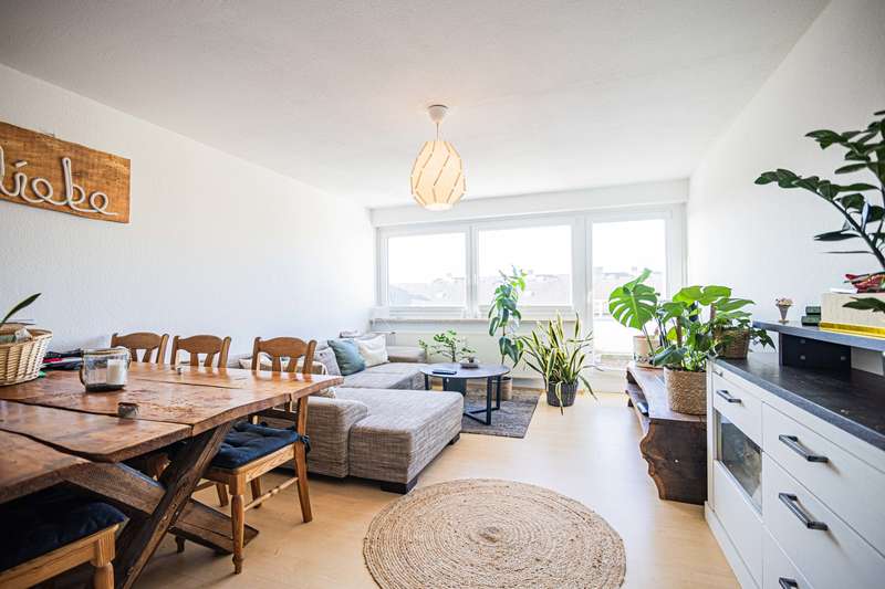 ... and enjoy the balmy summer evenings on the west-facing balcony - that's exactly what this property promises! The apartment on offer here is located on the top floor (3rd floor) of an apartment building built in 1975. Approx. 73 m² of living space is spread over three rooms, kitchen and bathroom. The apartment impresses with its generous room layout and tasteful interior design. Through the door, you are greeted by a spacious hallway that provides access to all other rooms in the property. Thanks to the installation of large windows and glass partitions to the kitchen and living room, all rooms are bright, friendly and very inviting. The living room is the largest room and offers access to the balcony. The interior bathroom has a timeless design and is equipped with a shower. The bedroom and guest/children's room are the ideal size to fall comfortably into the land of dreams. Sufficient storage space is provided by a separate cellar room. Have we piqued your interest? Then give us a call, arrange a viewing appointment with us and let yourself be inspired by this property!