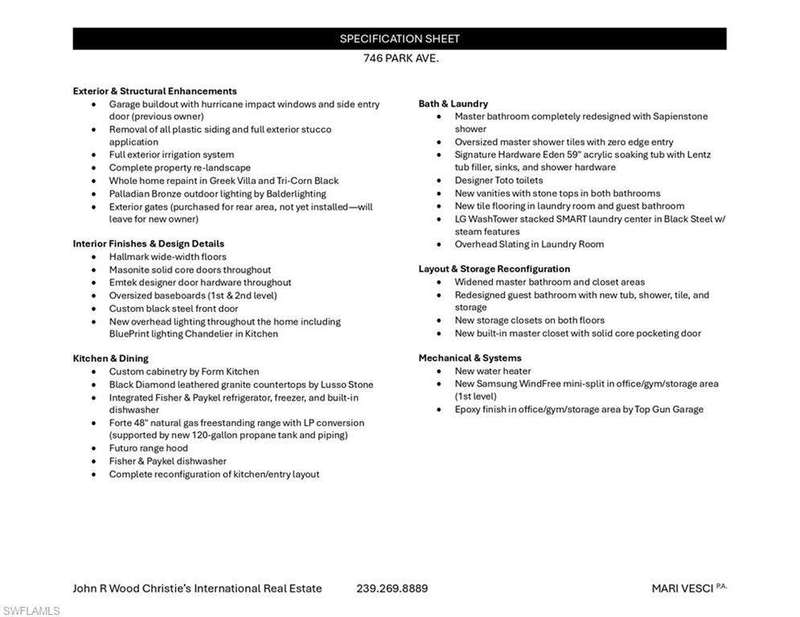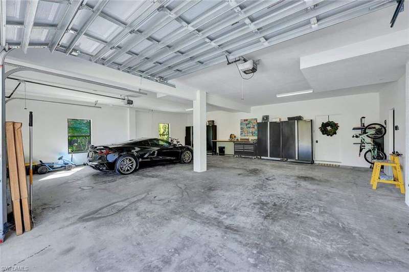 Step into a world of luxury and relaxation in this beautifully reimagined property, where every detail has been meticulously upgraded to create a stunning living experience. With several hundred thousand dollars invested in upscale improvements. Gulf Harbor community, you'll feel like you've arrived in Key West! This tranquil retreat is ideally located between Vanderbilt Drive and West of 41, offering a beach lifestyle with miles of scenic sidewalks perfect for biking, fishing, and boating enthusiasts. This remarkable home features a perfect blend of natural elements and modern functionality, creating an inviting atmosphere that welcomes you from the moment you step inside. With 3 spacious bedrooms plus an impressive 835+ sq ft first-floor family room or workout flex space, and a 12' x 12' sq ft storage room. The main living area is located on the second floor and nestled in the treetops. The great room concept features an open, stylish gourmet kitchen that is complete with a Forte 48" gas range, high-end appliances, and black diamond leather granite countertops with expansive island, perfect for entertaining family and friends! Enjoy the voluminous ceilings and Hallmark wide plank wood flooring that seamlessly flow onto the expansive screened lana, ideal for gatherings or simply relaxing with a book. Retreat to your spacious primary bedroom, featuring his and her closets and a lavish ensuite bath. Indulge in the on-trend soaking tub, glamorous stone shower, and split vanities that elevate your daily routine to a spa-like experience. Enjoy twin expansive lanais on the first and second floors, with sliding glass doors that open up to your lush backyard. The massive 30' x 34' garage and oversized driveway provide ample space for hosting your next gathering! Just half a block away, you'll find community kayak and paddleboard storage, along with docks available for lease. Bike to the beach along the convenient sidewalks, and stroll for miles along the coastline all the way to Wiggins Pass. Plus, with no HOA fees, you can enjoy the freedom of coastal living!