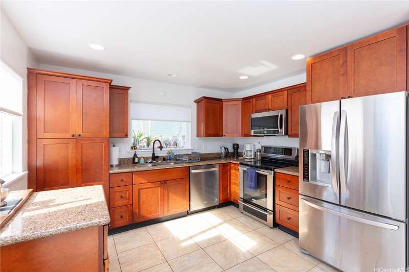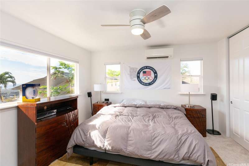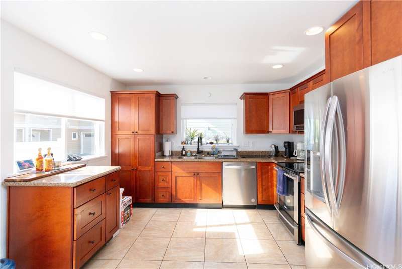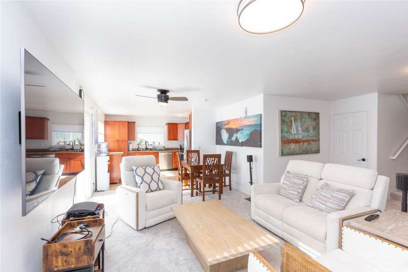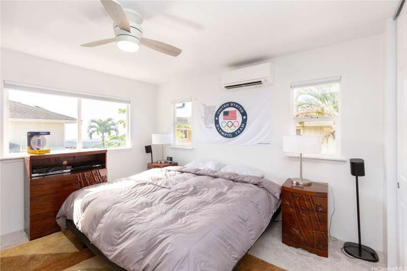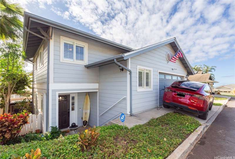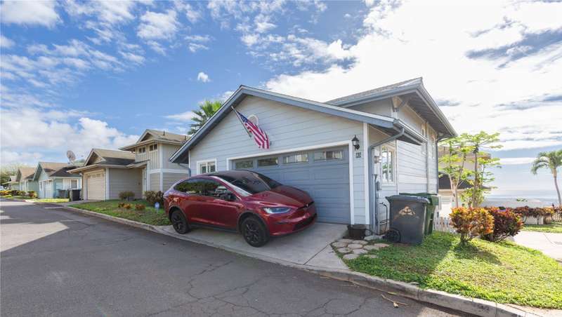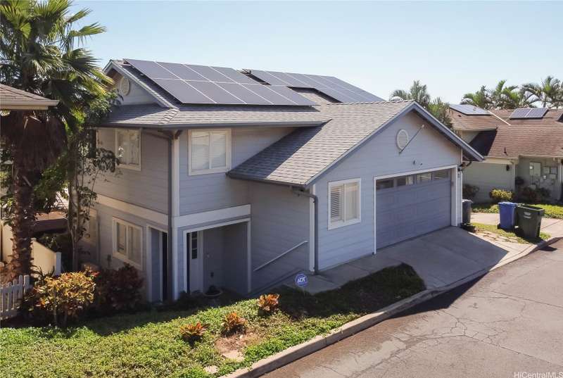 **$10,000 CLOSING COST CREDIT TO BUYER**SELLER'S ELECTRIC BILL IS $37 A MONTH!!**Discover this move-in-ready, freshly renovated single-family home located in the gated community of Seascape at Makakilo. This stunning property features an open-concept floor plan on the main level, with three bedrooms, two bathrooms, and a convenient laundry area upstairs. Enjoy ocean views from the kitchen and two of the upstairs bedrooms. The home has been beautifully updated, with interior paint, new carpeting throughout, split AC units in the living room and all bedrooms, and a brand-new roof installed November 2024! The photovoltaic system is owned with 32 panels and two Tesla Powerwalls installed January 2025, adding energy efficiency to this already impressive home. The upgraded kitchen boasts granite countertops and stainless steel appliances, while the beautiful flagstone lanai is perfect for entertaining. Relax and unwind in the new 6 person hot tub! Located close to H-1 freeway, Kapolei restaurants, and plenty of grocery options. Don't miss this incredible opportunity to own a meticulously renovated home in a desirable community. Schedule your showing today.