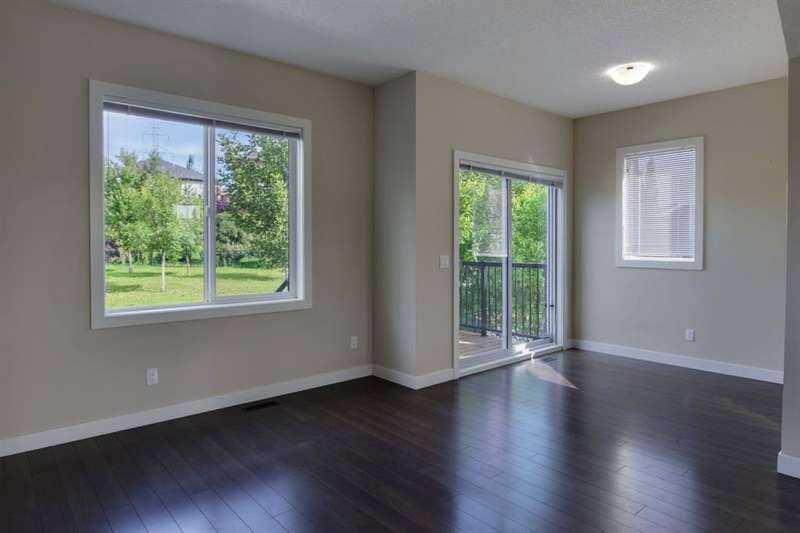 Welcome to Chestermere Station. This beautifully manicured complex will dazzle your senses as you enter the grounds. The irresistible front curb appeal of this former SHOW HOME will lure you to the front door. Attached on only one side, with NO NEIGHBORS behind, this END UNIT offers substantial NATURAL LIGHT and PRIVACY. A spacious foyer will lead you to your front attached garage which is fully insulated & drywalled. A storage closet, utility room & a large undeveloped area with roughed in plumbing & a window complete this space. A perfect area to develop into an additional bedroom & bath, media room or gym. You will be greeted on the main floor with soaring 9 ft knockdown ceilings & a flood of natural light. This OPEN CONCEPT floor plan with huge rear windows boasts a captivating view of the impressive green belt behind the unit. The centralized kitchen offers a contemporary aesthetic with light natural toned cabinets, minimalistic hardware & glistening granite countertops. An abundance of cupboard & drawer space including a separate pantry. And, a massive kitchen island with breakfast bar is sure the be the social hub of the home. The bright spacious dining room will usher you to the warm comfort of your front balcony. Enjoy the stunning views of the green space through what feels like a wall of windows at the rear of the home. Savor the views from the large living room & office areas. As you make your way through the sliding glass patio doors you will be welcomed by a sizeable rear deck & beautifully landscaped & fenced back yard. Do you want to kick around the soccer ball with the kids or take FIDO for a walk? Simply slip out through the rear gate & take advantage of the GREEN SPACE & PATH WAY system behind you. On the upper level of the home you will be please to discover a stackable washer & dryer. A BRIGHT comfortable sized master bedroom overlooking the GREEN SPACE with a 4 piece ensuite, extended counter top, & a generous sized walk in closet. The second bedroom offers a little show home flare with sophisticated patterned wall paper. A third bedroom & 4 piece main bath complete your tour of this stunning property. Modest condo fees & Pet Friendly with board approval. This well maintained 3 bedroom townhome is ideal for those with an active lifestyle. It is conveniently located across the street from shopping & amenities. It's a 5 minute walk to John Peake Memorial Park & CHESTERMERE LAKE. Under 5 minutes to take FIDO for a walk to Steve King Memorial Dog park or a 10 minute walk to the Chestermere Off Leash Area. PRAIRIE WATERS ELEMENTARY & ST GABRIEL THE ARCHANGEL SCHOOL are a modest 10 minute walk from Chestermere Station! Enjoy the extensive pathways & parks throughout the community & saver the rest of the summer days at Chestermere Lake. A short drive to East Hills Shopping & Entertainment. Quick access to 17 Ave or Highway 1. An exceptional location for those working downtown with an approximate 15 minute commute to Rundle Train Station.