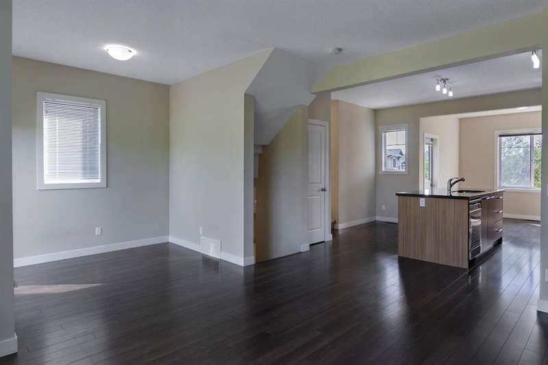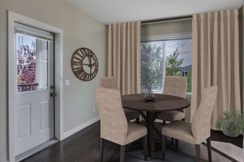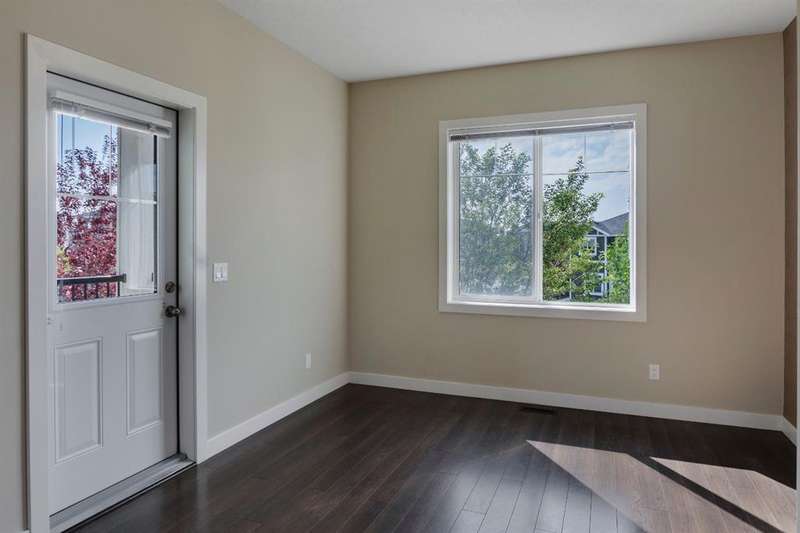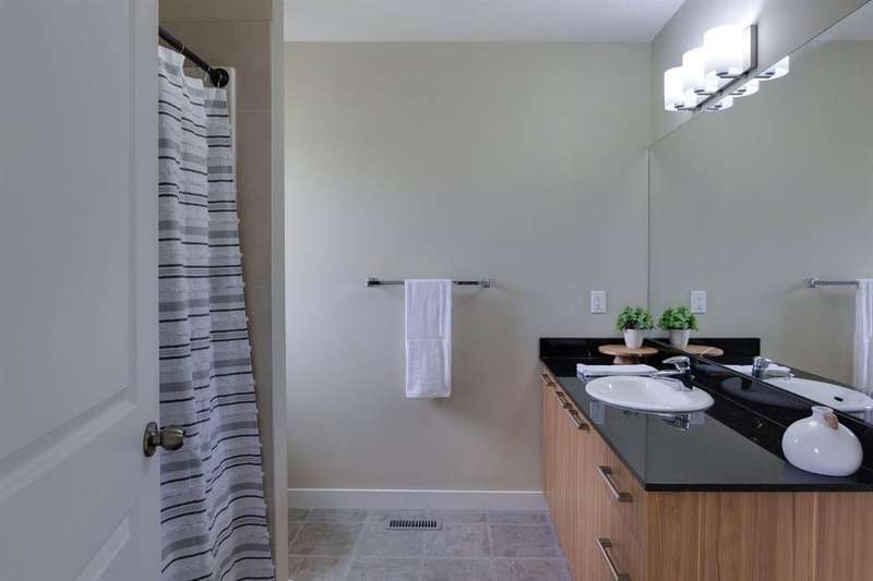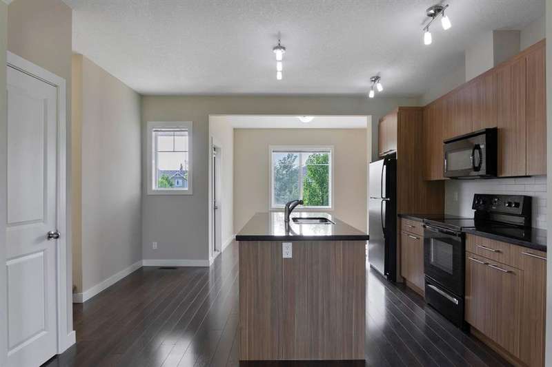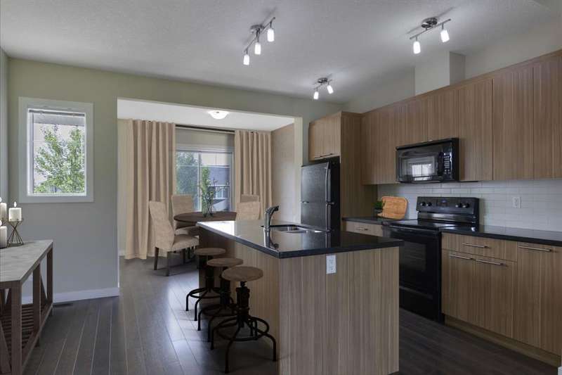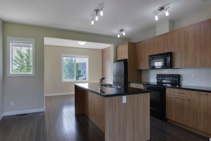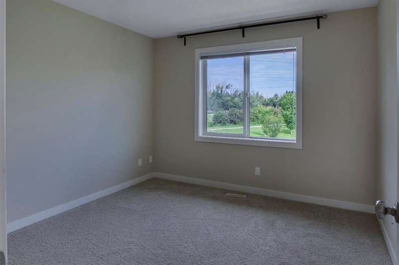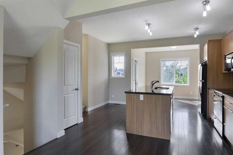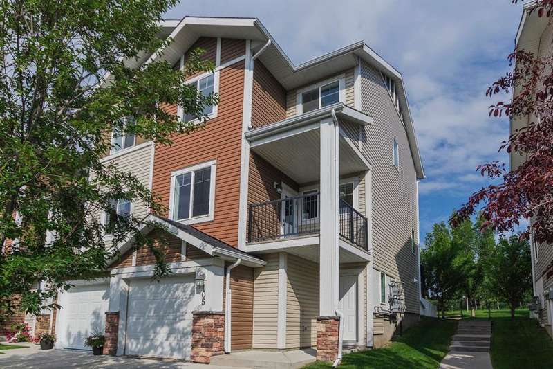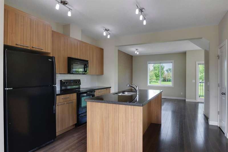 Welcome to Chestermere Station. This beautifully manicured complex will dazzle your senses as you enter the grounds. The irresistible front curb appeal of this former SHOW HOME will lure you to the front door. Attached on only one side, with NO NEIGHBORS behind, this END UNIT offers substantial NATURAL LIGHT and PRIVACY. A spacious foyer will lead you to your front attached garage which is fully insulated & drywalled. A storage closet, utility room & a large undeveloped area with roughed in plumbing & a window complete this space. A perfect area to develop into an additional bedroom & bath, media room or gym. You will be greeted on the main floor with soaring 9 ft knockdown ceilings & a flood of natural light. This OPEN CONCEPT floor plan with huge rear windows boasts a captivating view of the impressive green belt behind the unit. The centralized kitchen offers a contemporary aesthetic with light natural toned cabinets, minimalistic hardware & glistening granite countertops. An abundance of cupboard & drawer space including a separate pantry. And, a massive kitchen island with breakfast bar is sure the be the social hub of the home. The bright spacious dining room will usher you to the warm comfort of your front balcony. Enjoy the stunning views of the green space through what feels like a wall of windows at the rear of the home. Savor the views from the large living room & office areas. As you make your way through the sliding glass patio doors you will be welcomed by a sizeable rear deck & beautifully landscaped & fenced back yard. Do you want to kick around the soccer ball with the kids or take FIDO for a walk? Simply slip out through the rear gate & take advantage of the GREEN SPACE & PATH WAY system behind you. On the upper level of the home you will be please to discover a stackable washer & dryer. A BRIGHT comfortable sized master bedroom overlooking the GREEN SPACE with a 4 piece ensuite, extended counter top, & a generous sized walk in closet. The second bedroom offers a little show home flare with sophisticated patterned wall paper. A third bedroom & 4 piece main bath complete your tour of this stunning property. Modest condo fees & Pet Friendly with board approval. This well maintained 3 bedroom townhome is ideal for those with an active lifestyle. It is conveniently located across the street from shopping & amenities. It's a 5 minute walk to John Peake Memorial Park & CHESTERMERE LAKE. Under 5 minutes to take FIDO for a walk to Steve King Memorial Dog park or a 10 minute walk to the Chestermere Off Leash Area. PRAIRIE WATERS ELEMENTARY & ST GABRIEL THE ARCHANGEL SCHOOL are a modest 10 minute walk from Chestermere Station! Enjoy the extensive pathways & parks throughout the community & saver the rest of the summer days at Chestermere Lake. A short drive to East Hills Shopping & Entertainment. Quick access to 17 Ave or Highway 1. An exceptional location for those working downtown with an approximate 15 minute commute to Rundle Train Station.