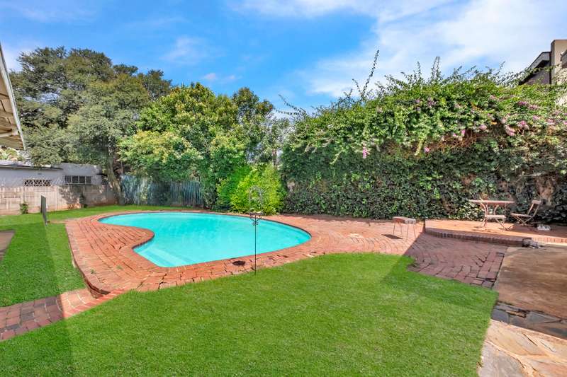 Entrance, Open plan lounge, diningroom, kitchen with Italian gas stove, (cylinder gas), server to dining area. Separate laundry. Guest toilet. Storeroom and pantry. Interleading room, an ideal workspace/computer area or study area. Principal bedroom with ensuite bathroom. 3 additional bedrooms. Bathroom with separate toilet. Spacious manicured garden, swimming pool. Lock up garage, domestic quarters with bathroom & covered carport. Alarm, armed response. Booms in place to be installed for extra privacy and security. Within walking distance to Johannesburg main madrasa, Greenside Mosque and Emmarentia Botanical gardens. In close proximity and within feeder zone for private and public schools in Johannesburg, University of JHB and Wits, Milpark hospital and other healthcare facilities. Extra features - Solar power geyser