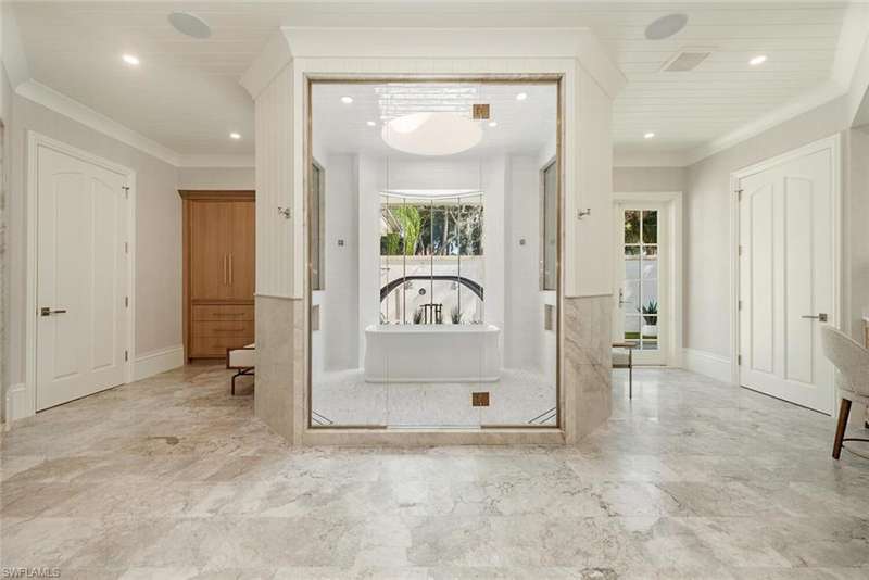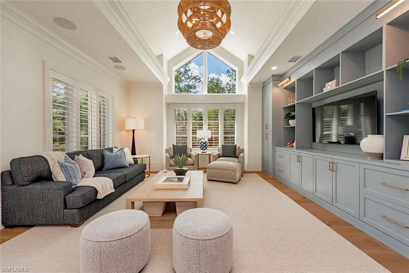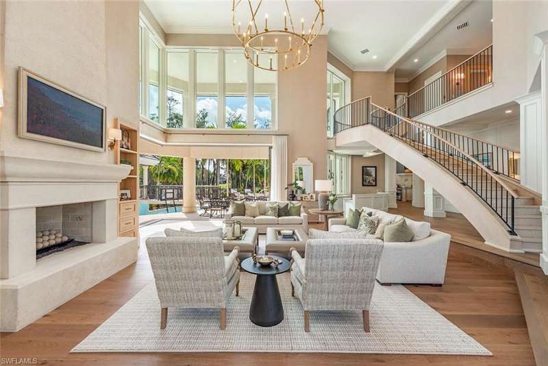 Magnificent completely renovated estate home in Quail West offering the ultimate in privacy and luxury living including immediate golf access with a transferrable golf membership included. Situated on a rare double lot that spans 2.2 acres, this residence offers golf course views and an incredible volume of living space with 11,160 SF including 6 bedrooms, 7.5 baths, office, study, exercise room, media room, bonus living room and 5 garage spaces plus a golf cart garage. Upon entering the home, the main living room is sure to impress with soaring 24 ceilings, a curved stone staircase, a gas fireplace and zero-corner sliders that lead to the extraordinary outdoor area. Enjoy Naples glorious weather with 1,062 SF of covered outdoor living, a full bar with folding windows, a resort style pool with a waterslide, large spa and a gazebo centerpiece with an outdoor kitchen. Completely remastered in 2024, this home showcases the finest in custom craftsmanship and the latest technology, includ