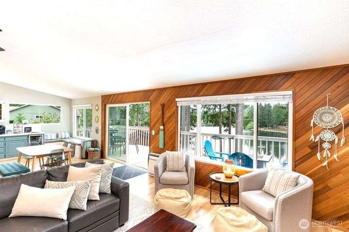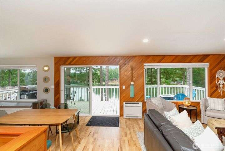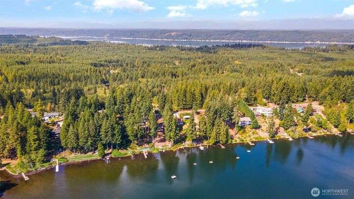Lake Life is calling! 100k remodeled Quintessential Lakehouse w/cozy, inviting vibes: Cedar T&G, quartz & subway, big window walls, seamless connection to nature, resident eagles. Expansive VIEWS, 75’ quality lakefront, pebble beach, boathouse, 2 docks! Tranquil 73-ac, electric-motor Lk has year-round trout fishing. Mins to Alderbrook & local seafood legends (Hama Hama, DeNotta, Tom Farmer, Union City Mkt, Hook & Fork). FIBER internet, A/C, new windows, paint, paver steps to beach. Ranks in TOP 10% of Mason Cty Vacation Rentals, Guest Fav, 100 (5-star) reviews! GROSSING $133,000 in 2 yrs (50% yr booked). 10 min to town, parks & golf, hiking, recreation. FURNISHED for turn-key getaway or investment. Hood Canal Adventure Awaits, Kayaks Ready!