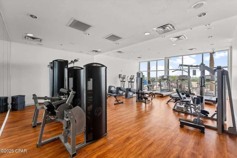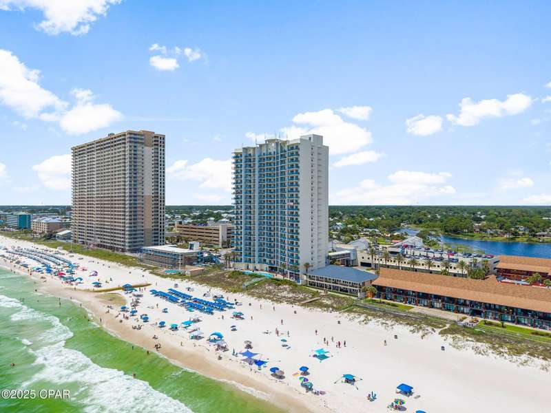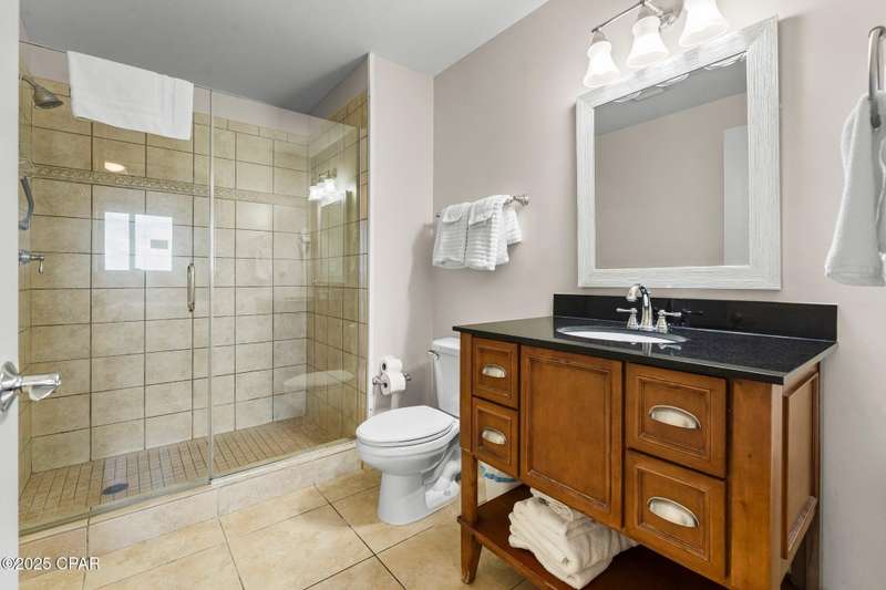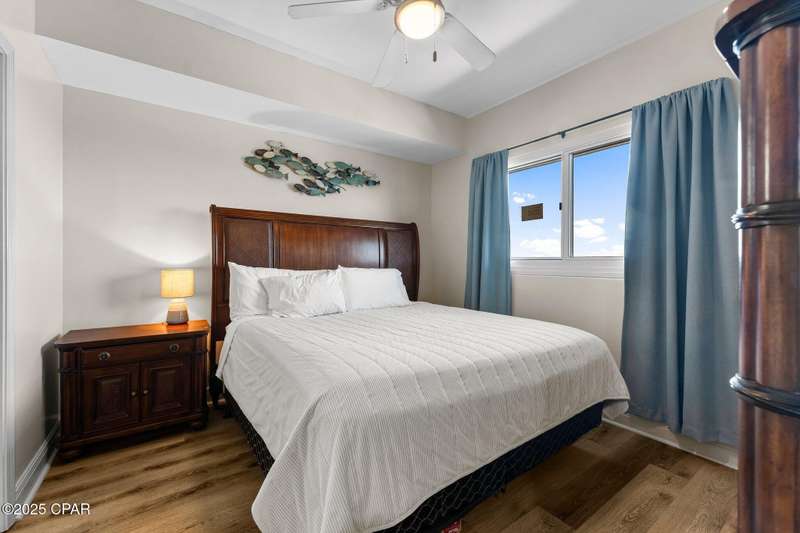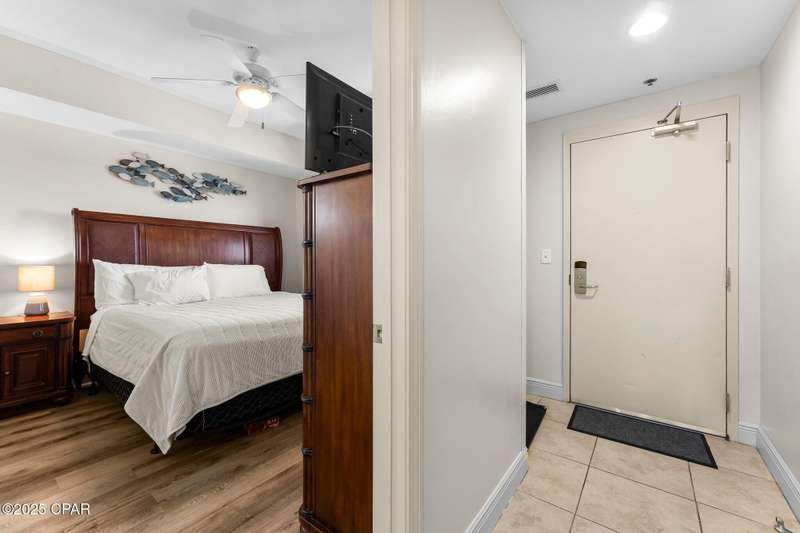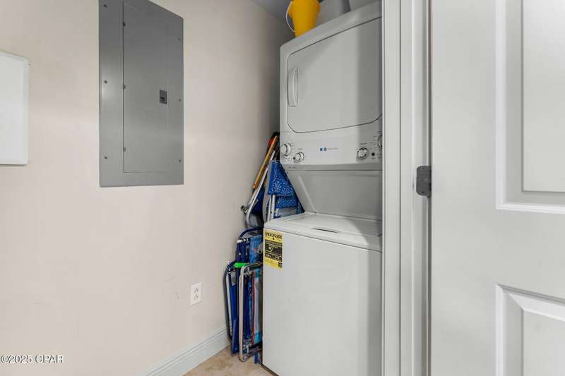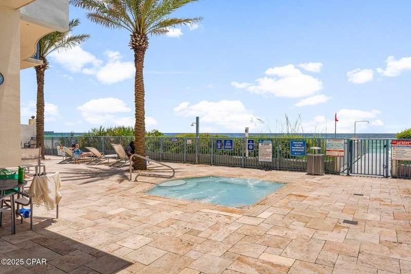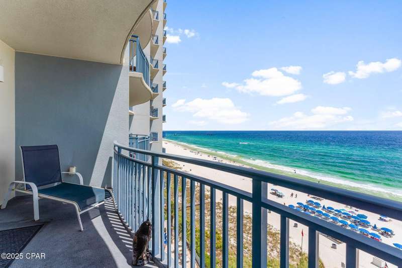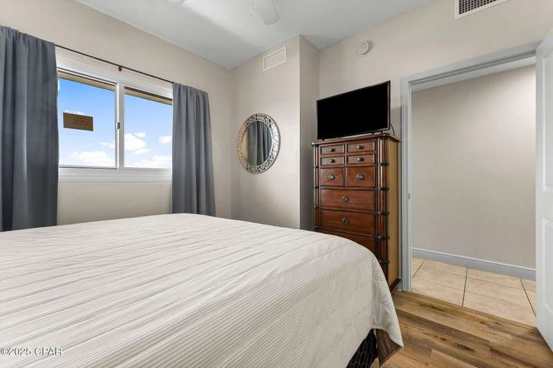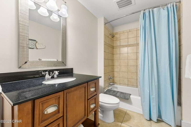 Step inside to a bright, welcoming tiled entryway where coastal charm meets comfort. Just off the entrance, you'll find the first bedroom with soft hues and thoughtful touches, setting the tone for your beachside escape. Tucked neatly into the hallway, the built-in bunk alcove offers a fun and functional space for little ones or extra guests. With cozy bedding and clever design, it's the perfect blend of charm and convenience--making the most of every square foot. The open-concept kitchen flows seamlessly into the living area, creating a light and airy space that's perfect for entertaining or relaxing with family. While prepping meals or mixing drinks, you'll still be part of the conversation--enjoying views of the Gulf and the natural sunlight that fills the room. The stylish and functional kitchen features rich wood cabinetry, sleek black appliances with an electric stove, and durable granite countertops--offering both beauty and practicality. The living room exudes relaxed coastal charm with soft, Gulf-inspired hues, light tones, and breezy textures. Nautical accents, cozy furnishings, and coastal decor create a welcoming space that captures the easy life of beachfront living. You'll love that the entire condo is tiled and there's no carpet to maintain! In the living room it has comfortable, beach-friendly furniture that invites you to relax and unwind while the open layout makes it easy to gather with family or entertain friends. New HVAC December 2022, New Washer and Dryer, New flooring in the Primary Bedroom in 2023, and New paint and decor in 2022. Sterling Breeze offers a variety of amenities onsite including a Gift Shop, Gym with the workout views of the Gulf, Outdoor showers to washing off the sand, Beachside pool (heated in the winter), and Hot Tub! Located near Pier Park Shopping, Frank Brown Park, Local Dining, and the new Pirates Voyage Dinner Show and Top Golf.