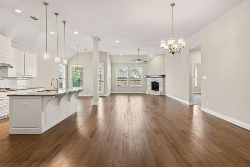 2 HUGE Walk in Closets in the Primary Room! Welcome to this Highland Home designed 4-bedroom with option of the 5th bedroom or Den, 3-bathroom located in the highly popular Devonshire subdivision! This single-story gem offers a perfect blend of sophistication and functionality, with an open-concept layout that includes a media room or game room, ideal for both relaxation and entertainment. Owner suite having 2 full sized walk in closets. As you step inside, you're greeted by a grand, inviting foyer adorned with luxurious finishes, setting the tone for the elegance found throughout the home. The heart of the home is the chef-inspired kitchen wit a pot filler, featuring a massive island, perfect for casual dining or entertaining guests. Luxury vinyl flooring flows throughout the main areas, combining style and durability, with cozy carpet in the bedrooms for added comfort. Enjoy the convenience of a 3-car tandem garage, a large backyard, and a covered patiowith the option to add a dog run, making it a great fit for pet lovers! Living in Devonshire means enjoying a vibrant community with resort-style amenities, including a basketball court, ponds, sand volleyball, a swimming pool, and more! Don't miss your chance to call this stunning property homeschedule your showing today!