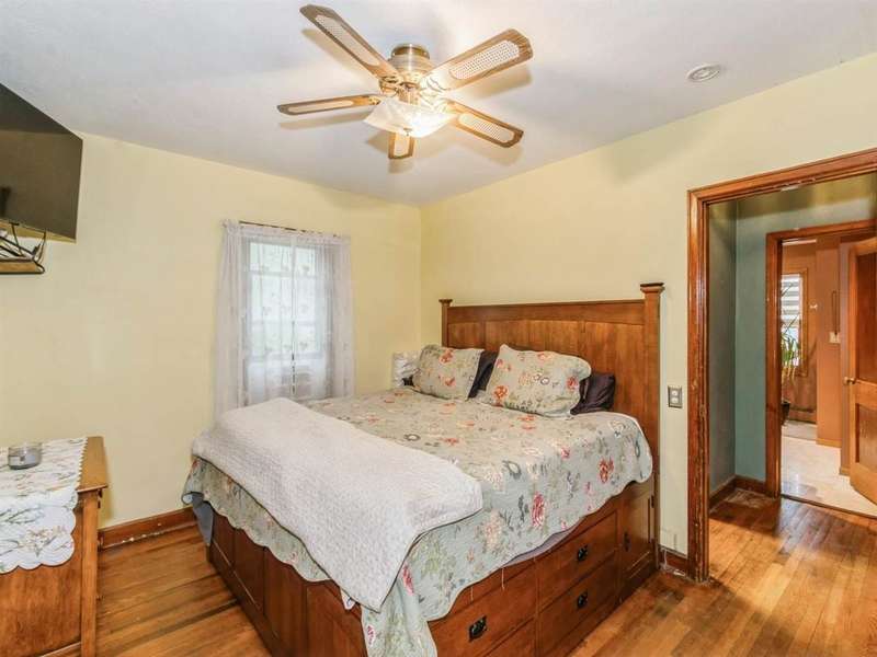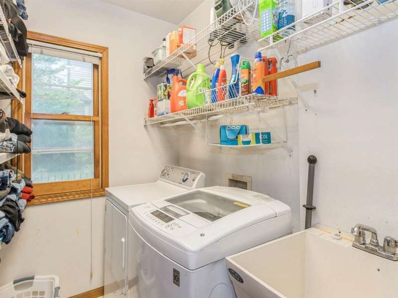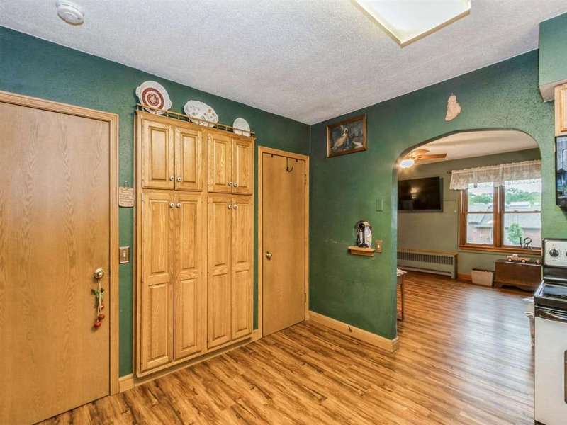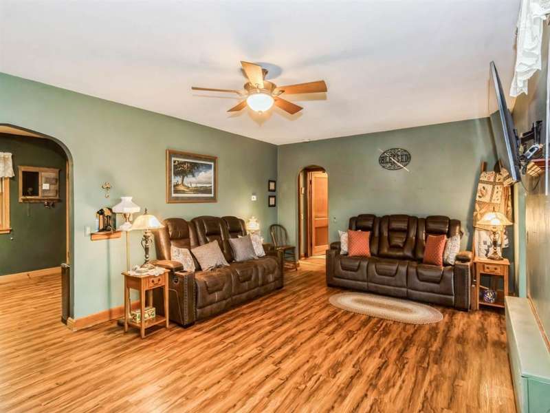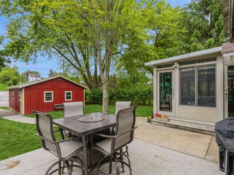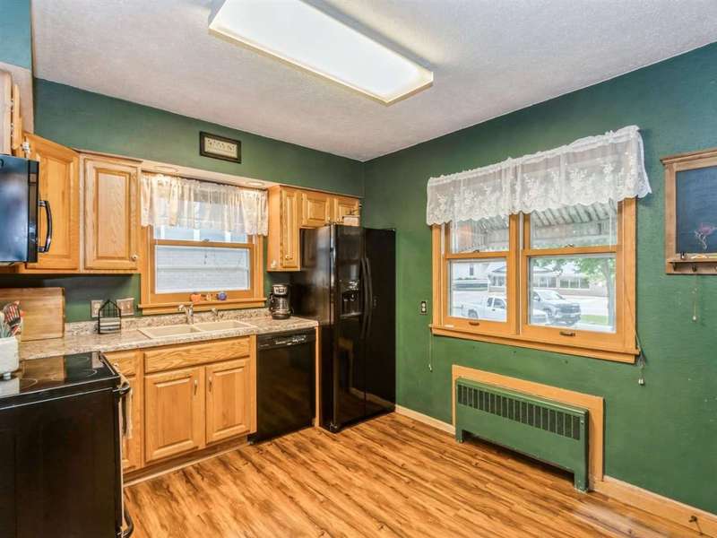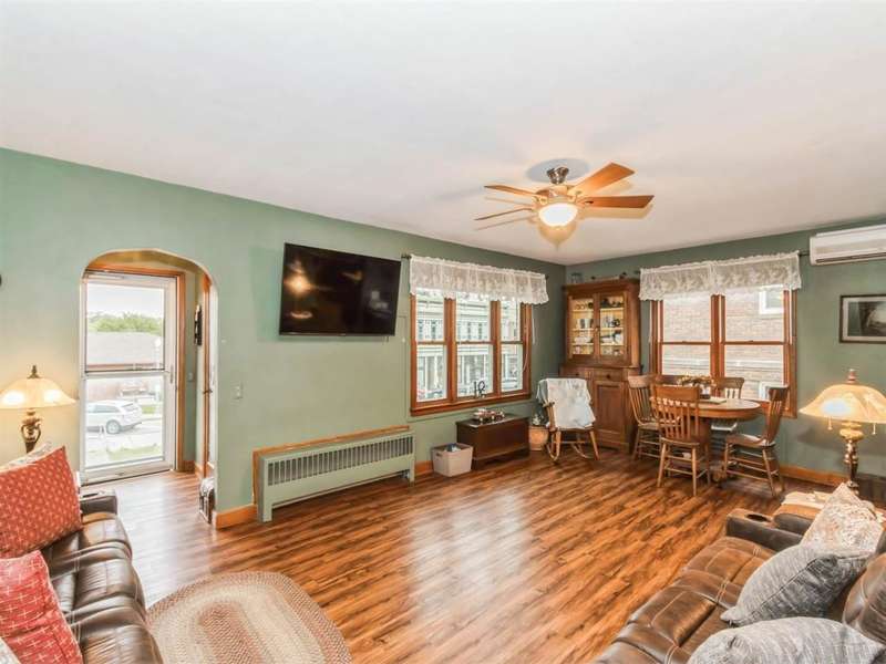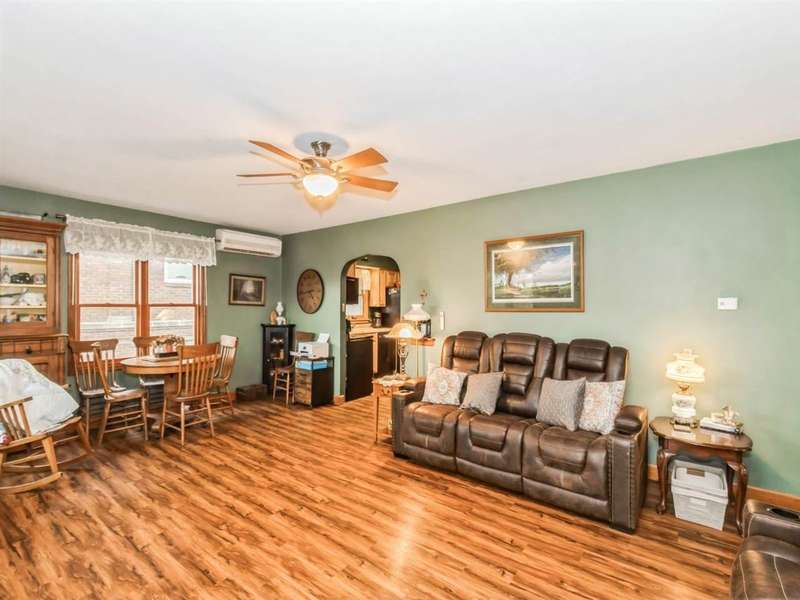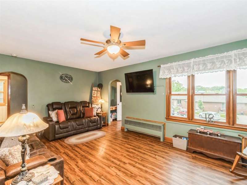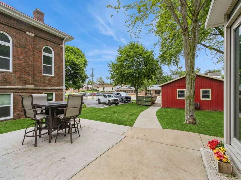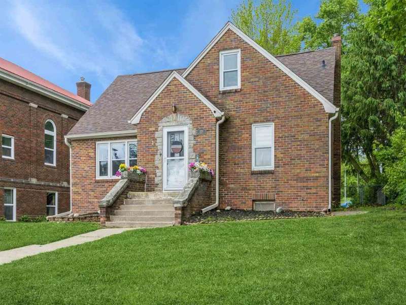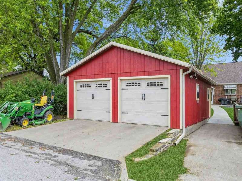 Charming brick 2 story near downtown and schools! Open dining/living room with LVP floors and arched doorways! Large main floor bathroom with soak tub and main floor laundry room with abundant storage. All appliances stay including washer and dryer. Full basement. Enclosed porch and rear concrete patio. Oversized detached 2 car garage plus additional parking pad. New roof, facia & gutters 2024. Water heater 2021. Electric heat units in 2nd floor 2024. Boiler heat 2019.