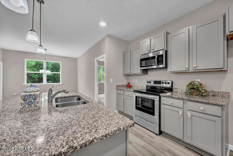 One level living in this newly painted 3 BR, 2 bath home with all laminate flooring; Kitchen island. Close to Oak Island beaches and charming Southport! Community pool, pool house, picnic area, playground, 15-acre fishing lake with dock and kayak launch; street lights. Municipal water and sewer. Large master, walk-in closet and bath. Screened porch. Handicap accessible. Near Dosher Memorial Hospital. Ask about low interest loan which could possibly be assumed by a qualified Buyer!