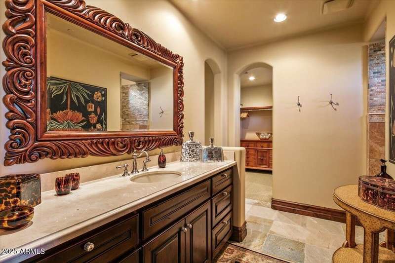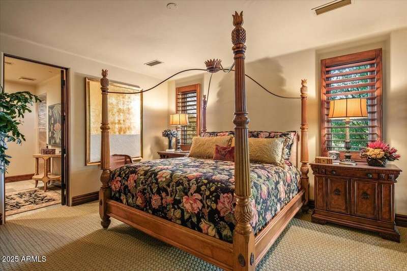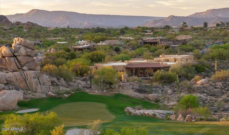 Timeless elegance with breathtaking views await in the prestigious, guard-gated Boulders community of North Scottsdale. Nestled on a meticulously private 1.2-acre lot, this exceptional estate offers panoramic views of the Signature #1 Fairway of the Boulders Golf Club and majestic Sonoran mountain ranges .With its seamless blend of timeless architecture and refined interior elegance,this home is a rare offering that delivers both beauty and functionality in one of Arizona's most coveted desert enclaves. The moment you step inside, you're welcomed by warm, organic textures and thoughtfully curated finishes. Reclaimed wood and limestone flooring flow throughout the home, complemented by cobbled ceiling beams and expansive windows that flood the interior with natural light