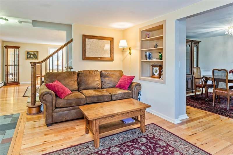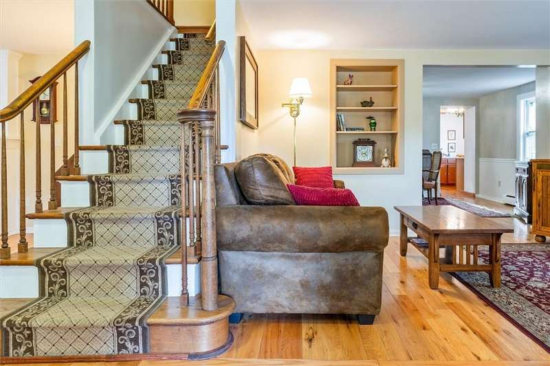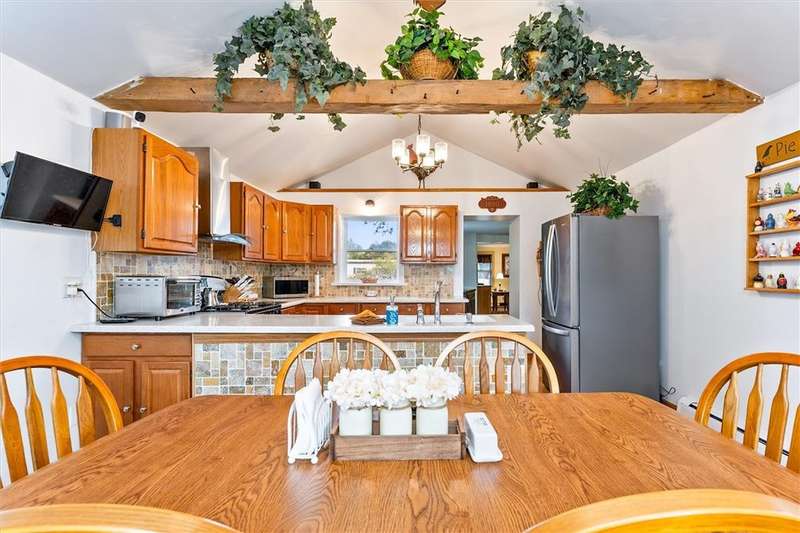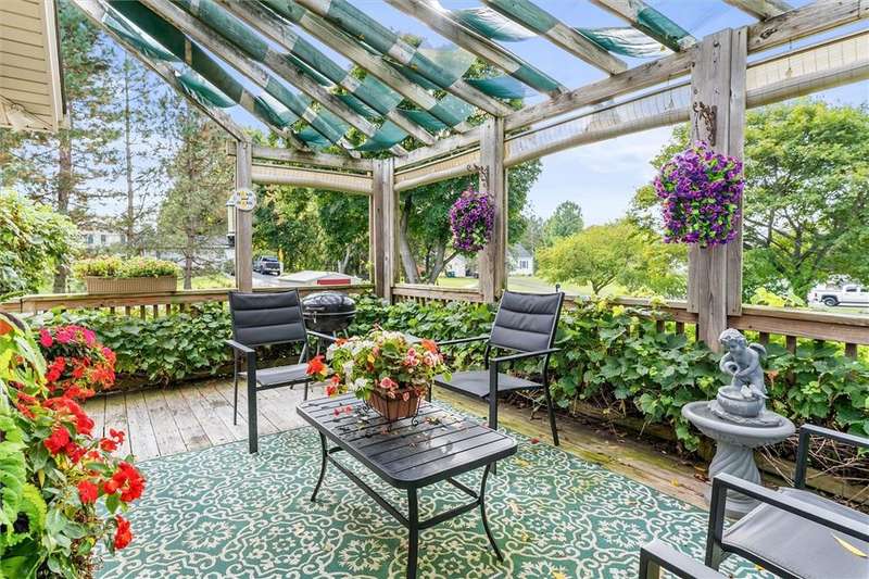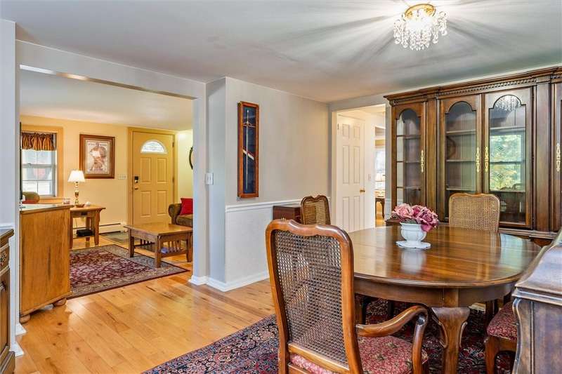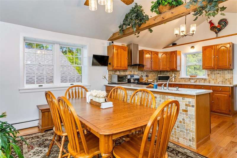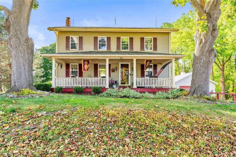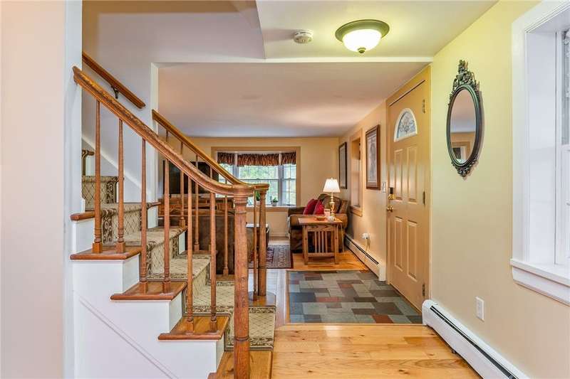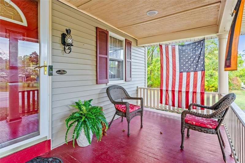 Step into history with this remarkable nearly 2,500 sq. ft. home, built in 1800 and proudly owned by only four families in its lifetime. Brimming with character yet updated for today's lifestyle, this solid residence offers timeless charm paired with thoughtful modern upgrades. Enter from the full front porch into a slate-tiled entry, where a split parlor awaits?one side ideal as a cozy family room and the other as a formal living room featuring a new ventless gas fireplace (2022). A formal dining room sets the stage for memorable gatherings, while a beautifully updated full bath with shower and generous closet space adds everyday convenience. A first-floor office/den also provides the option of a fifth bedroom, giving flexibility to suit your needs. The large eat-in kitchen has been recently updated with Corian countertops, oak cabinetry, a stone tile backsplash, and appliances all within the last 5 years. Just off the kitchen, you'll find a spacious walk-in laundry room/pantry. From the adjoining dining area, step outside to an enormous deck with a custom pergola, perfect for relaxing or entertaining while overlooking the backyard. Upstairs, four bedrooms offer large closets, including a primary bedroom that connects to an additional room?perfect as a nursery, office, or workout space. A second full bath features a tub, granite countertop, and linen closet. A full attic provides even more storage. The home's lower level includes a full walk-up basement with glass block windows, the original bee hive oven, and an additional back basement under the kitchen. Added conveniences include central vac, vinyl siding, Anderson windows, and other numerous updates: hot water heater (2018), boiler (approx. 8 years), updated wiring and plumbing. In 2022, both a brand-new driveway and oversized 2-car garage with its own breaker box were added. The property also includes an invisible fence for your furry friends. A rare opportunity to own a piece of history that beautifully blends old-world craftsmanship with modern comfort?don't miss this one! Delayed negotiations until Monday, 10/6 at 5pm. Open house Sunday, 10/5 from 11-1pm.