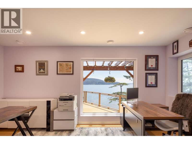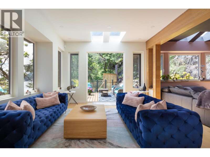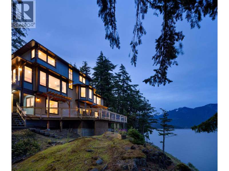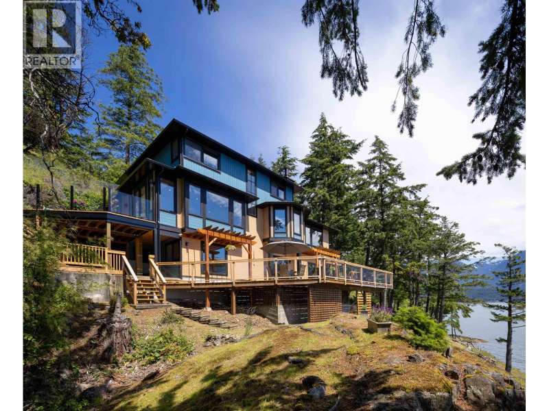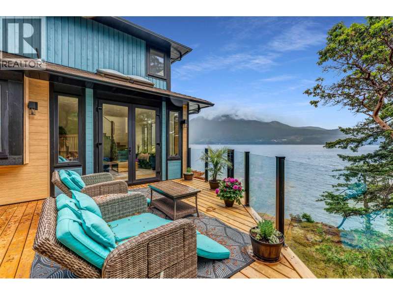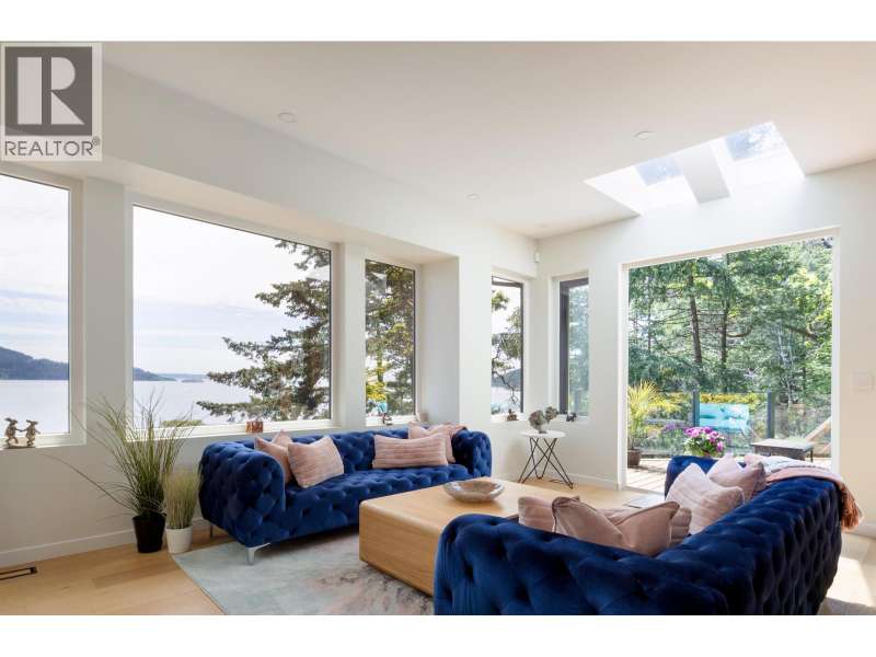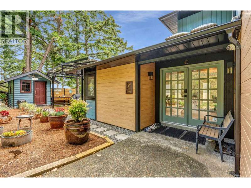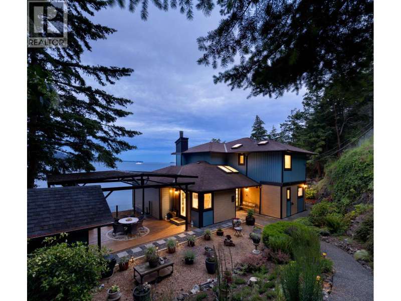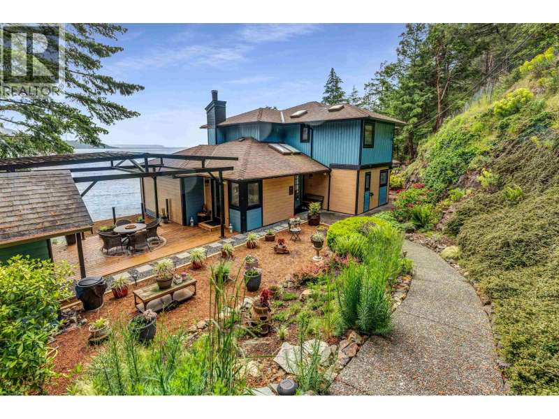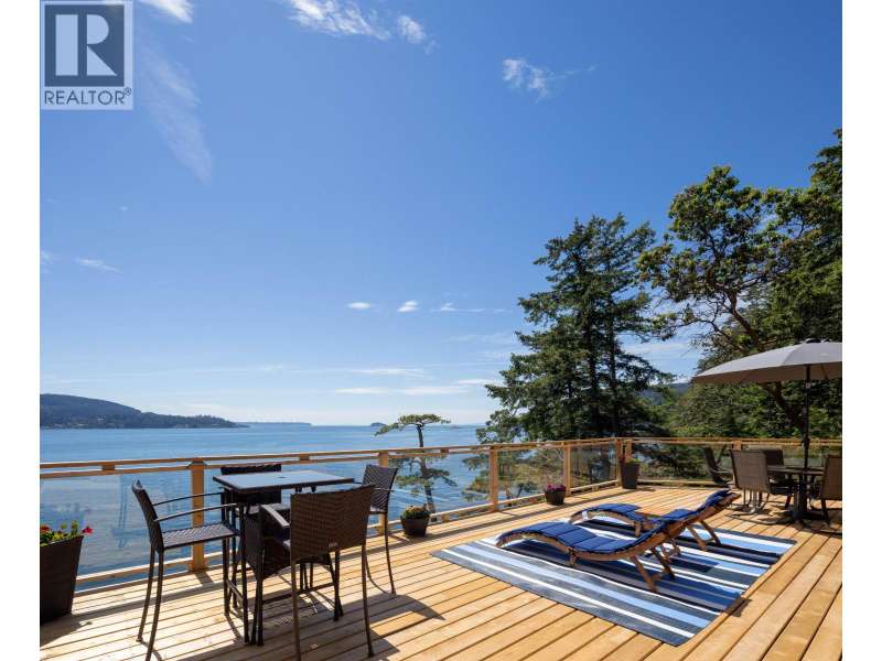 A sun-drenched WATERFRONT retreat, where every day begins with ocean views and ends with island calm. This south-facing estate combines a fully re-engineered modern home with versatile cottage on 1.75 acres. Over $1M in permitted upgrades include underpinned foundation, rainscreened cedar & lifetime-warrantied metal cladding, new retaining walls, 300-amp service, European tilt-turn windows & AC. Open concept interior and 4 large patios overlook 200ft+ of mid/low-bank shoreline alive with orcas and sea lions. The cottage offers guest, rental or artist/office space. A flat switchback adds room for parking, garden or sport court & new 35ft garage pad is garage-ready. Private, peaceful and bathed in sun & only 20 mins by ferry to Vancouver, this is waterfront living with lasting value. (id:58403)
