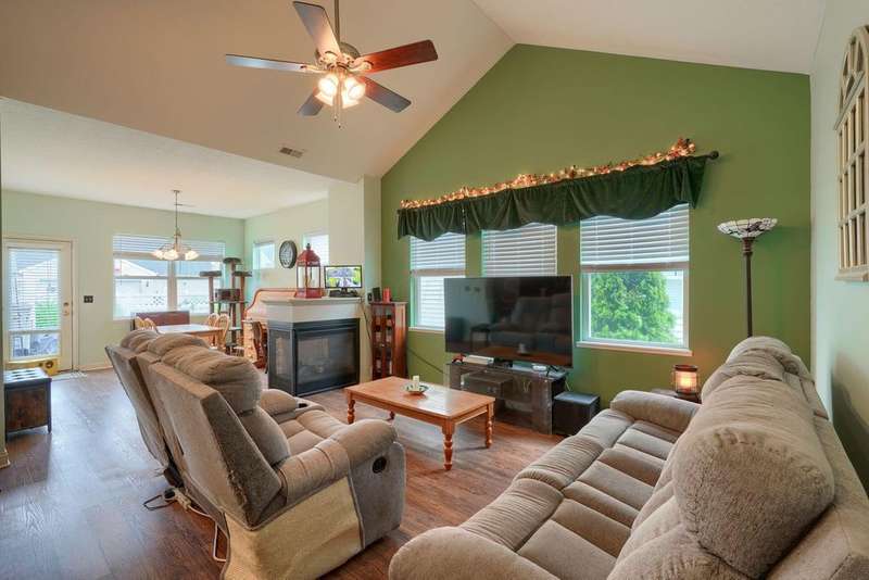 Welcome home to this lovely, ranch style home! This home is so inviting! From the moment you walk in the door, the foyer overlooks the beautiful great room with gas fireplace! The large dining room overlooks the open kitchen and great room! The kitchen boasts lots of cabinetry, countertops, stainless steel appliances and more! Three, nice size bedrooms and two full baths! First floor laundry and two car garage! Private patio area too! This home is super cute! Close to shopping, restaurants, and more! A must see!