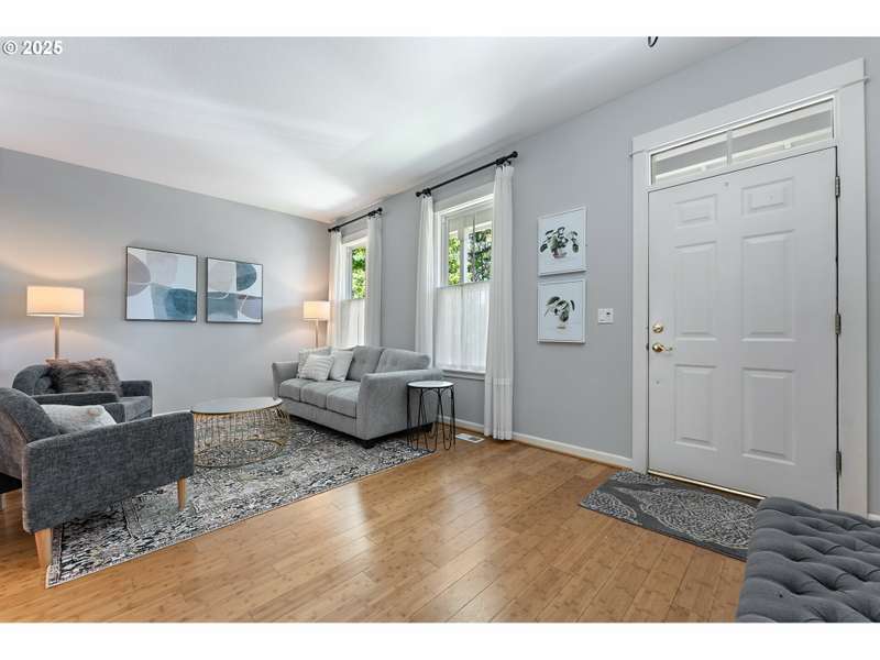 Discover modern elegance in this 1,776 sq ft end-unit traditional townhome, featuring 2 en-suite bedrooms and 2.5 baths. Located in the highly sought-after First Addition neighborhood, just two blocks from downtown LO's vibrant shops and dining.This home boasts design-driven finishes, including quality bamboo floors, high ceilings, large windows, and a skylight, all creating a bright, airy atmosphere. Neutral colors, stylish fixtures, and granite countertops provide a fresh, serene feel. The kitchen features new appliances (June 2022) with a transferable warranty through June 2027. Enjoy a gas fireplace and central air. The open staircase, double master plan, and convenient upstairs laundry offer an ideal layout.Enjoy outdoor spaces including a covered back patio, covered front porch, fully fenced backyard and courtyard for dining under the stars. The detached one-car garage + a additional parking pad is accessed conveniently via a paved alleyway.Large storage above the garage with pull down ladder. Perfect for young professionals, empty-nesters, or those seeking a low-maintenance lifestyle with no HOA fees. Small town urban lifestyle at its finest!
