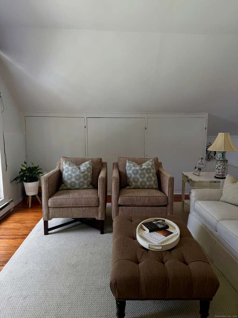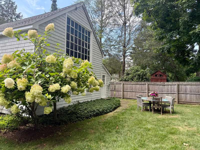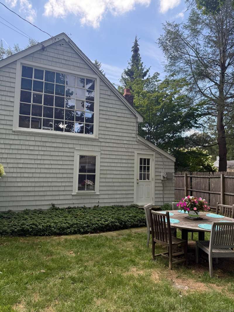 Darling Cottage for Rent in Darien. One bedroom, one bath with large Living/Dining Room upstairs. Rental includes two parking spaces and a darling patio. Walk to Darien Commons, town and train.
