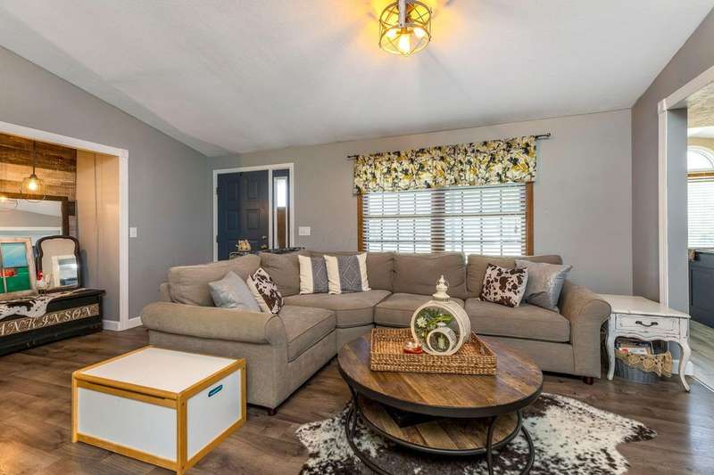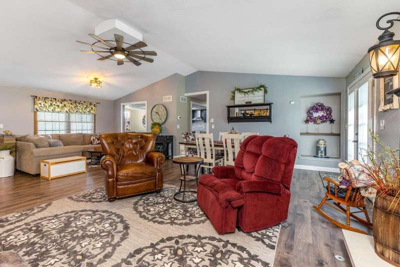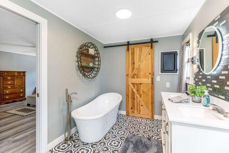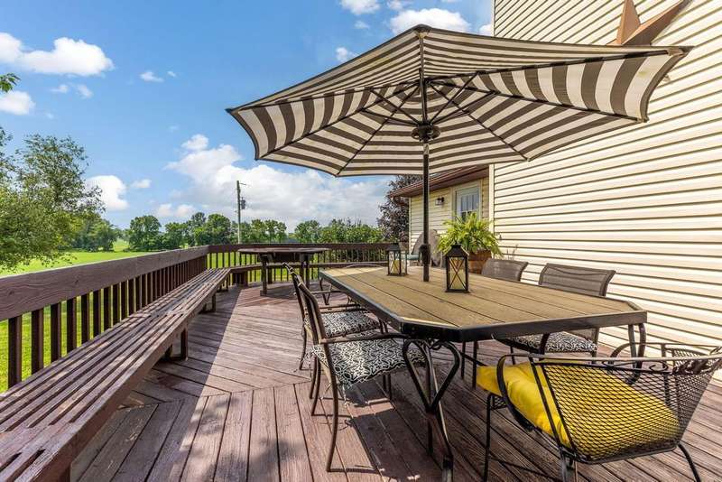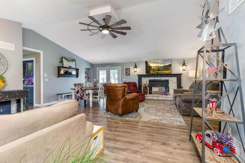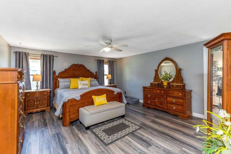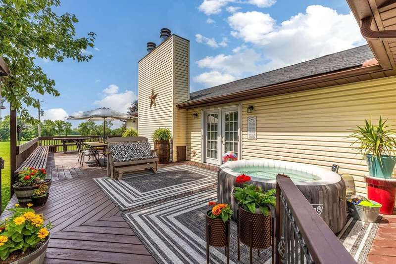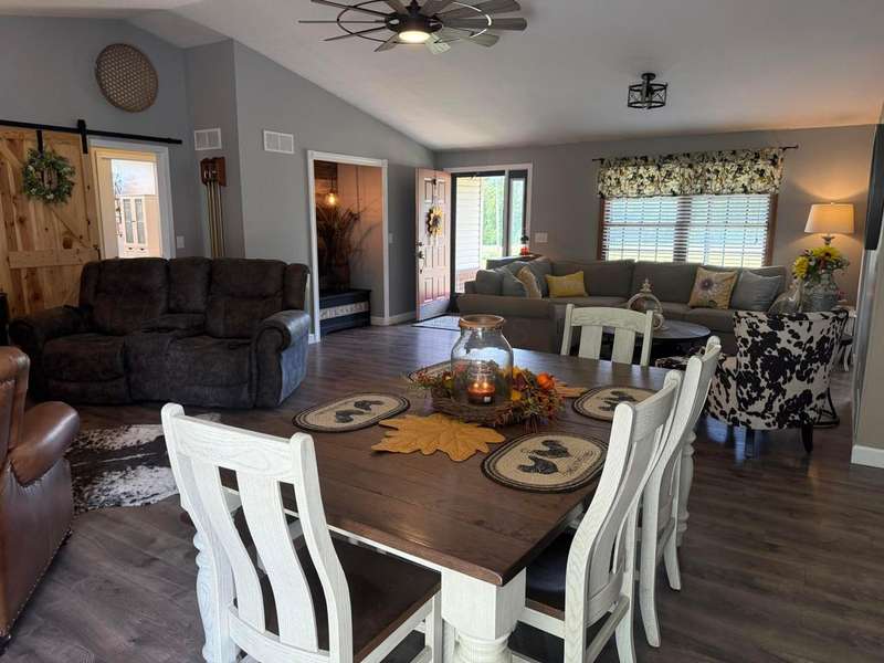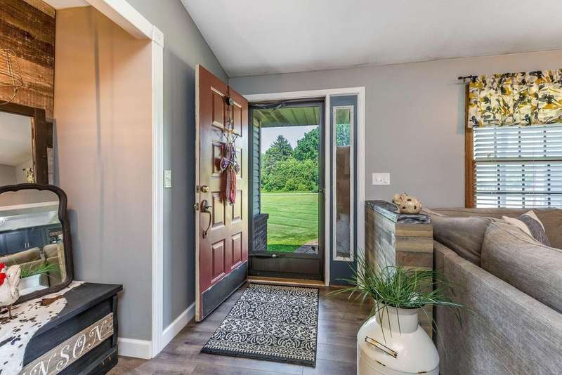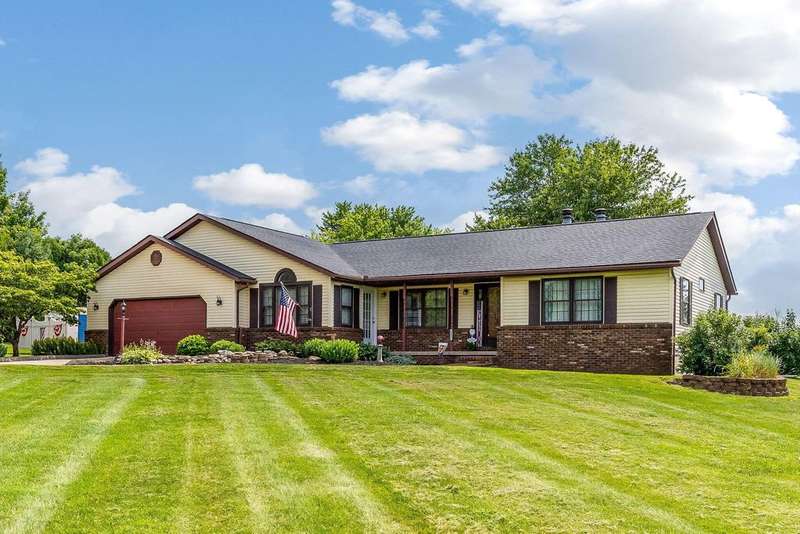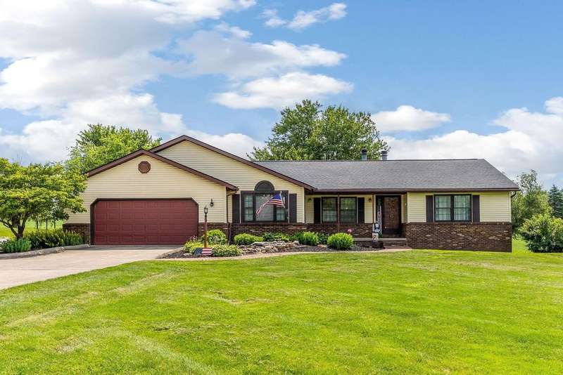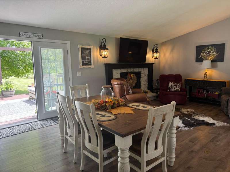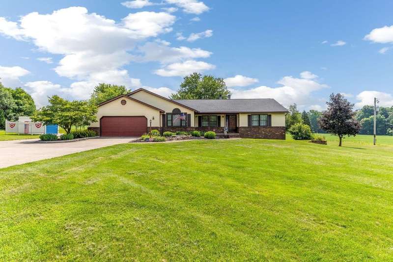 Gorgeous, Completely Remodeled Ranch on Over 2 Park-Like Acres!This stunning 3-bedroom, 2 full bath ranch has been thoughtfully updated from top to bottom and is move-in ready. Nestled on over 2 beautifully landscaped acres, this home offers both modern luxury and peaceful country charm.Inside, you'll find a spacious open floor plan featuring new flooring throughout, a brand new roof, and a new HVAC system. The bright and airy great room includes a cozy fireplace and opens to a massive 16x40 deck ? perfect for entertaining or relaxing.The dream kitchen is a true showstopper, showcasing custom-built Amish cabinets, gleaming quartz countertops, a large island with custom shelving and electric outlets, a dedicated coffee bar with unique lighting, and a pantry with a built-in wet bar.Retreat to the luxurious master suite with a walk-in closet and a spa-like en-suite bath complete with a standing tub, walk-in shower with built-in radio, and all-new fixtures. Both bathrooms have been completely remodeled, and every detail shines ? from the new lighting and ceiling fans to custom handmade barn doors and new interior doors throughout.Enjoy first-floor laundry and the ease of single-level living, with everything designed for comfort and style. Outside, a 24x24 outbuilding adds even more space for hobbies, storage, or outdoor entertaining.This property offers the perfect blend of modern upgrades and serene outdoor living ? truly a rare find!