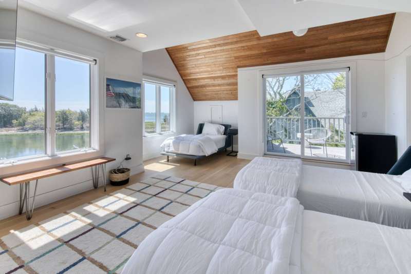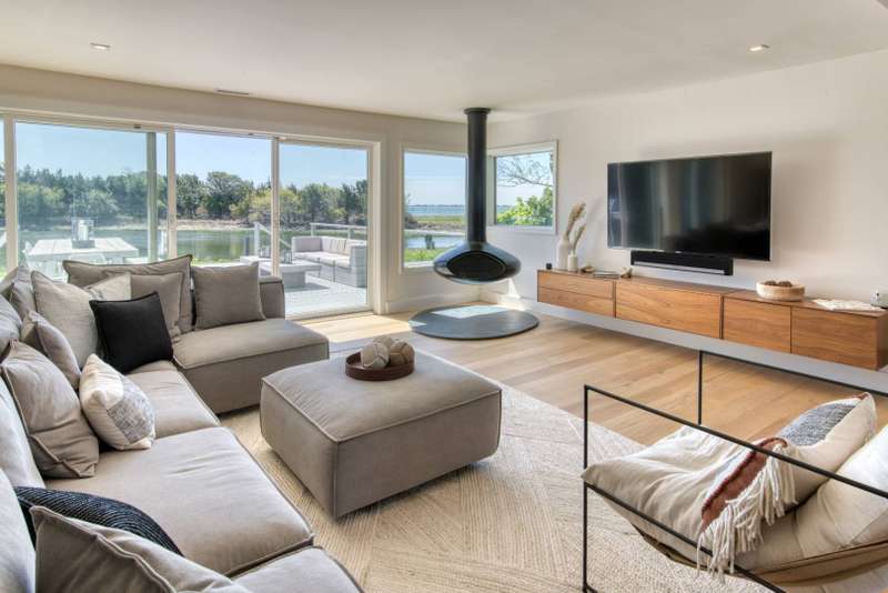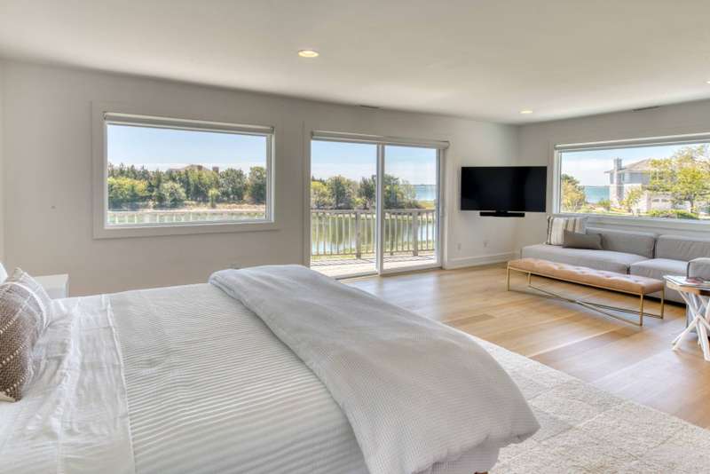 Completely renovated chic modern classic perfect for a Summer getaway. Situated at the end of quiet road with a beach and endless water views, this 4 Bedroom, 4 Bath summer home boasts 2 large master suites each with private decks (perfect for morning coffee) and jaw dropping views of Far Pond and Shinnecock Bay. The open floor plan living areas have wonderful light and include a completely renovated kitchen with Bosch appliances, dining area, breakfast area and living room with fireplace. All have easy access to the wonderful deck which is set up for a zen like calm and incredible waterfront entertaining. Garage that doubles as gym/ping pong room, sauna, and attached shed (ideal for kayaks etc.) for a summer to remember.