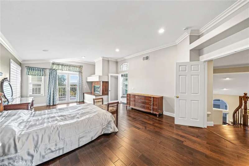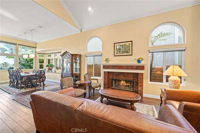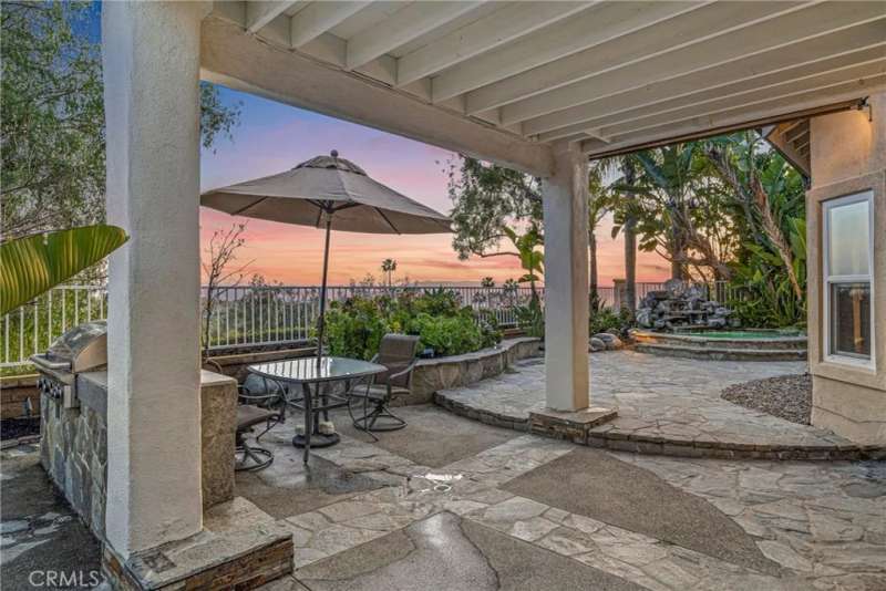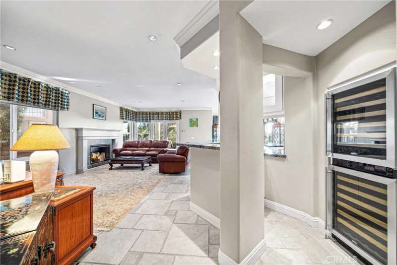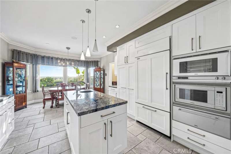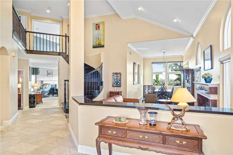 Showcasing unmatched luxury and sweeping bluff top views is this gorgeous residence which is situated at the heart of a quiet neighborhood cul-de-sac in the highly sought after hilltop enclave of Moulton Ranch in Laguna Hills. This is the one! With high-end finishes throughout, a downstairs ensuite bedroom, a custom hardscape view yard with an in-ground spa with waterfall and a truly enviable floor plan dont miss this chance. Starting with great curb appeal, including the custom stonework hardscape, mature planting beds and a grassy lawn enter through stunning custom French doors into a soaring vaulted ceilings foyer and formal living room. With great light from large yard view windows, a focal point fireplace the first of three in the home and ample space to spready out the formal living room is open to the formal dining room with large patio view windows which flood these formal spaces with a wealth of afternoon natural light. Off of the dining room is the chefs kitchen which has upgraded cabinetry, top-tier stainless steel appliances, a central island with possible bar seating and a dedicated task sink and a bar peninsula that extends all the way to an adjoining dry bar with stacked wine refrigerators. The kitchen also features a sizeable casual eat in area and view windows out to the patio. Sharing the great room vibe is an oversized family room which has an abundance of space, the second hearth, and is open to the dry bar making this the perfect place to entertain. With French doors out to the patio deck this space offers true indoor/outdoor living. A downstairs ensu