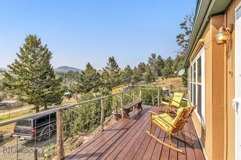 Comfortable 2-bedroom, 2-bath home on 20 acres. Highlights of the home include new vinyl flooring, abundant windows for natural light, an enclosed porch, and a deck with mountain views. A detached 2-car garage offers a 9-foot rear door for drive-through capability and 220-volt electrical service. The property is well-appointed for livestock use, including a 20x15 insulated horse barn with treated wood flooring, corral with lean-to and feed troughs, two automatic livestock waterers, and an 8x10 insulated chicken house with fenced yard and mature shade trees. Additional improvements include a fenced area with pig shelter, large hay shed, fenced garden with raspberry patch, small root cellar, three frost-free hydrants, and a dry cabin offered in as-is condition. The land adjoins a BLM parcel and is conveniently located approximately 30 minutes from both Butte and Whitehall. Listing agent is related to Sellers.